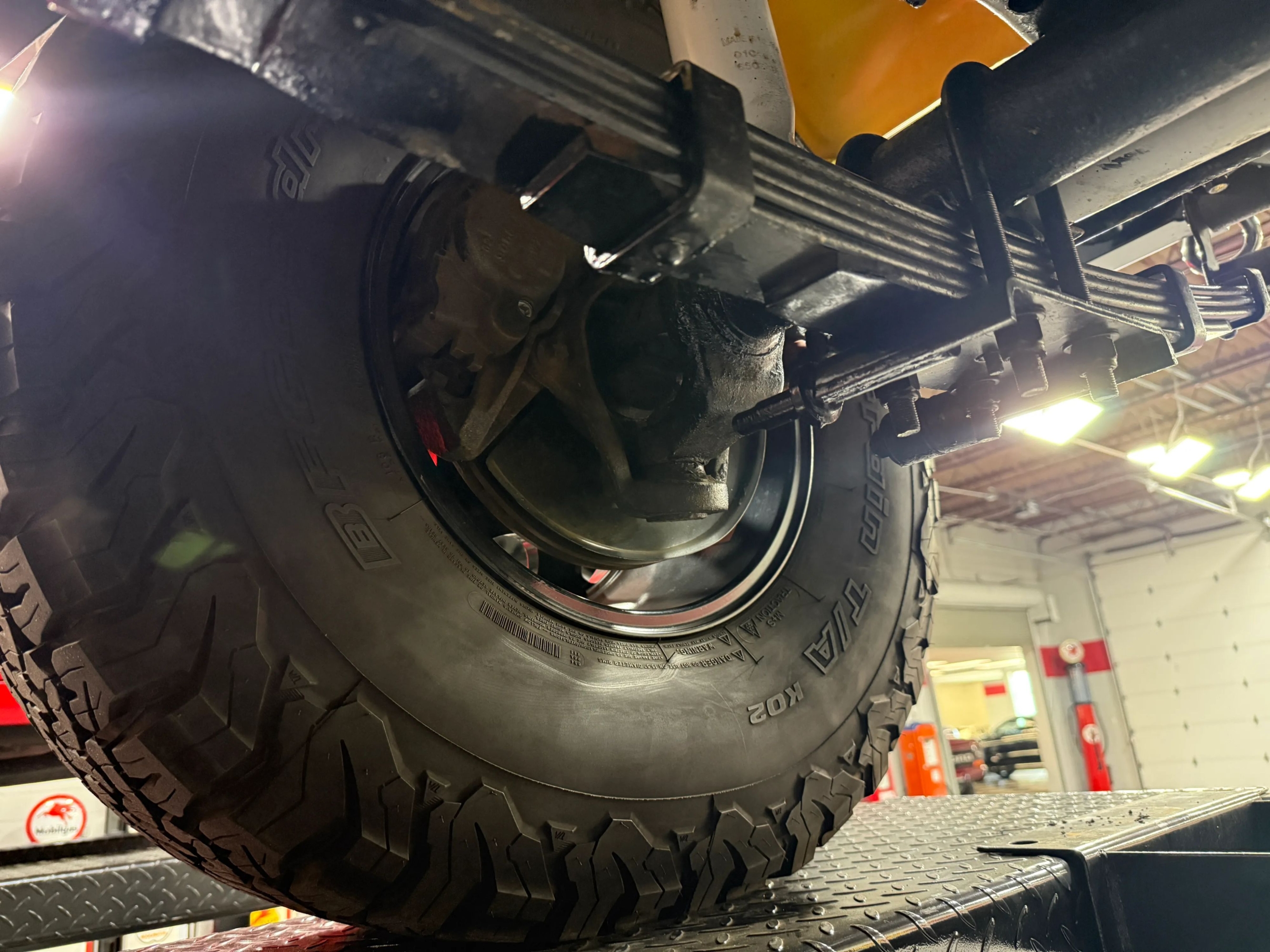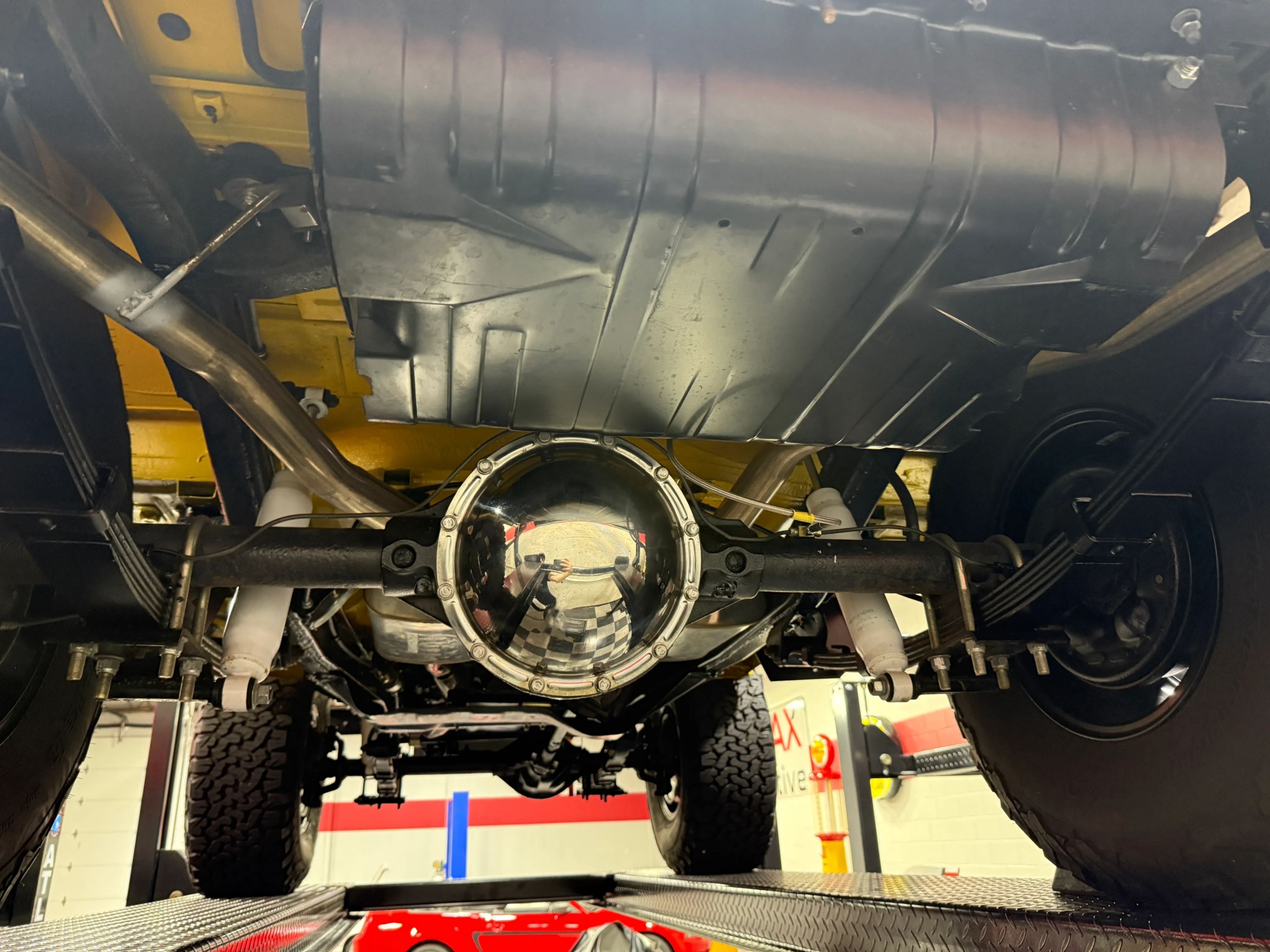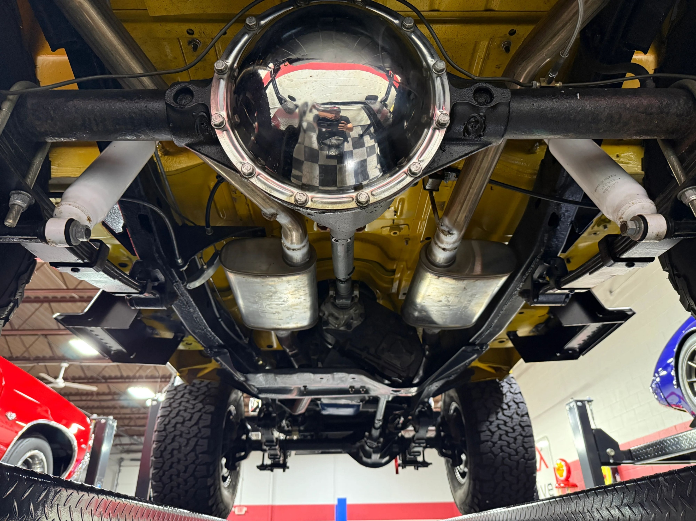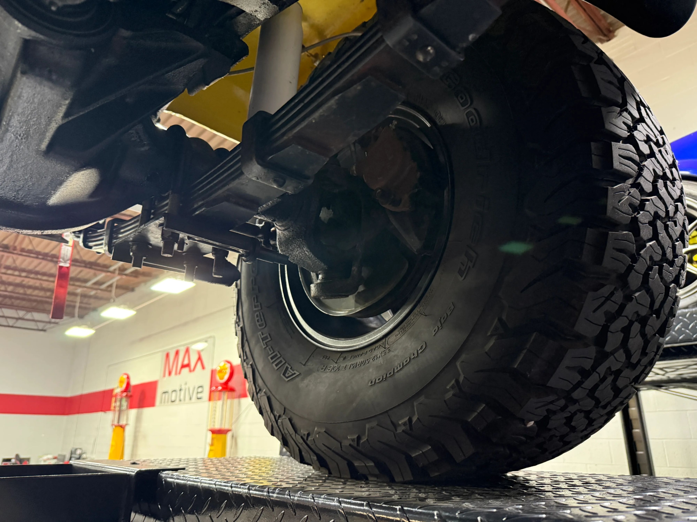 Aftermarket LED front and rear lights will assist, or light up the pavement for you. New carpet has been added to the Jeep, and the like new top has only been down two times since it was installed. It is noted, the Jeep does have a seep from the rear main when parked for a few days. This Jeep was treated to an exterior paint job. The engine bay and underside of the Jeep are a different shade of yellow than the exterior. Fuel gauge on the dash is not calibrated. For more pictures or video, please check our website at www.maxmotive.com