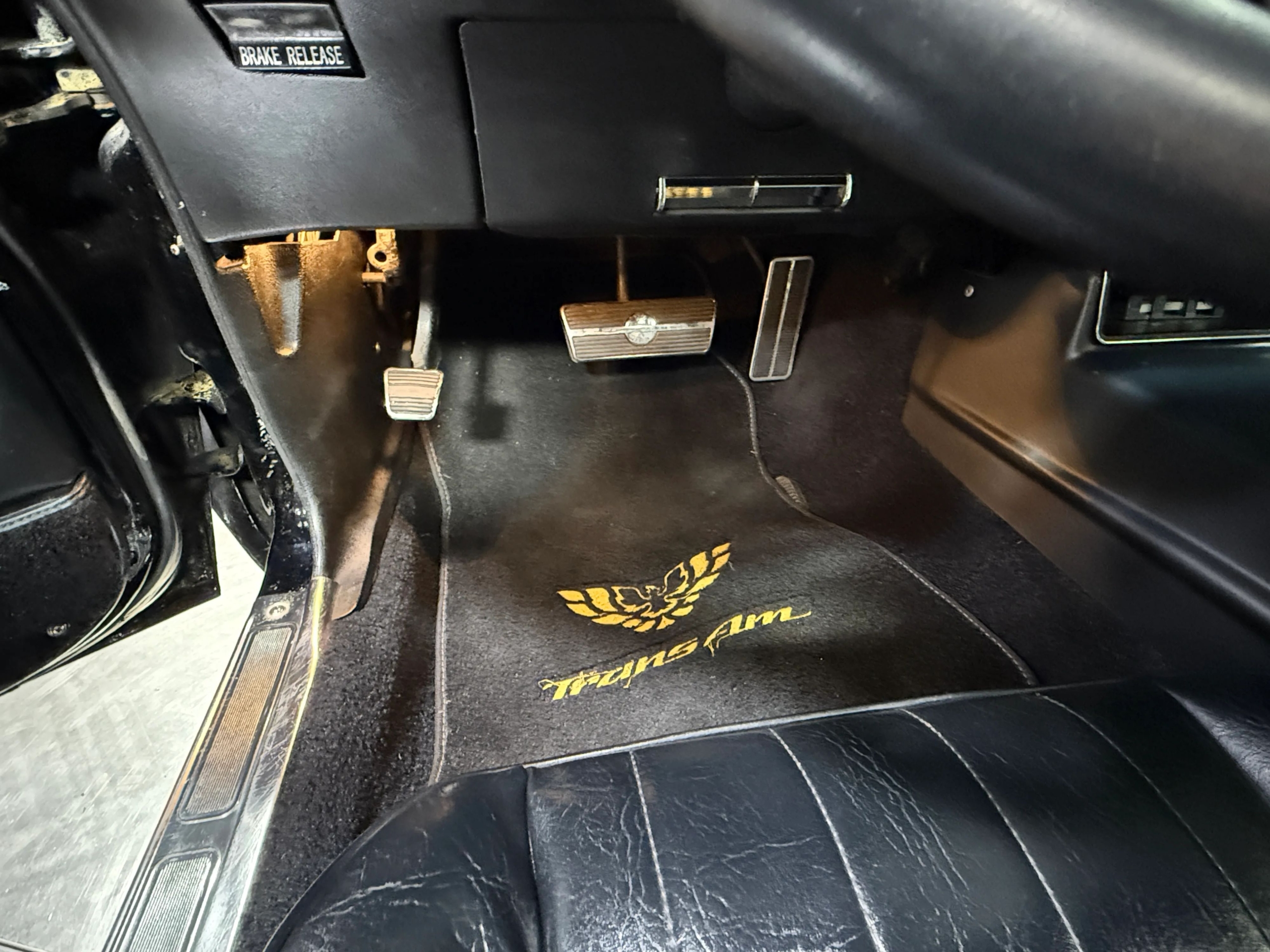 Inside, the car features a black custom interior with bucket seats, power windows, and the ever-desirable Fisher T-tops, delivering the open-air experience these cars are famous for. The cockpit retains the bold, driver-focused styling that helped define the Trans Am as both a performance car and a cultural symbol.