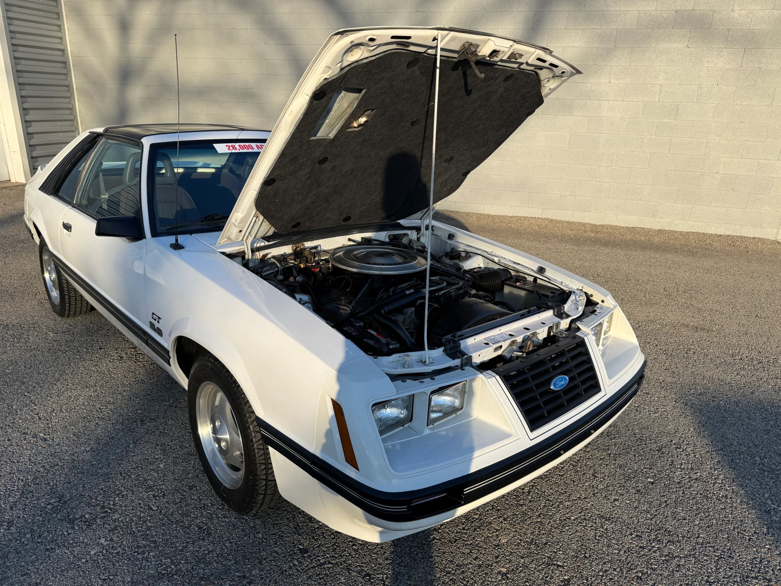 This 1984 Mustang GT is a pristine, time-capsule survivor featuring its original paint and just 26,000 documented actual miles. A rare find as one of only 682 produced with this specific paint and trim combination, this garage-kept beauty comes fully documented with a Marti Report, original owners card, and even its factory T-Top bags and fog light covers. The classic 5-speed manual transmission is paired with premium factory options like T-Tops, power windows, power locks, and cruise control, offering a highly collectible driving experience. Still retaining its original luster and paperwork, this GT represents a rare opportunity to own an exceptionally well-preserved piece of Fox Body history.