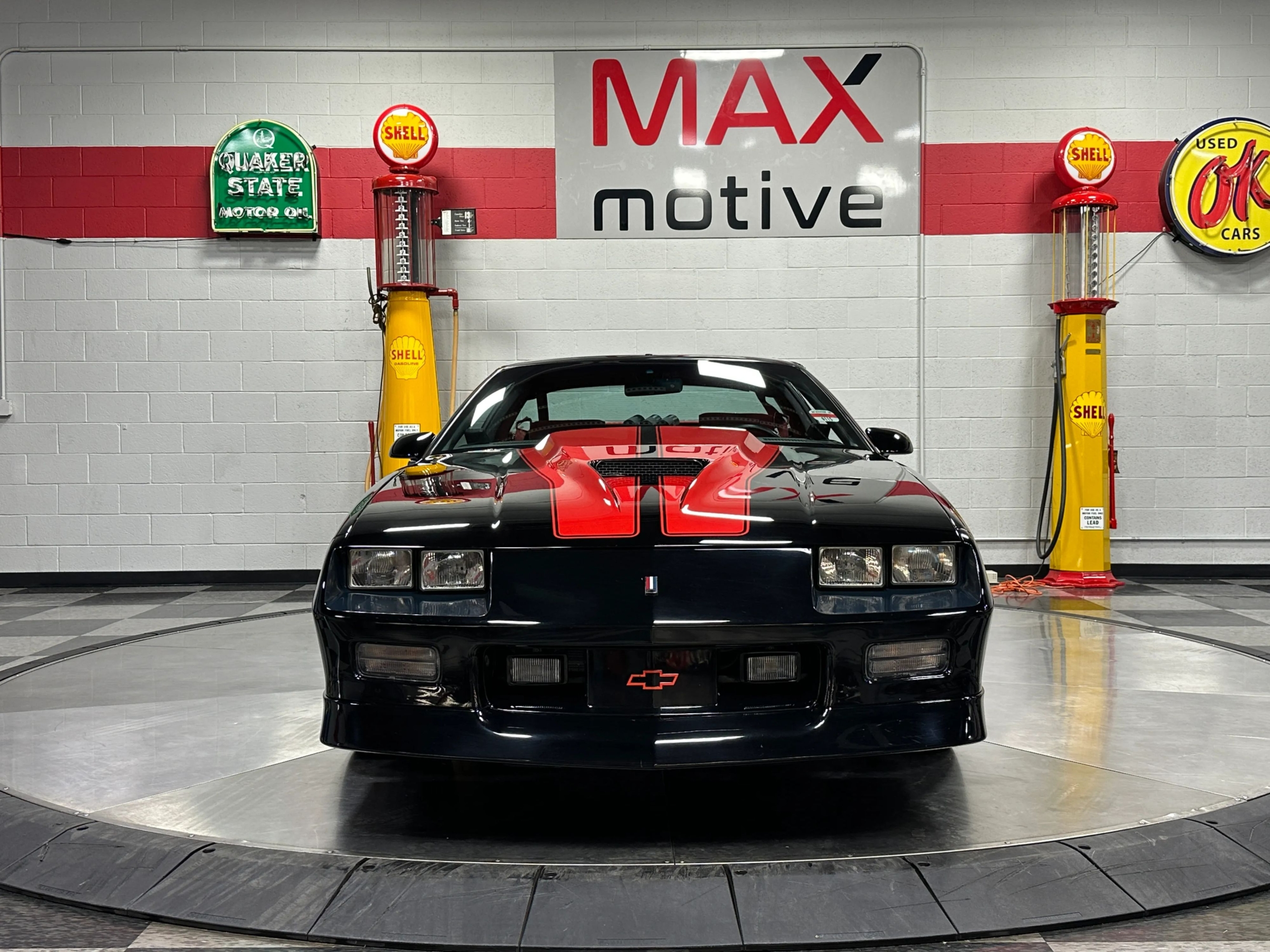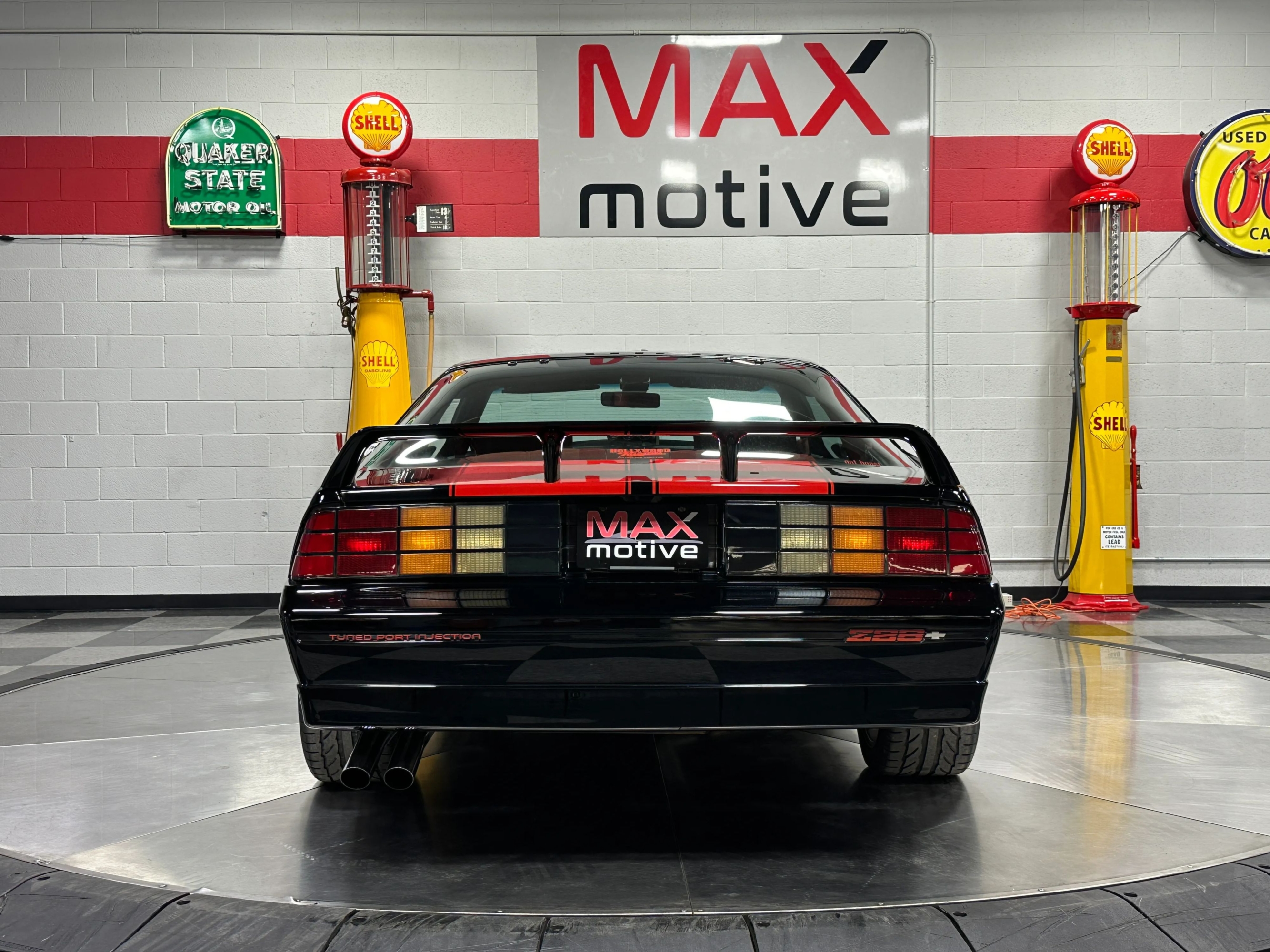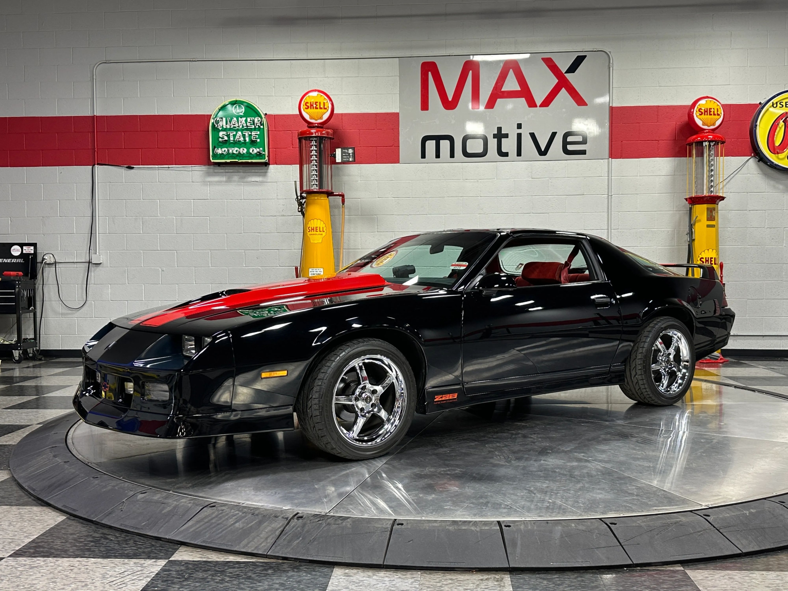 MaxMotive is pleased to offer this beautiful third generation Camaro for sale. This street beast is a perfect example in the car world of, you can not build this for what you can purchase this Iconic Camaro for. The owner has decades of receipts and meticulous maintenance records to go along with this sale. When you open the beautiful scooped hood, the list of engine upgrades goes on and one like your skid marks behind you after that first burnout. The 350 engine has been bored .030 over to a stout 383 cubic inches. The engine also breathes more easily by the ported and polished intake sitting on top, then flowing through Edelbrock headers with Jet hot coating. 58MM Accel throttle body allows all of that extra booooost from that Paxton supercharger. Inside cabin gauges monitor temperature on the supercharger, transmission, and engine oil. Aluminum Be-Cool radiator under the hood handles the engine temperature. With all of that horsepower work completed under the hood, the underside of the car was not neglected either. Hotchkis rear panhard bar and Kenny Brown sub frame connectors give this Camaro the extra rigidity required. When you look good, you feel good. An aftermarket ASCD scooped hood, to go along with the aero style rear spoiler, this third gen is a true show stopper. When all of the parts and labor are added up, this Camaro truly fits the you cant build this for what you can buy this for category. Please be sure to see the photos and details at maxmotive.com