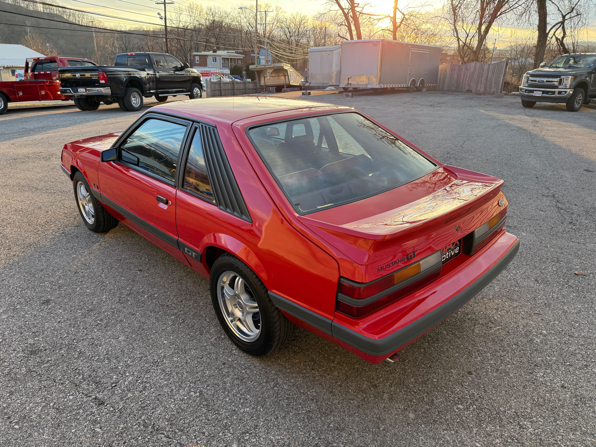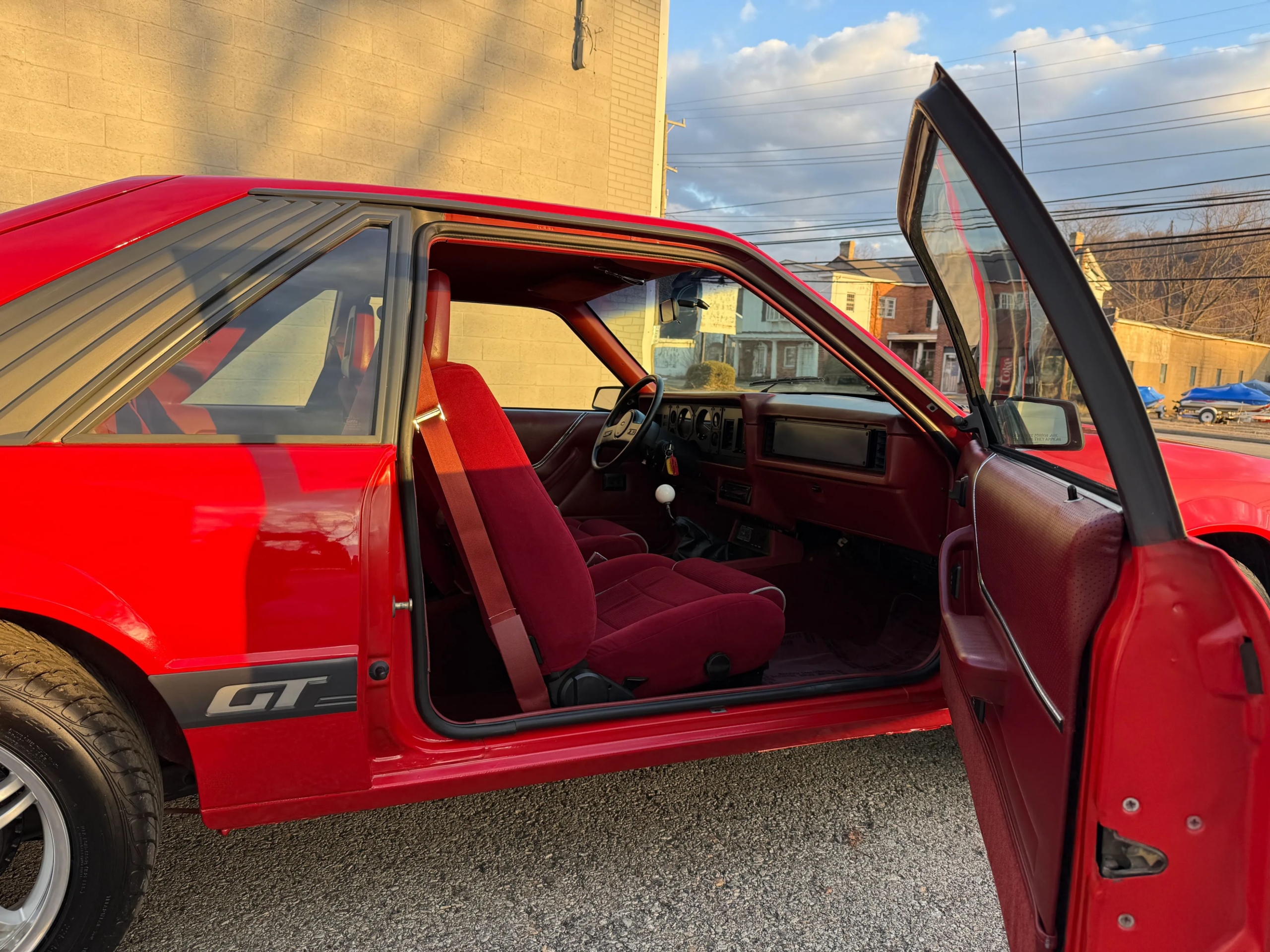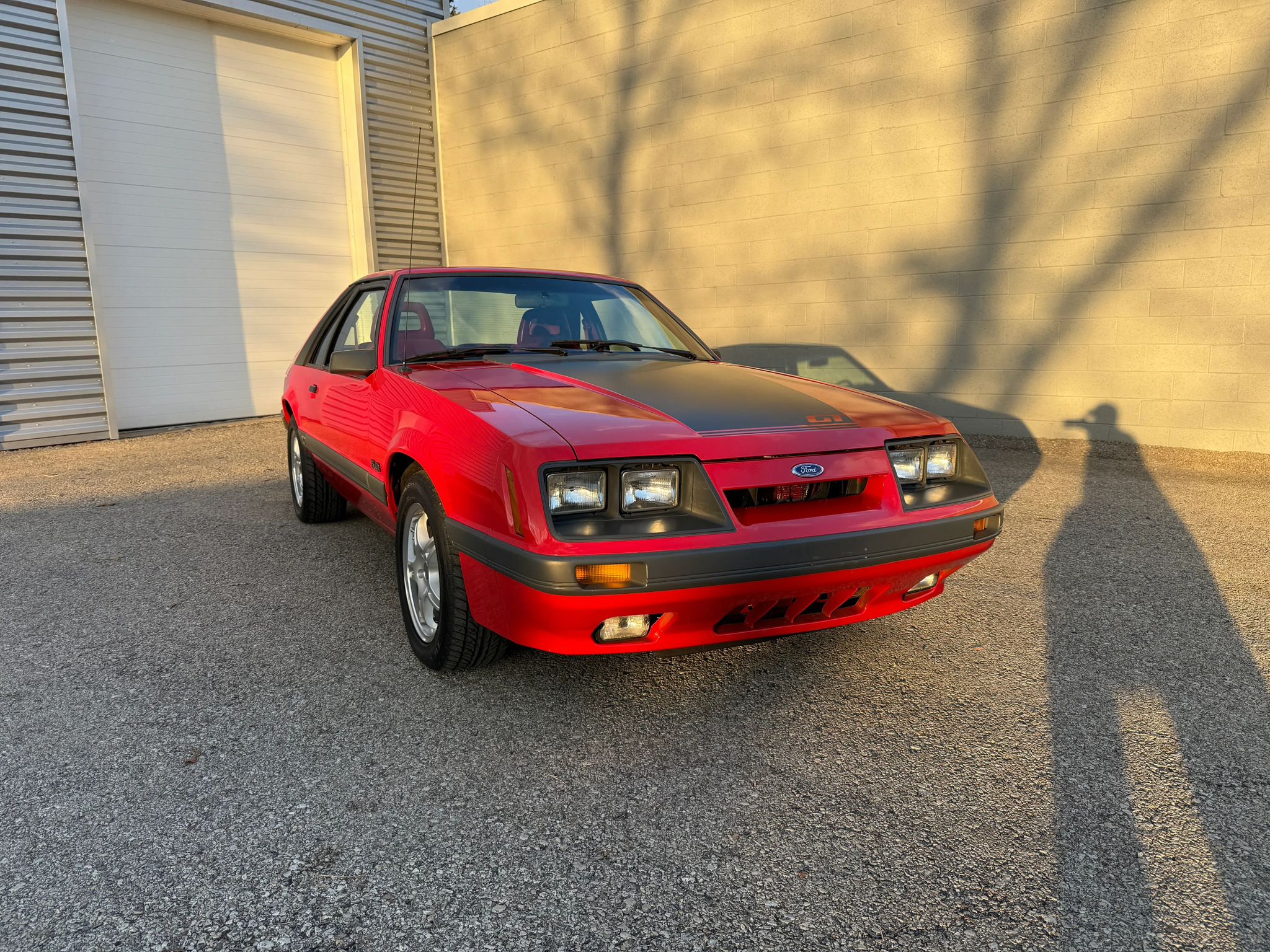This 1986 Mustang GT is a well-maintained example of the iconic ‘Four-Eye’ Fox Body, featuring 80,000 actual miles and the classic 5.0L V8 paired with a 5-speed manual transmission. Its bold red-on-red color scheme is accented by a signature black hood stripe and aggressive dual exhaust, giving it a quintessential 80s performance look. The car stays comfortable and modern with cold air conditioning, power windows and locks, cruise control, and an upgraded Kenwood radio, all while riding on stylish 16-inch Voxx wheels. This GT offers a balanced blend of vintage muscle car character and convenient power features, making it a perfect turn-key cruiser for any enthusiast.