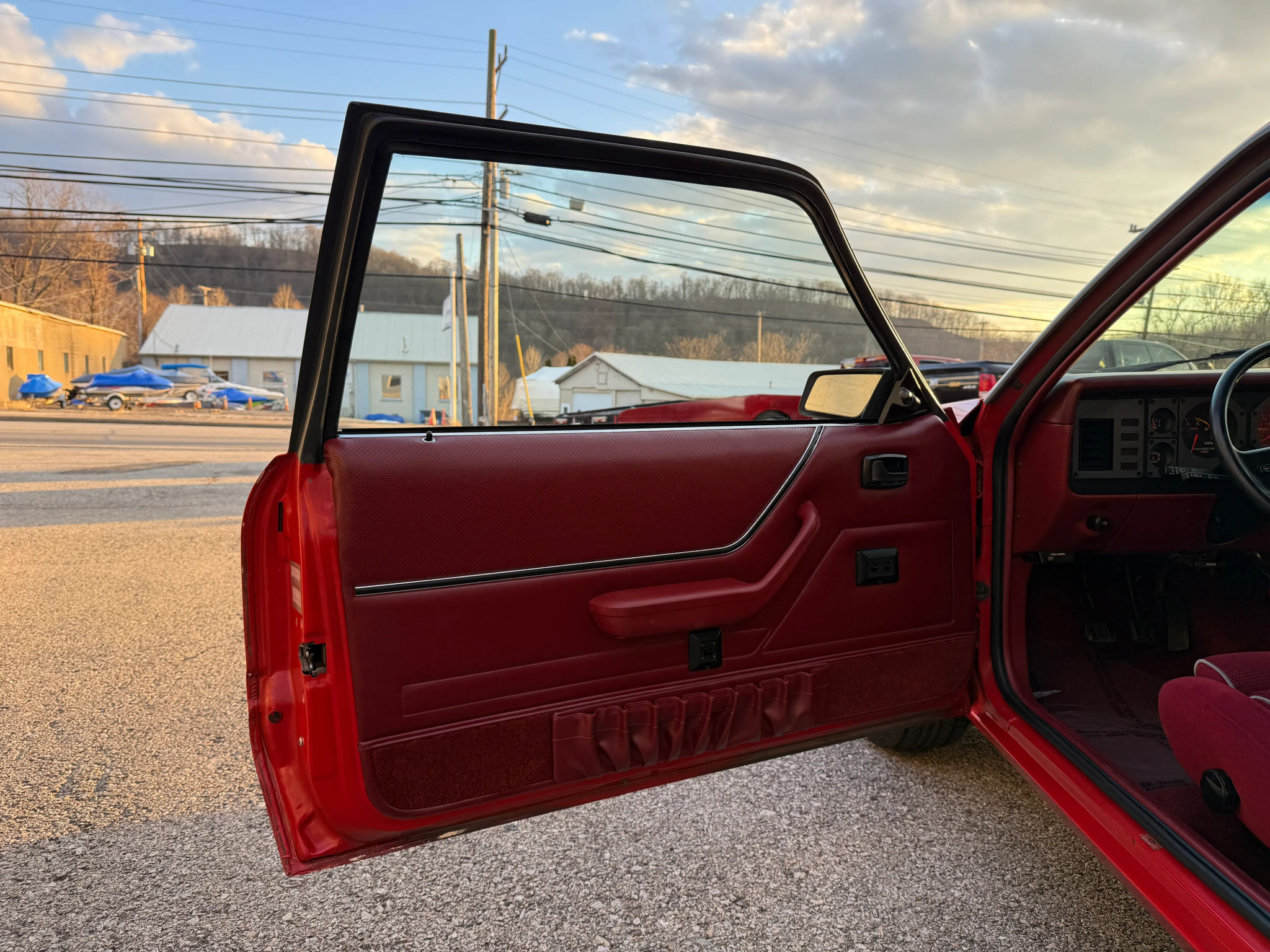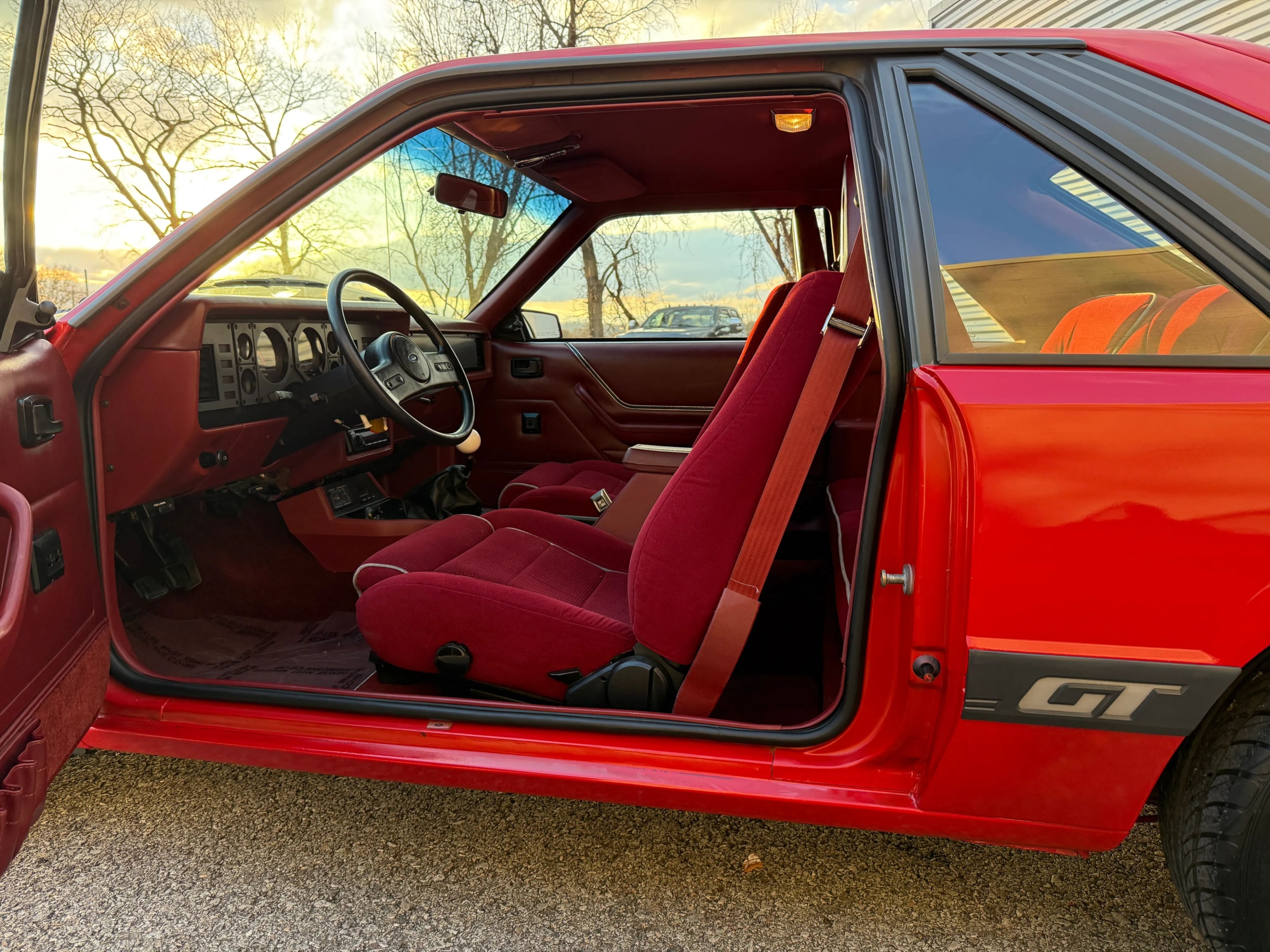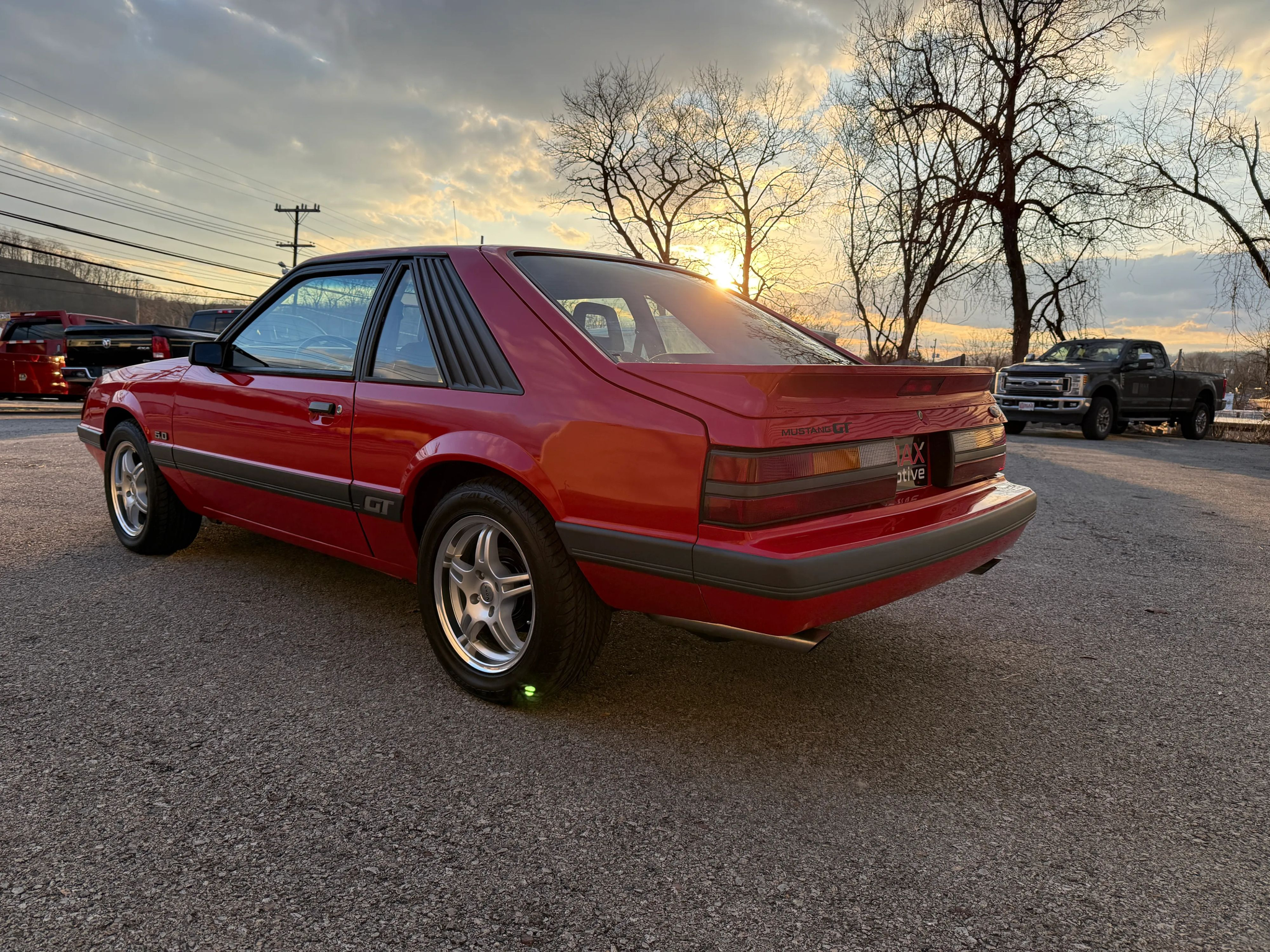 This 1986 Mustang GT is a well-maintained example of the iconic ‘Four-Eye’ Fox Body, featuring 80,000 actual miles and the classic 5.0L V8 paired with a 5-speed manual transmission. Its bold red-on-red color scheme is accented by a signature black hood stripe and aggressive dual exhaust, giving it a quintessential 80s performance look. The car stays comfortable and modern with cold air conditioning, power windows and locks, cruise control, and an upgraded Kenwood radio, all while riding on stylish 16-inch Voxx wheels. This GT offers a balanced blend of vintage muscle car character and convenient power features, making it a perfect turn-key cruiser for any enthusiast.