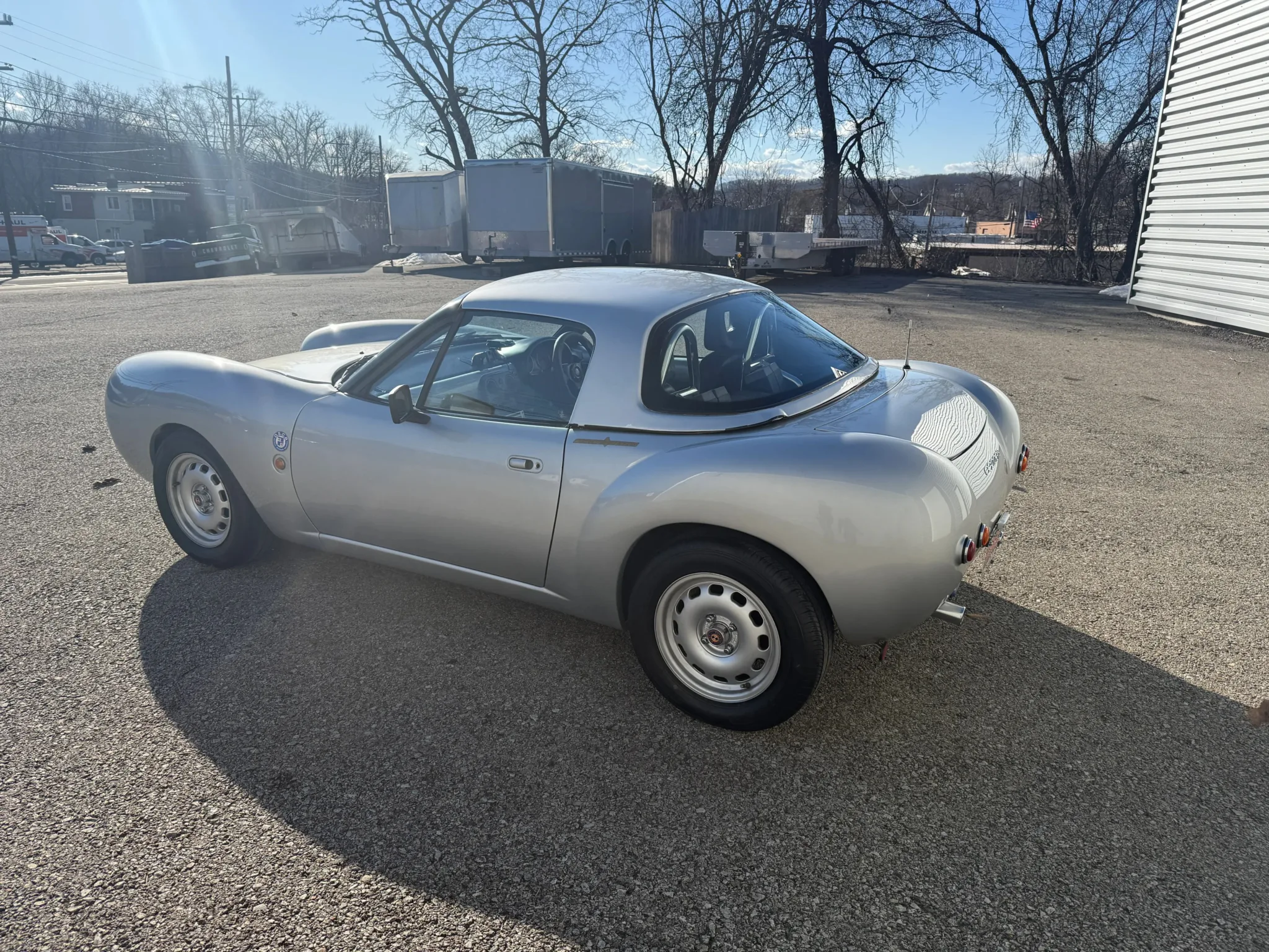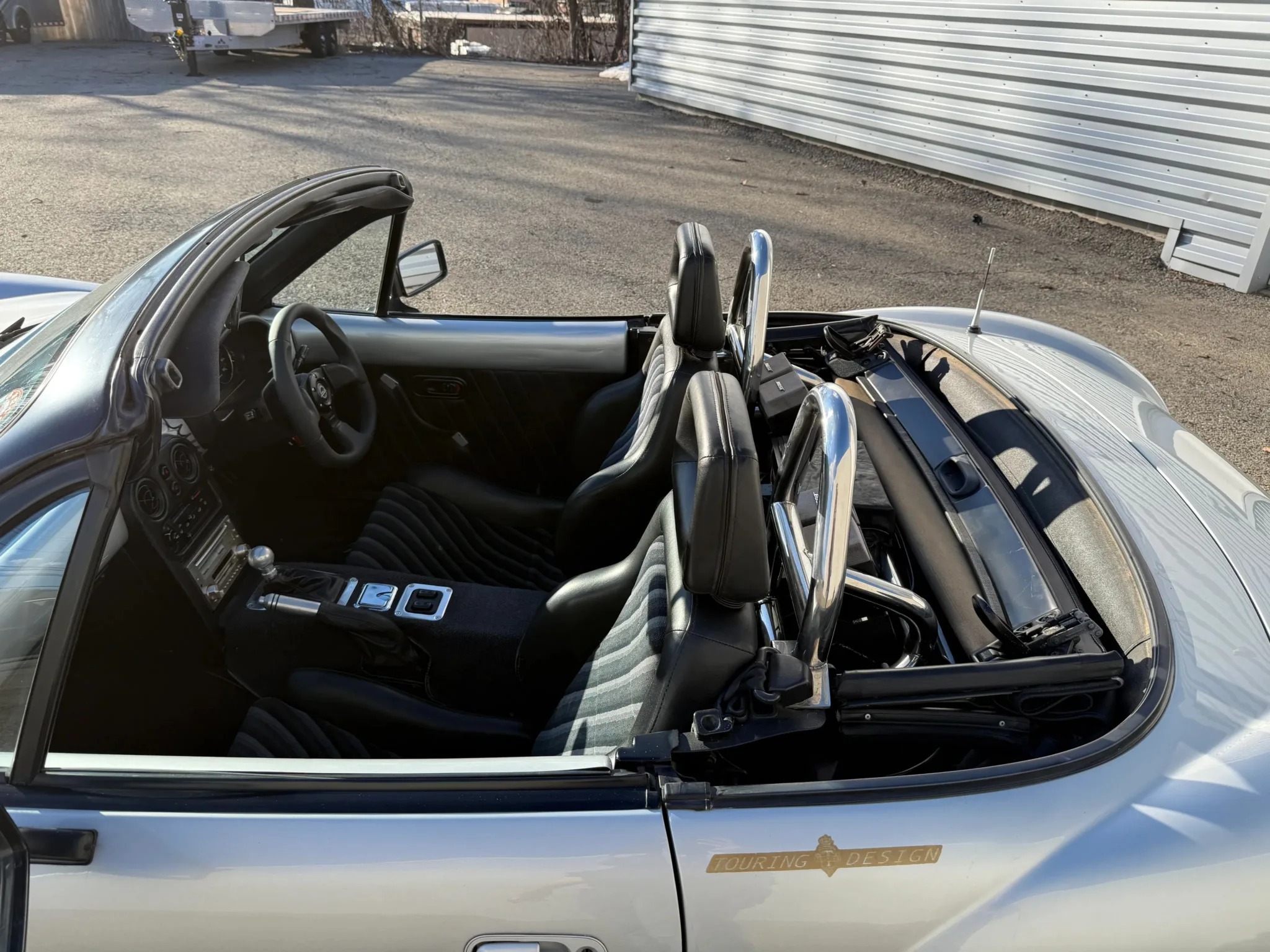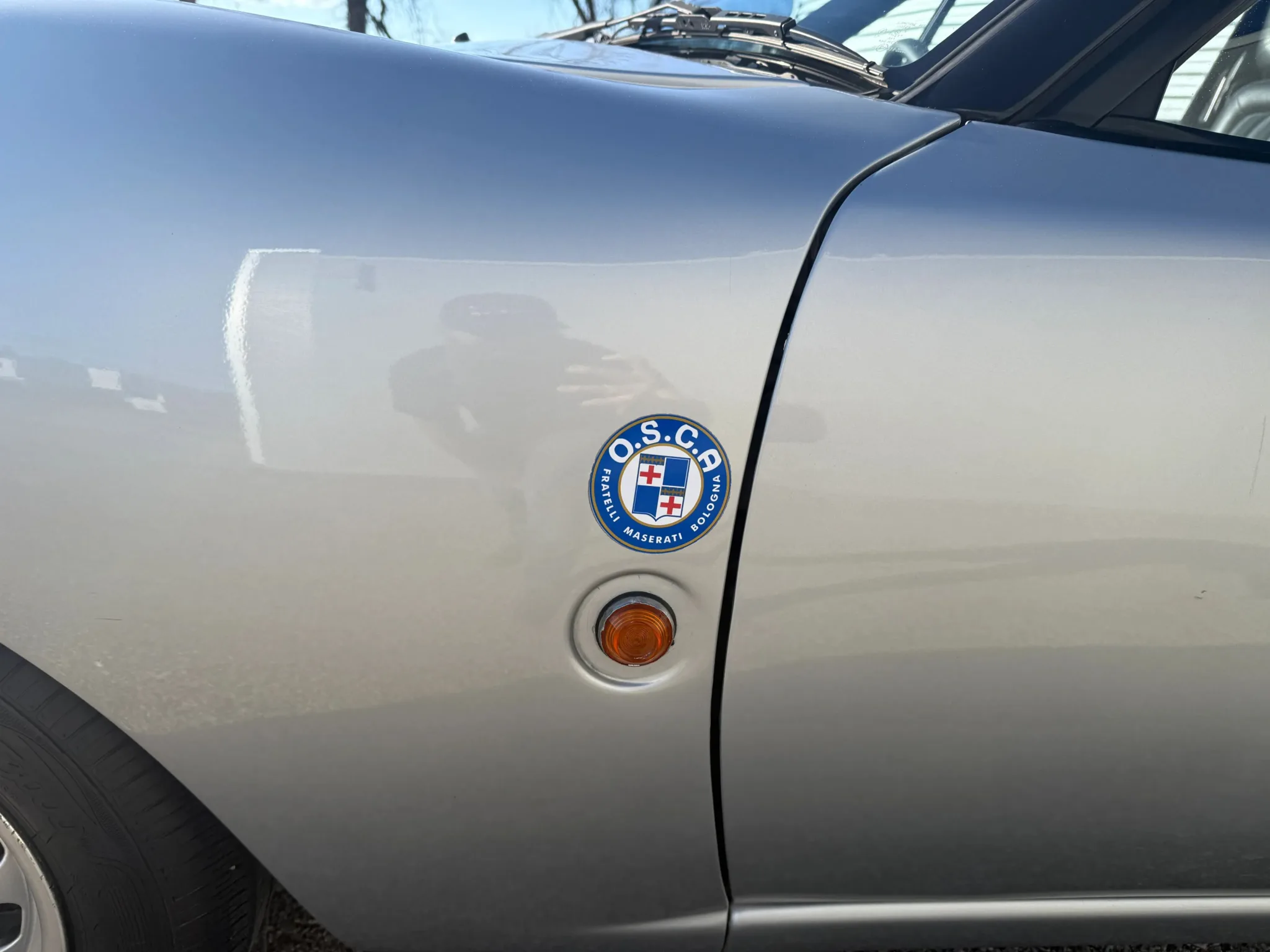 This 1990 O.S.C.A. Bazza is an incredibly rare automotive gem, being one of only 30 limited-edition examples produced in Japan. Designed by the legendary Ercole Spada and built on the reliable Japanese Eunos Roadster (Mazda Miata) platform, this right-hand drive barchetta features a 1.6L engine and an automatic transmission. The silver exterior, which includes both a matching convertible hardtop and a well-preserved soft top, sits on 14-inch wheels finished with authentic O.S.C.A. Maserati center caps. Inside, the cabin is outfitted with a custom NSG Innovations steering wheel (original included), Bose speakers mounted behind the seats, and a vintage Panasonic 8-disc CD player setup. While showing minor paint wear on the rear and near the hardtop base, this unique coach-built roadstercomplete with its signature trunk-mounted fuel fillerremains a highly collectible fusion of Italian style and Japanese engineering.