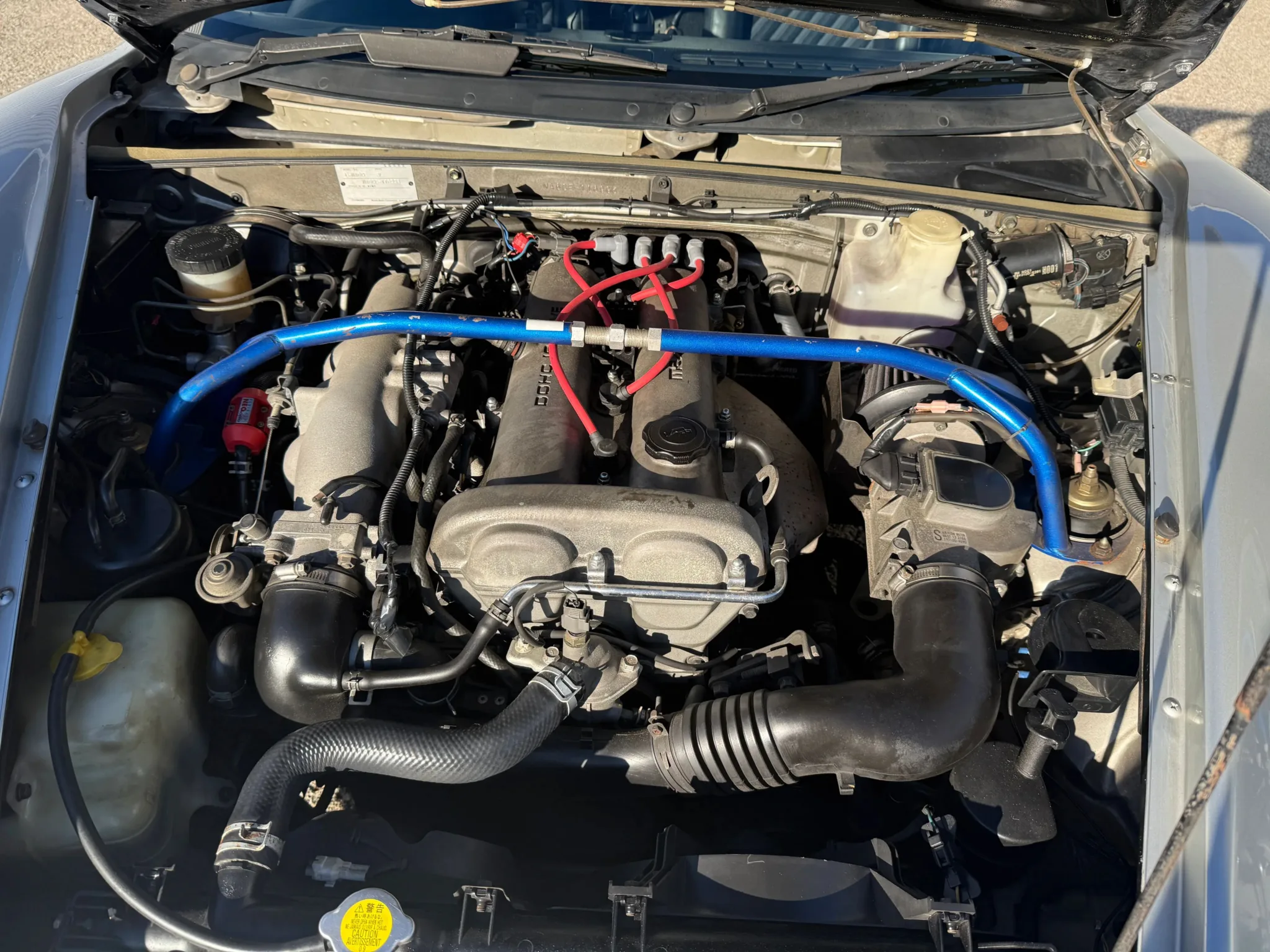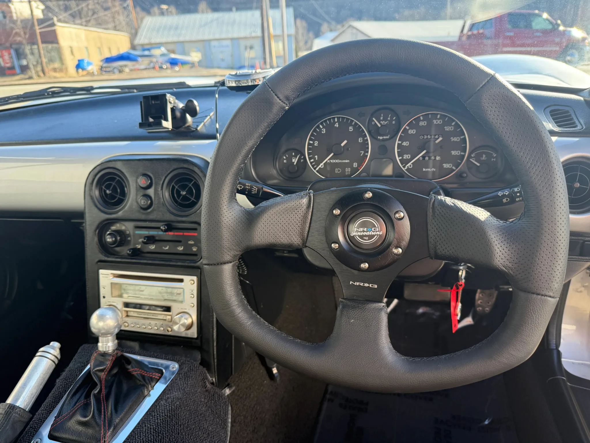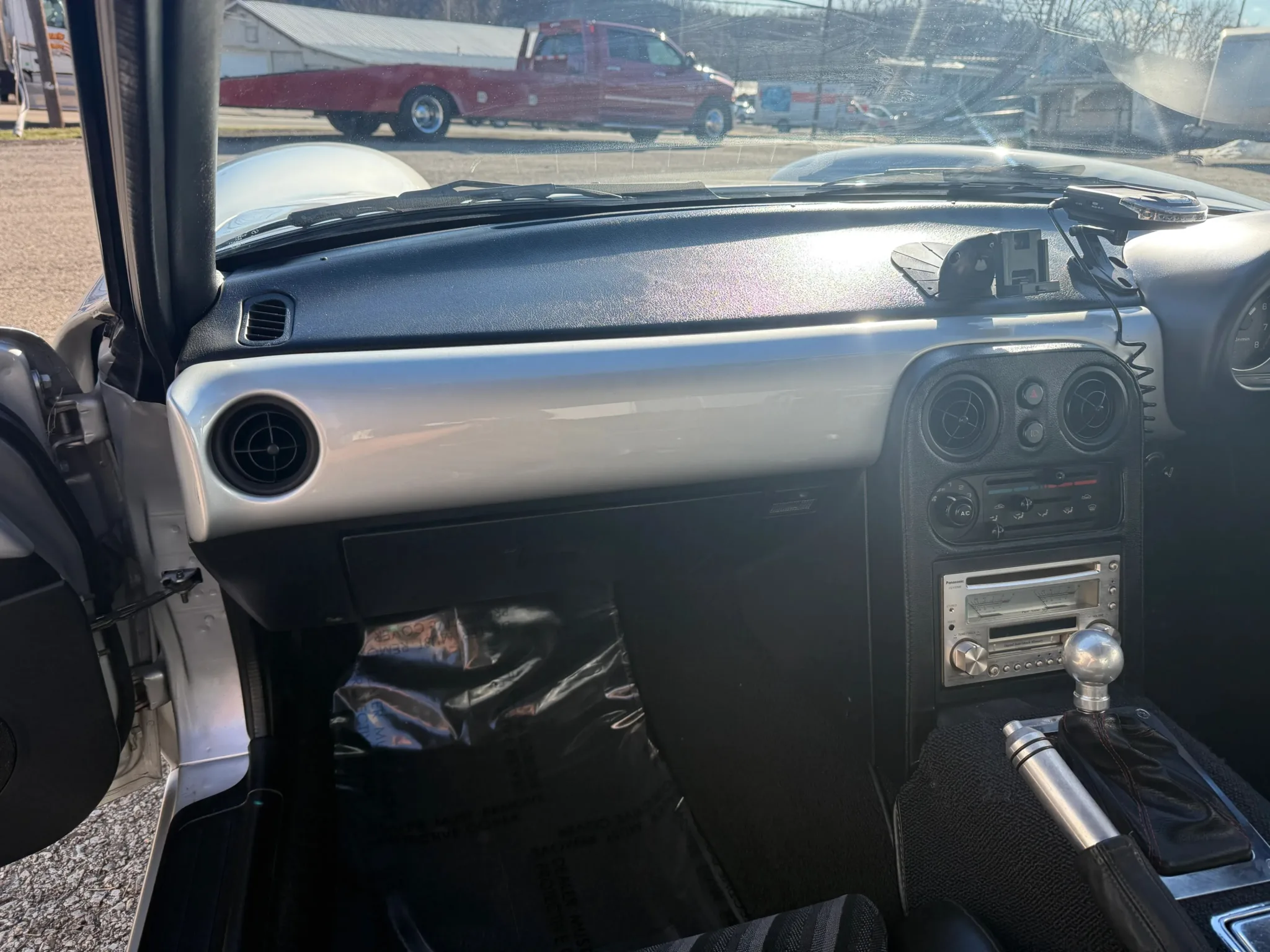 This 1990 O.S.C.A. Bazza is an incredibly rare automotive gem, being one of only 30 limited-edition examples produced in Japan. Designed by the legendary Ercole Spada and built on the reliable Japanese Eunos Roadster (Mazda Miata) platform, this right-hand drive barchetta features a 1.6L engine and an automatic transmission. The silver exterior, which includes both a matching convertible hardtop and a well-preserved soft top, sits on 14-inch wheels finished with authentic O.S.C.A. Maserati center caps. Inside, the cabin is outfitted with a custom NSG Innovations steering wheel (original included), Bose speakers mounted behind the seats, and a vintage Panasonic 8-disc CD player setup. While showing minor paint wear on the rear and near the hardtop base, this unique coach-built roadstercomplete with its signature trunk-mounted fuel fillerremains a highly collectible fusion of Italian style and Japanese engineering.