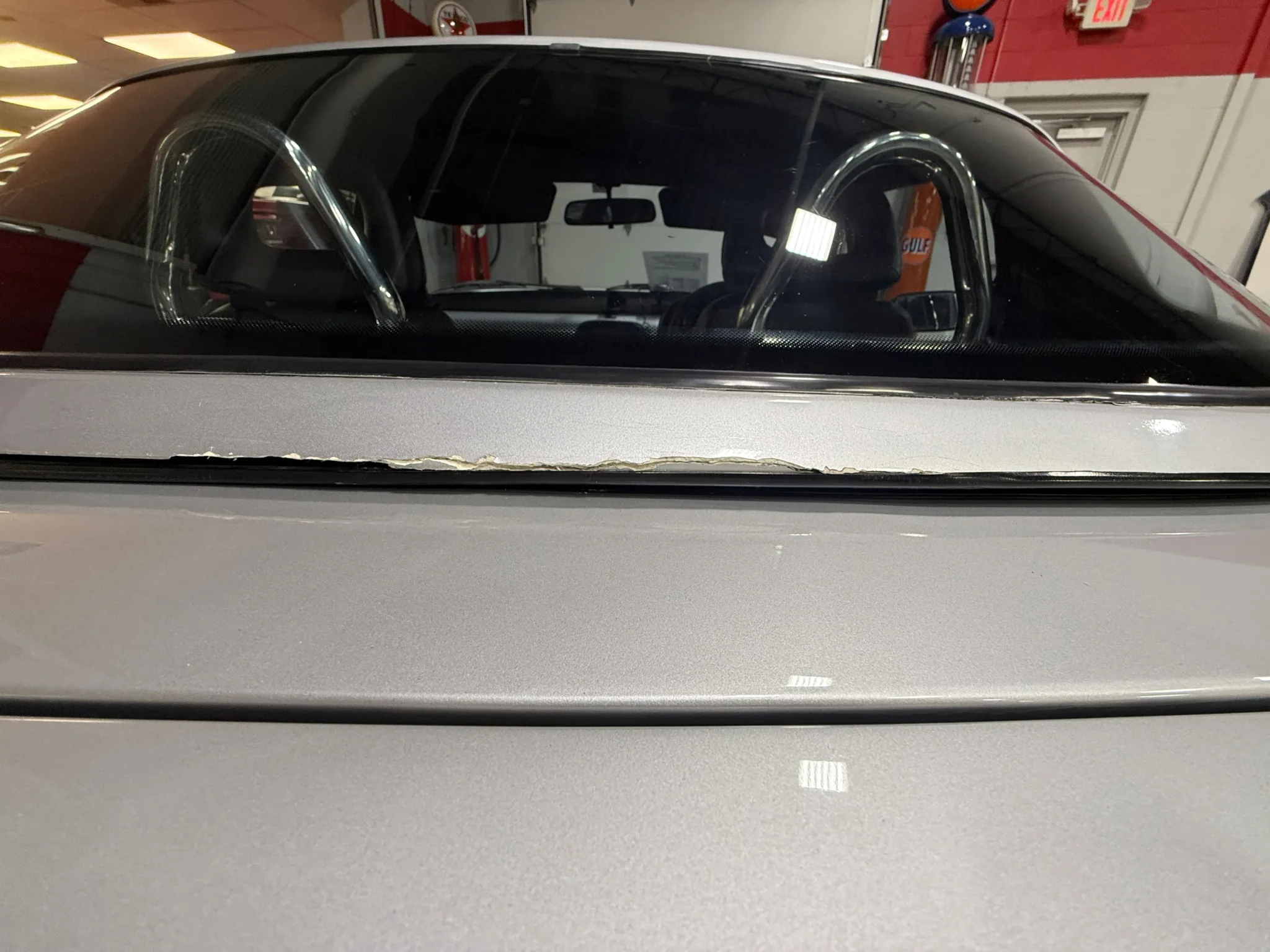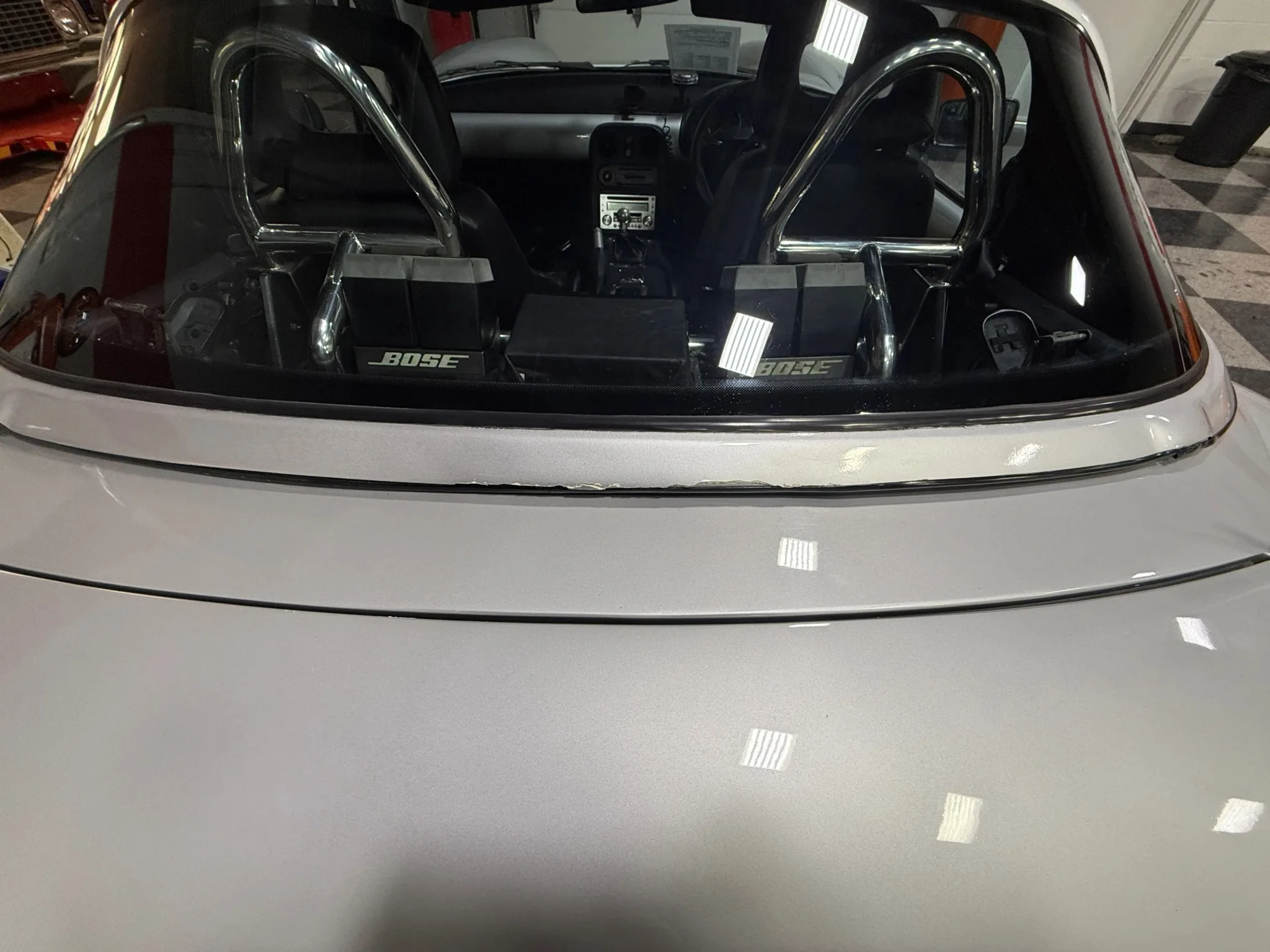 Silver exterior in good condition except for spot on back right rear and around base of hardtop