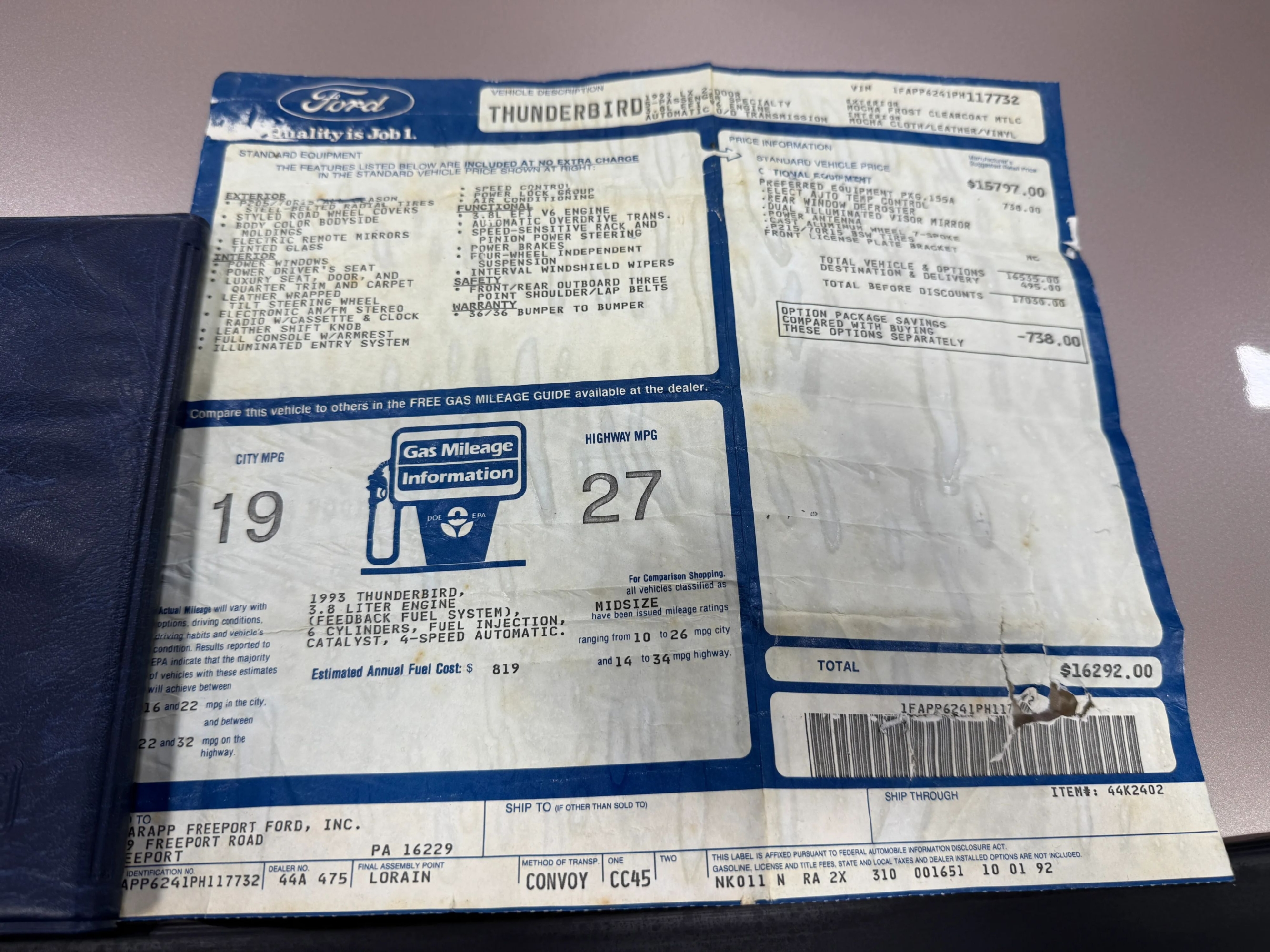 Maxmotive is proud to offer this 1993 Ford Thunderbird LX. This nicely preserved gem is showing 83,534 miles on the odometer. The engine was replaced approximately 42,000 miles ago (receipt available) in June 2006. This Thunderbird is nicely optioned from the factory 32 years ago. Power windows, locks, 15 aluminum wheels, cruise, control, and air conditioning are a few options this beauty was graced with at birth. Great vehicle and entry price to get into the classic car market, or an extra addition to your collection. Please check more pictures at www.maxmotive.com
