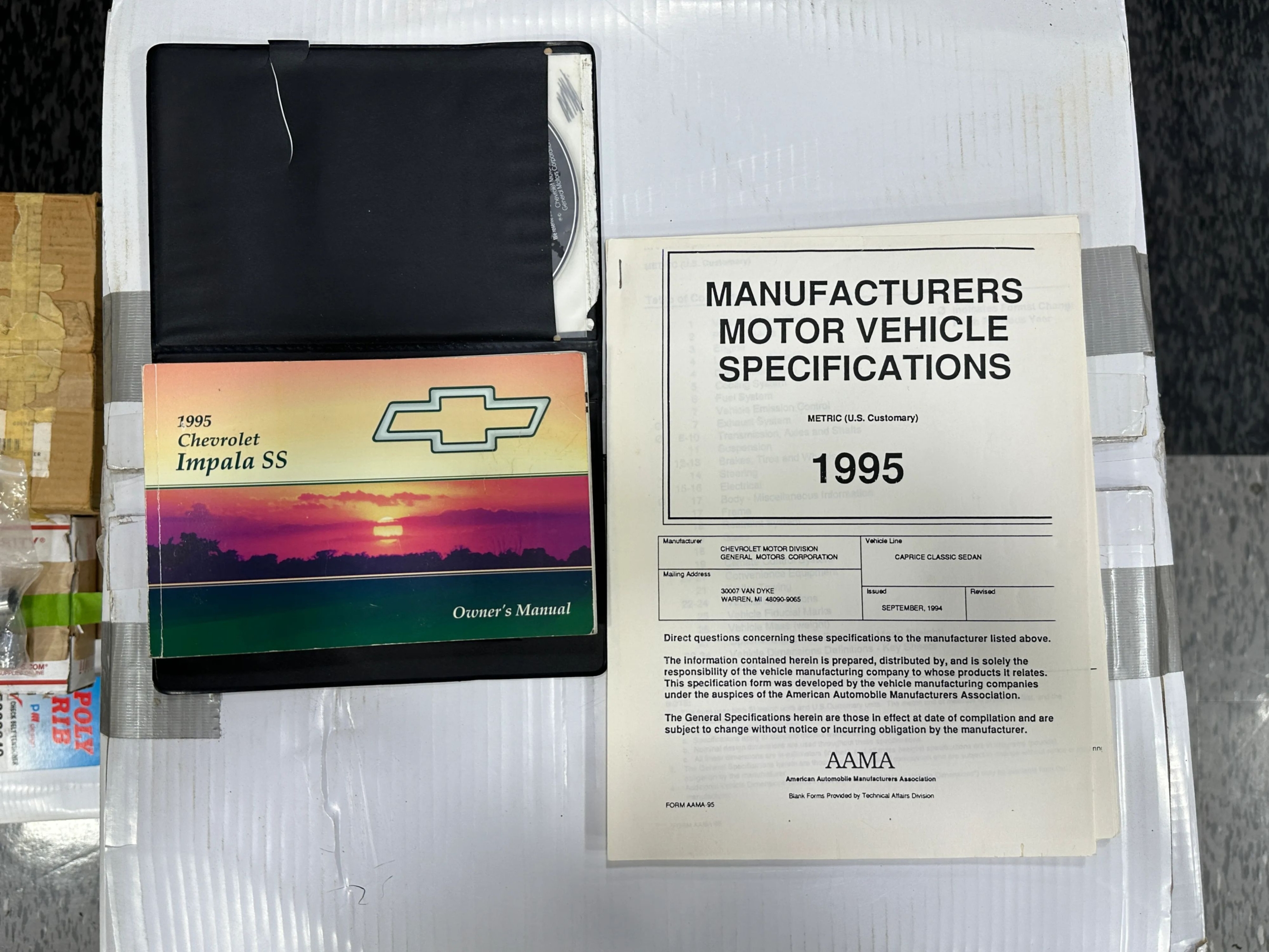 MaxMotive is pleased to present this beautifully maintained 1995 Chevrolet Impala SS. All the major components are original equipment except for the 17-inch Rallye wheels with hubcaps and trim rings. The original 5-spoke aluminum wheels are included, however, along with a thick binder with receipts and literature and the seldom seen Manufacturers Motor Vehicle Specifications.