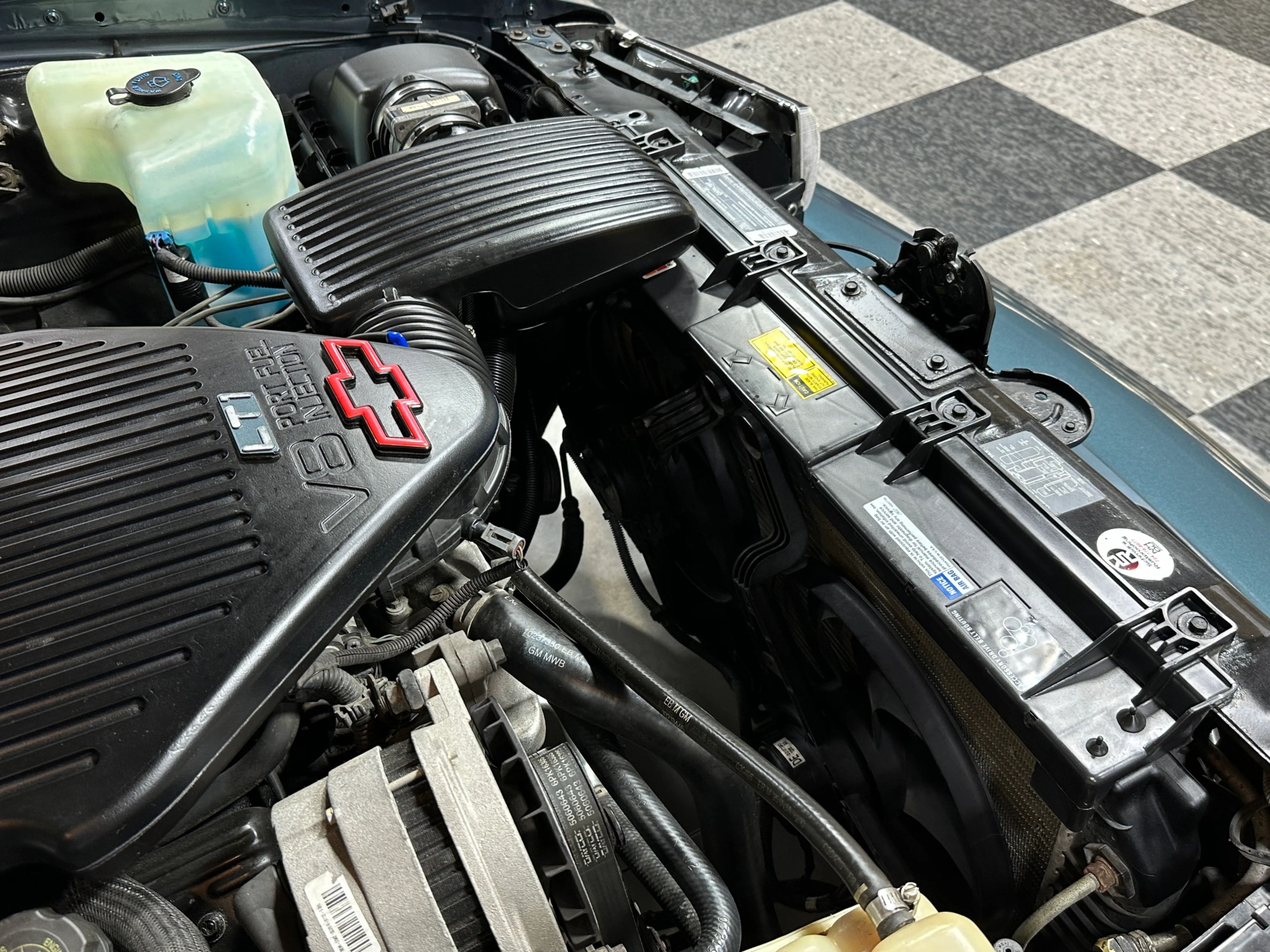 This book is an absolute dream find to any enthusiast as it contains detailed information right down to engine component materials and the weight of optional equipment. (The rear spoiler, for example, weighs 1.4 pounds.) The car itself presents very well with its original Gray Green Metallic exterior paint and gray leather interior. It is extremely well equipped with features such as air conditioning; power windows, seats, locks, and mirrors; AM/FM/CD sound; and power trunk release. The original 5.7L LT1 V8 engine teams with a 4L60 4-speed Automatic Overdrive transmission for smooth performance and good fuel economy.