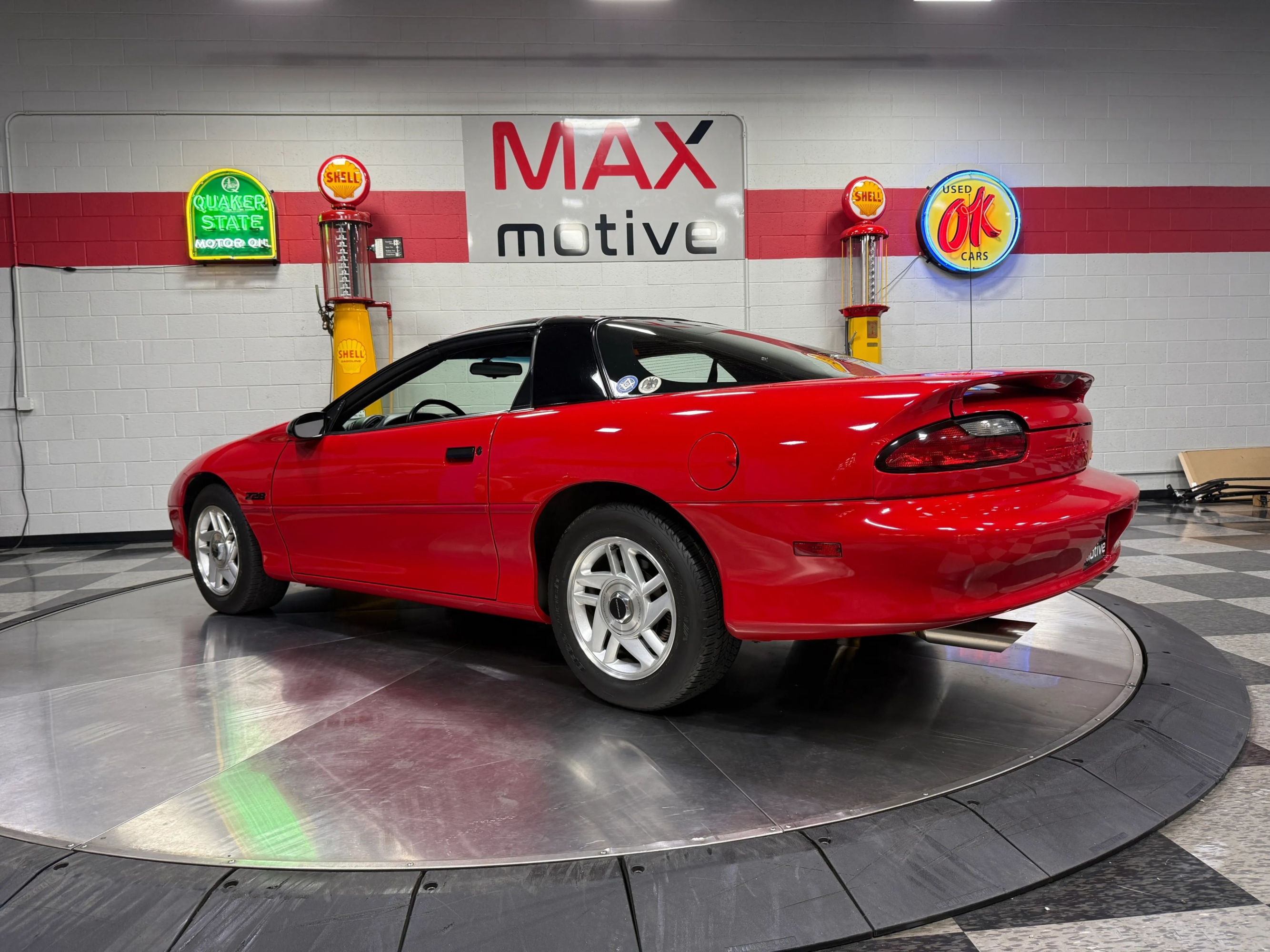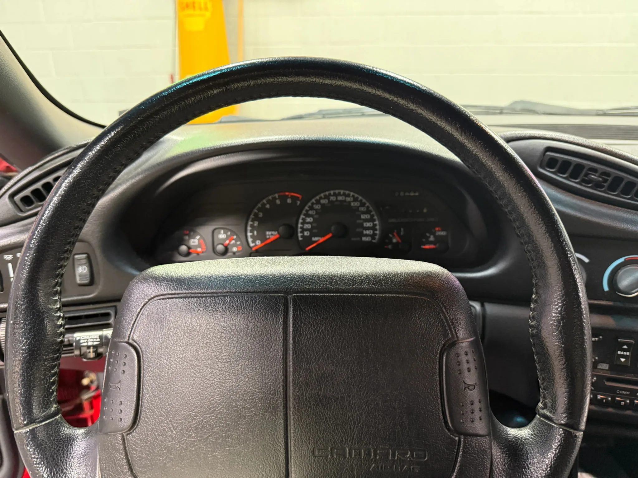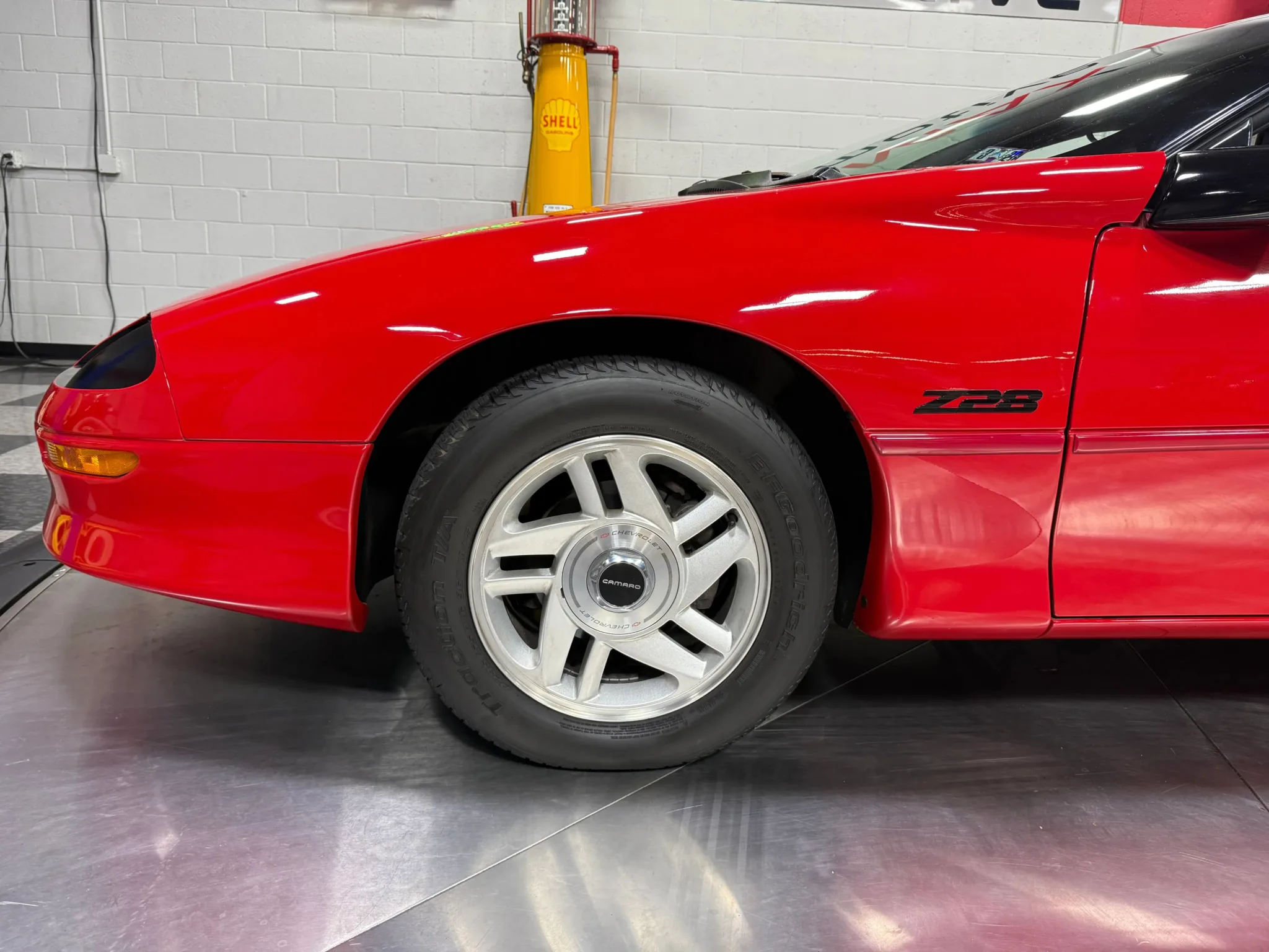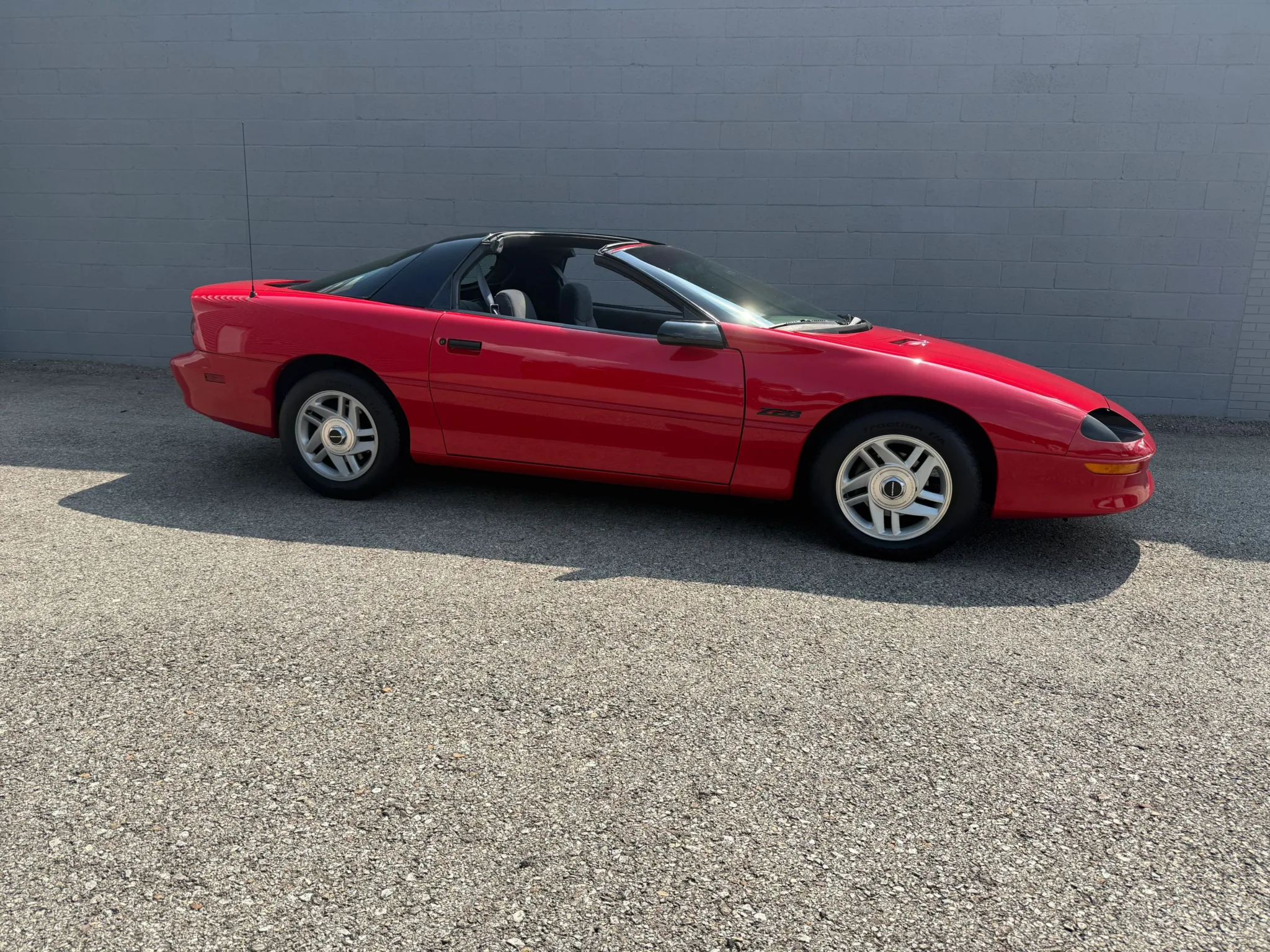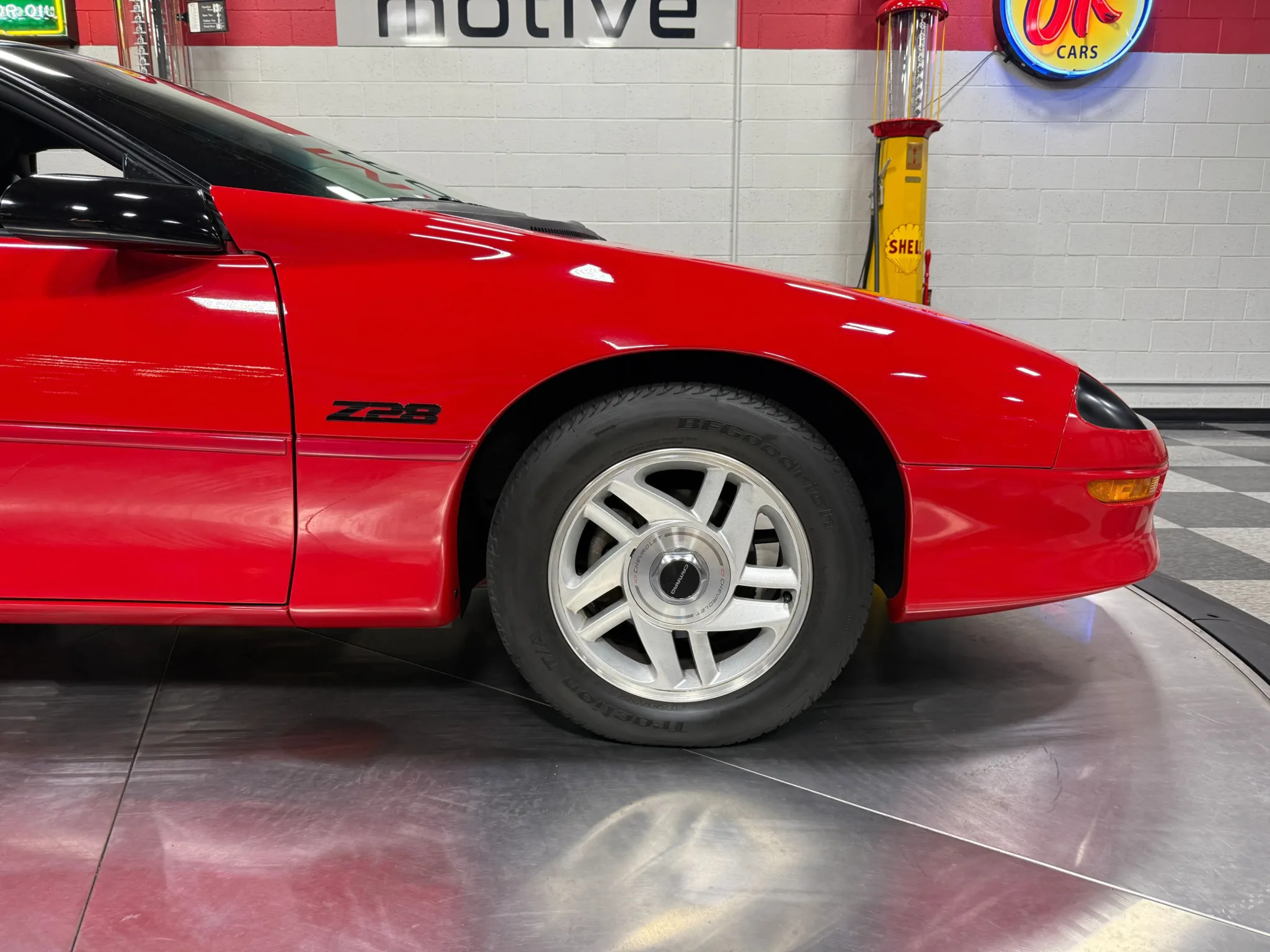 Maxmotive is proud to present this very low mileage 1996 Camaro Z-28. This stunner presents itself very well in its original condition. The current owner has preserved and enjoyed the Camaro for the last 10 years or so, and it is now ready for its next owner and chapter to start. The red paint is still nice and glossy, and the interiors shape shows the level of care and preservation this Camaro has been under. The plastic original upper dash pad is still intact showing how much garage time this Camaro received. This Camaro was equipped from the factory with factory T-Tops, power windows and mirrors, cruise control, and a Bose CD player. The 16 aluminum double spoke rims give the Camaro the appropriate stance, but the LT1 V-8 engine is still fully ready and capable of roasting the rear tires. The factory original window sticker is included as well. The air conditioning compressor spins freely, but the A/C does not blow cold. The passenger window motor can be lazy going up. You can see more pictures and videos at www.maxmotive.com