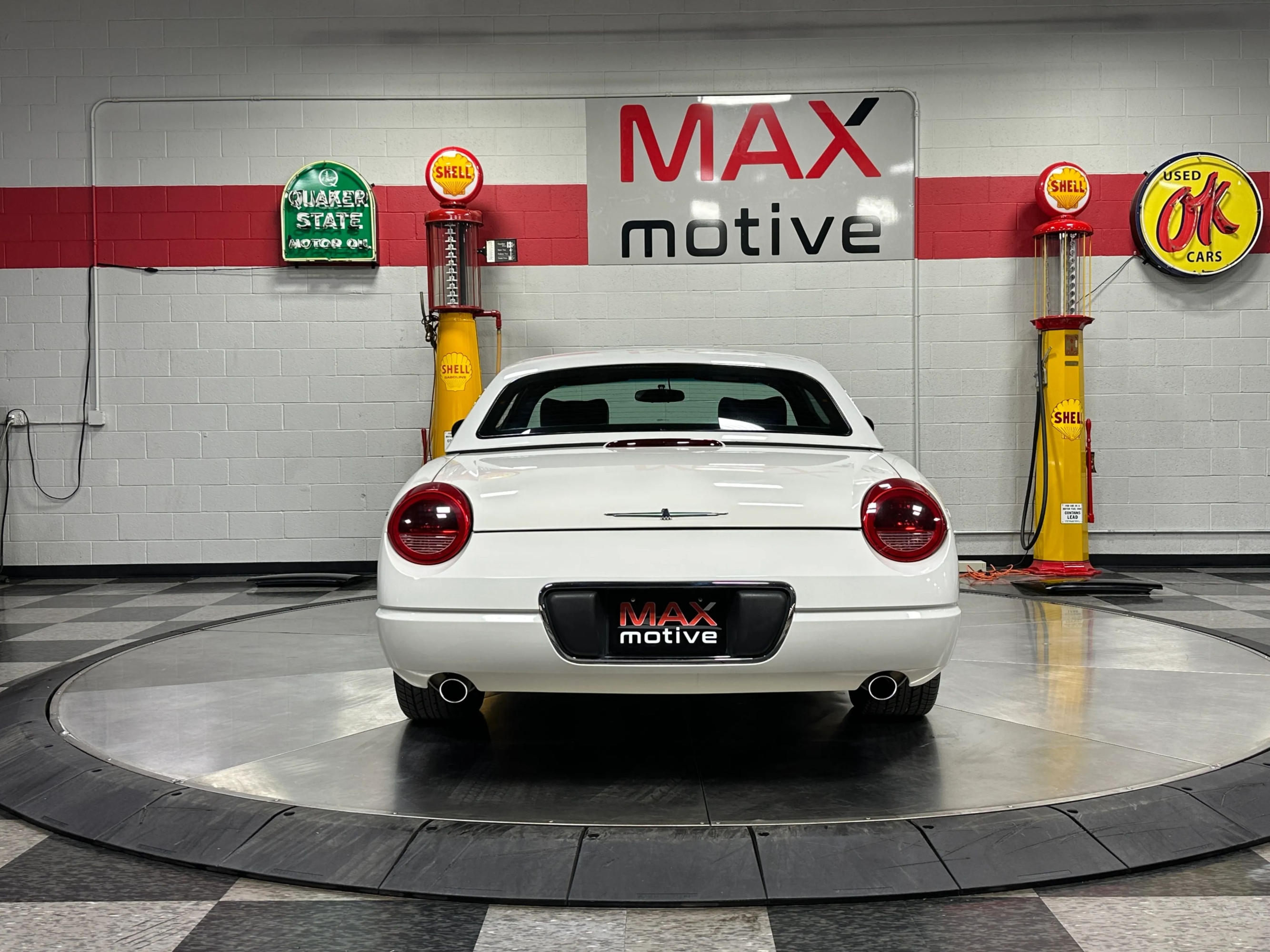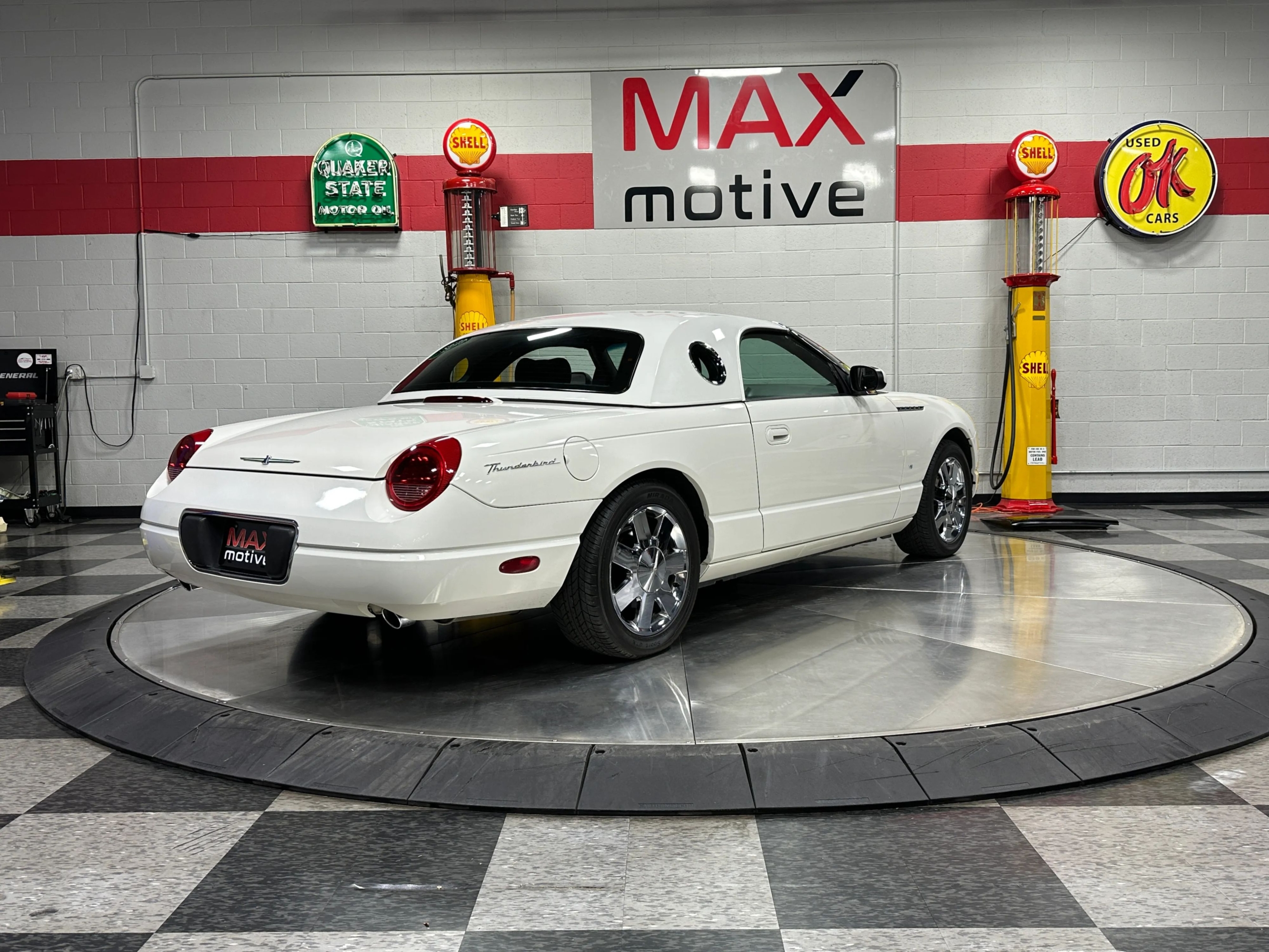MaxMotive is pleased to offer this one top, two top, no top 2003 Ford Thunderbird. This really well maintained convertible is ready for summer time cruising with that top down, or off, or on. The factory hard top achieves the classic look of the Thunderbirds from the 1950s. During those warm summer months, the hard top can be easily removed, and secured to the hard top cart that safely sits in the trunk. Aside from an iconic look revisualized , the new era Thunderbird is refined with modern amenities for comfort on those long cruises. Dual power front seats, power windows and locks, 6 disc cd player, cruise control, and heated front seats round out the refined look of the modern era Thunderbird. Stop on in for a test drive at our showroom in Cheswick, this Thunderbird is ready for forever home. Please be sure to see the photos and details at maxmotive.com.