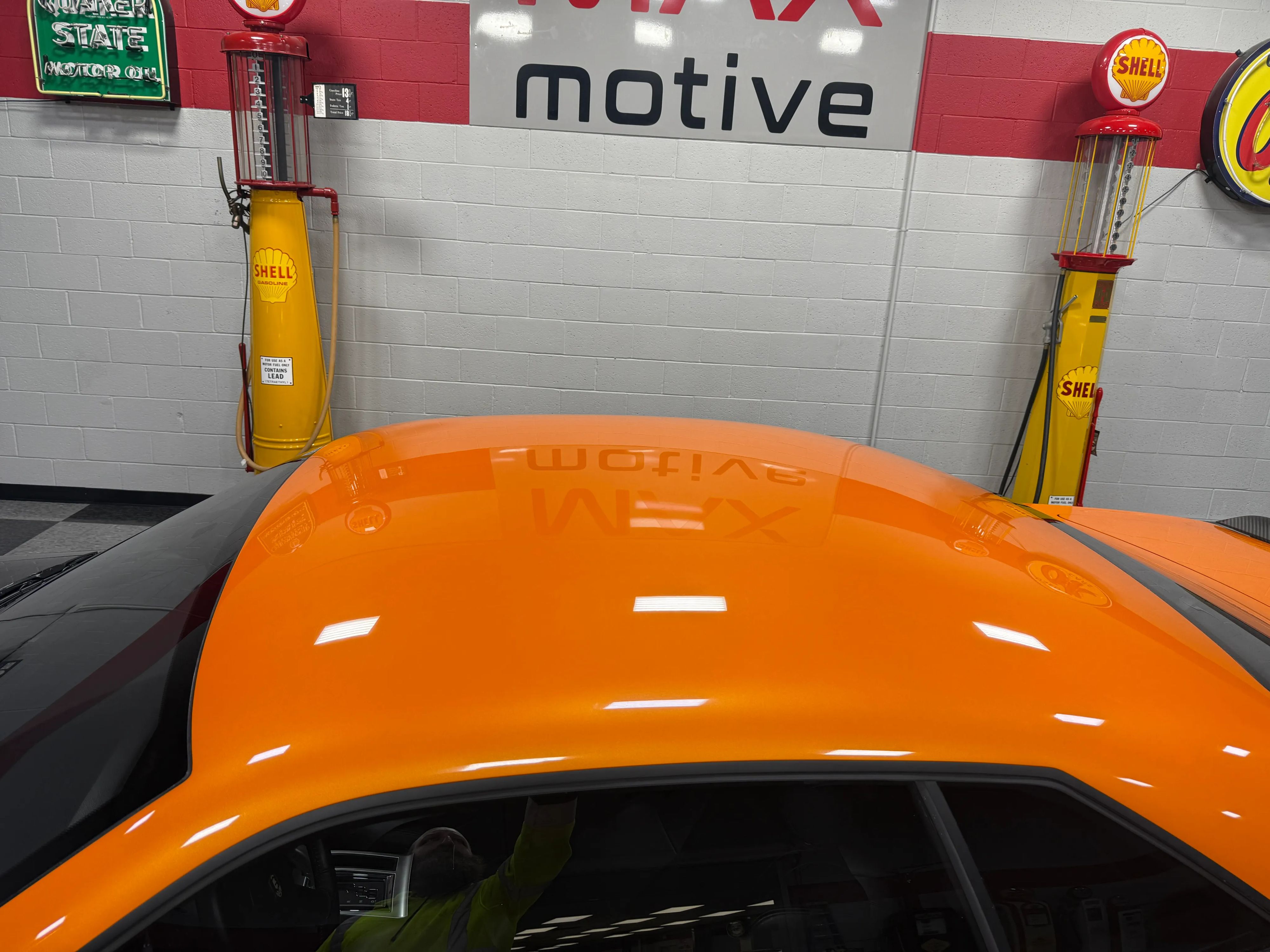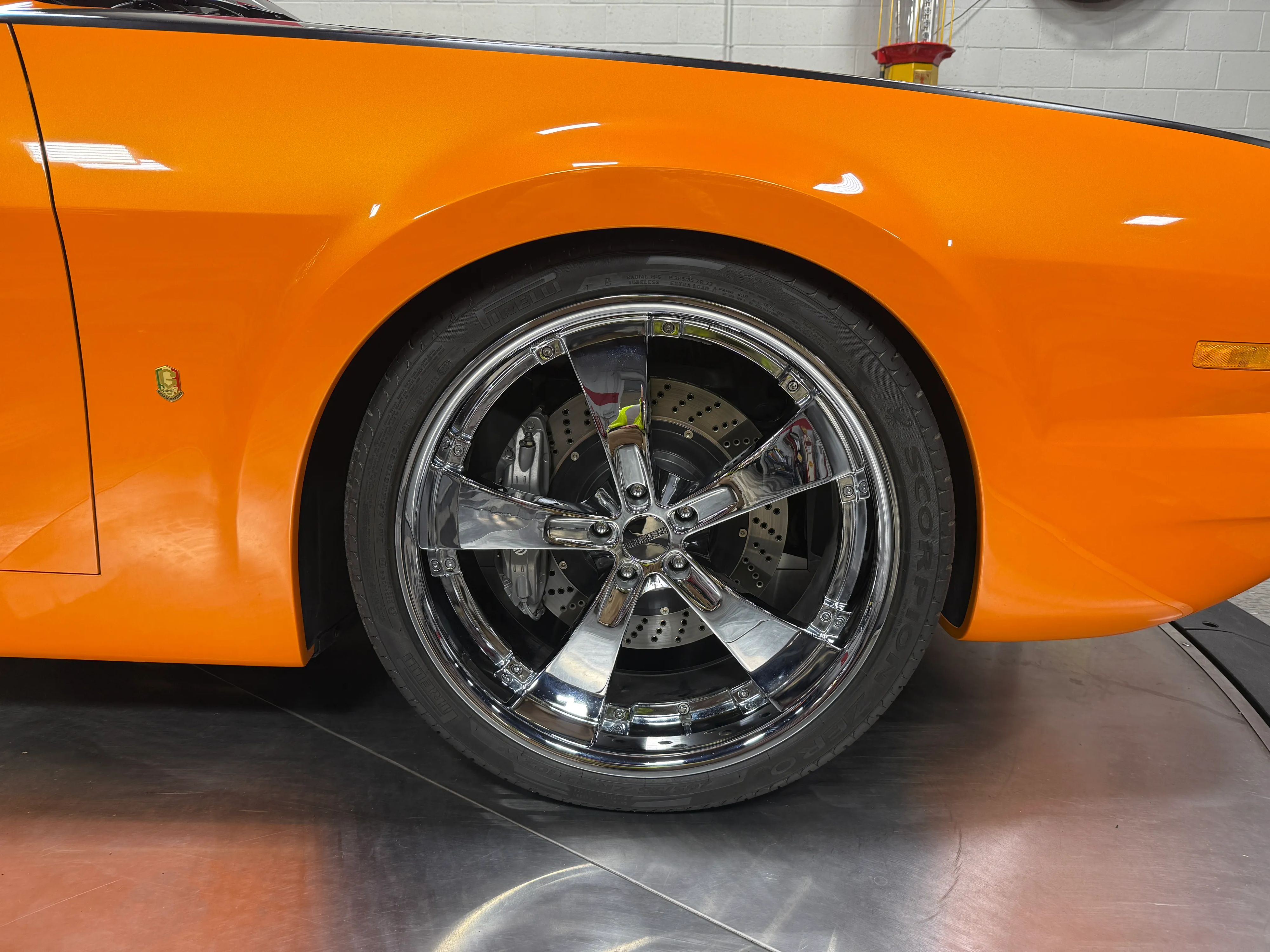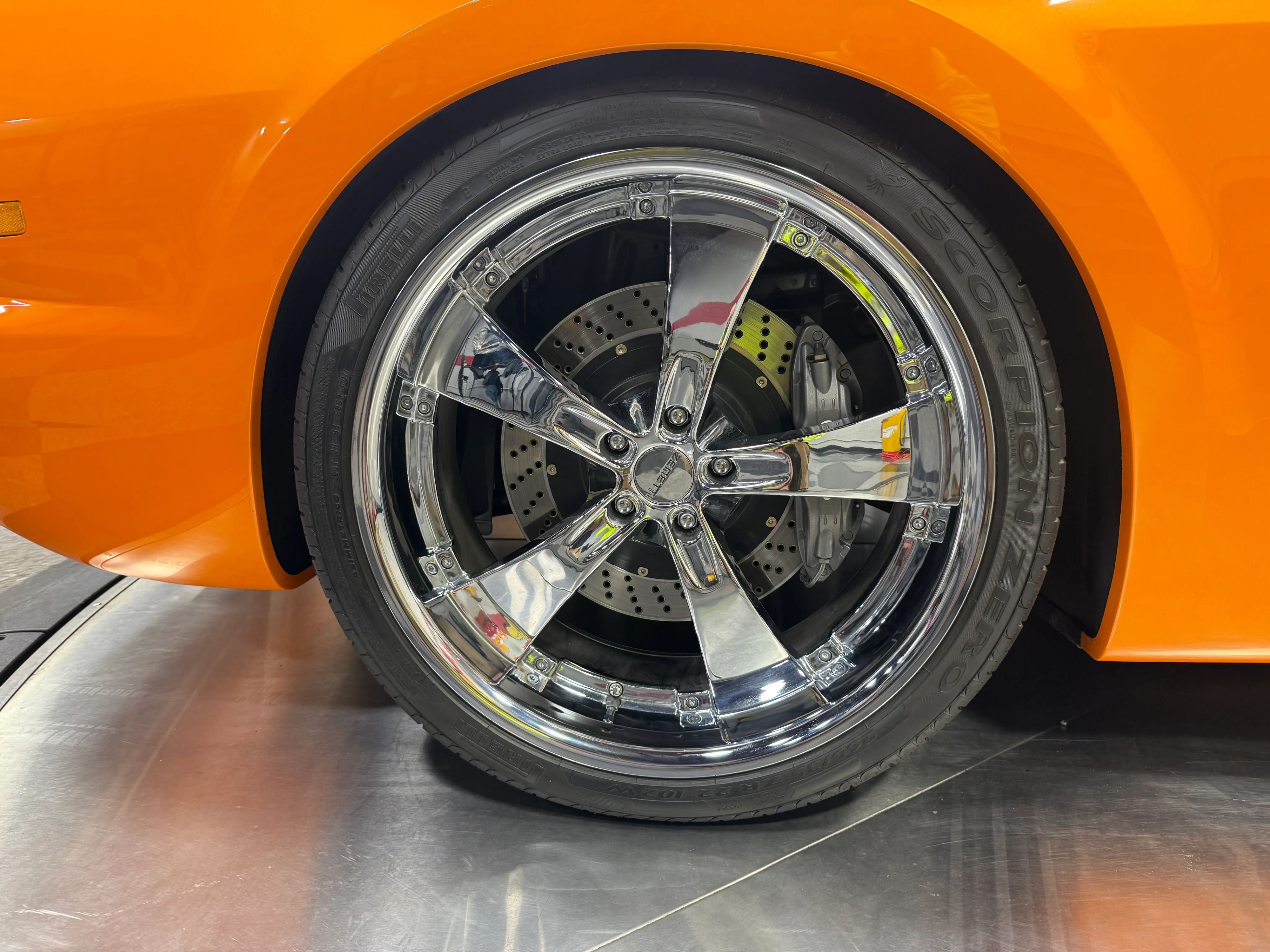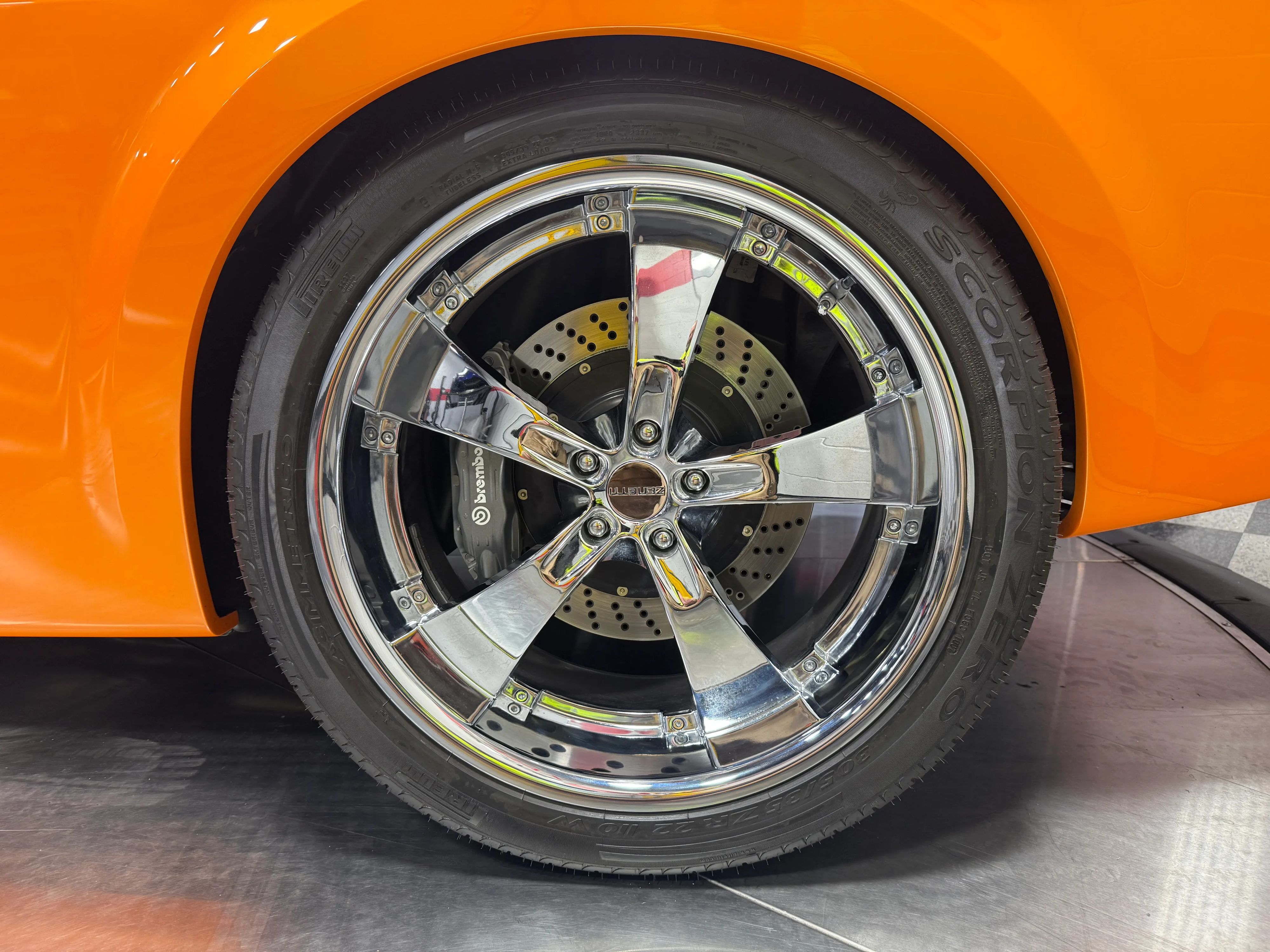 Built on the Charger SRT8 chassis and powered by its 6.1-liter HEMI V8 with AutoStick transmission, this unique creation combines contemporary drivability with unmistakable muscle car presence. The hand-formed carbon-fiber body is finished in Lamborghini Pearl Orange with exposed carbon accents on the hood, rear spoiler, and taillight panel. It features fully operational doors, hood, trunk, and DOT-approved glass, making it not only a showpiece but also a usable, street-ready machine.