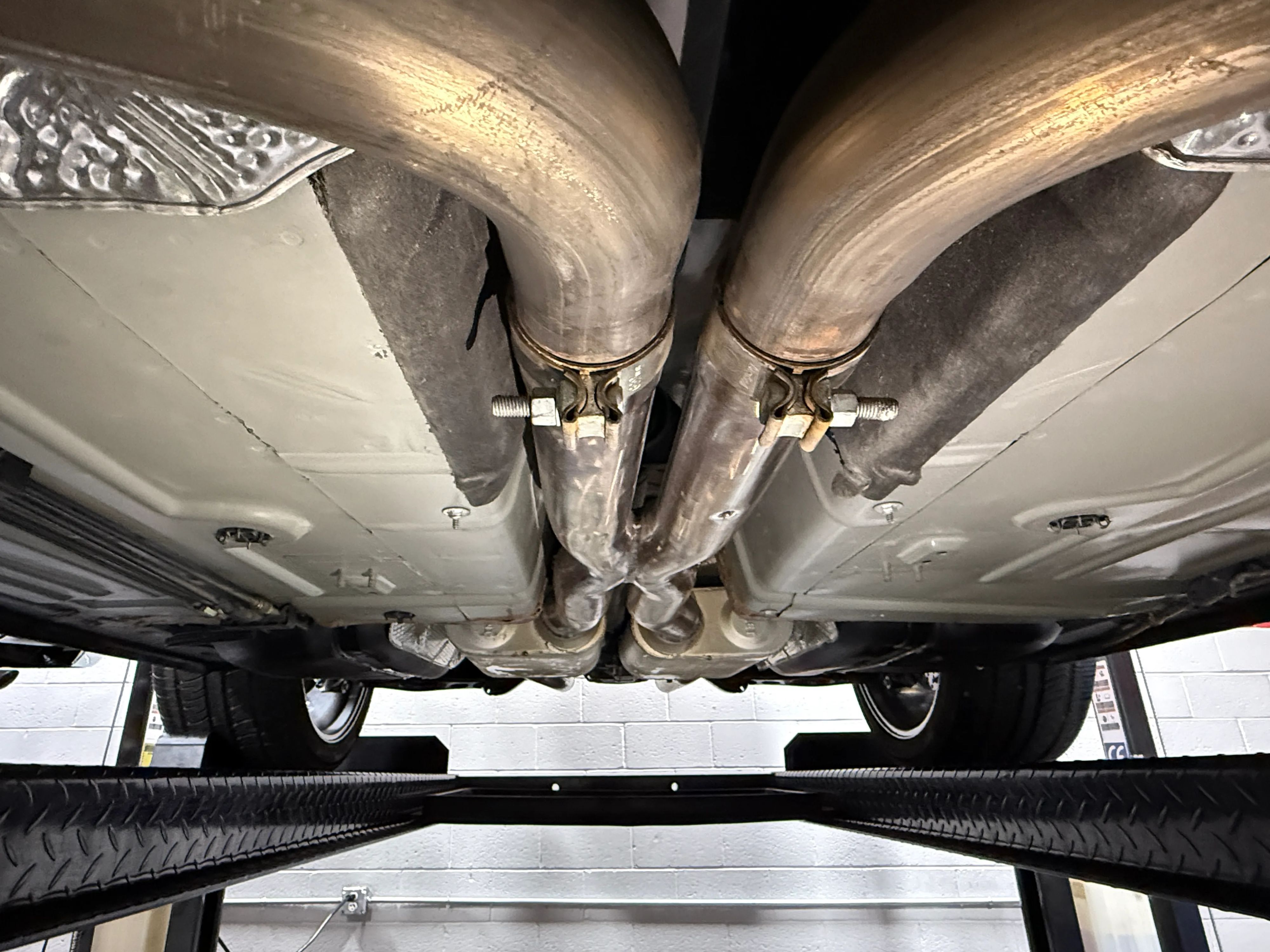 Functional Shaker-style hood scoop and Flowmaster dual exhaust system