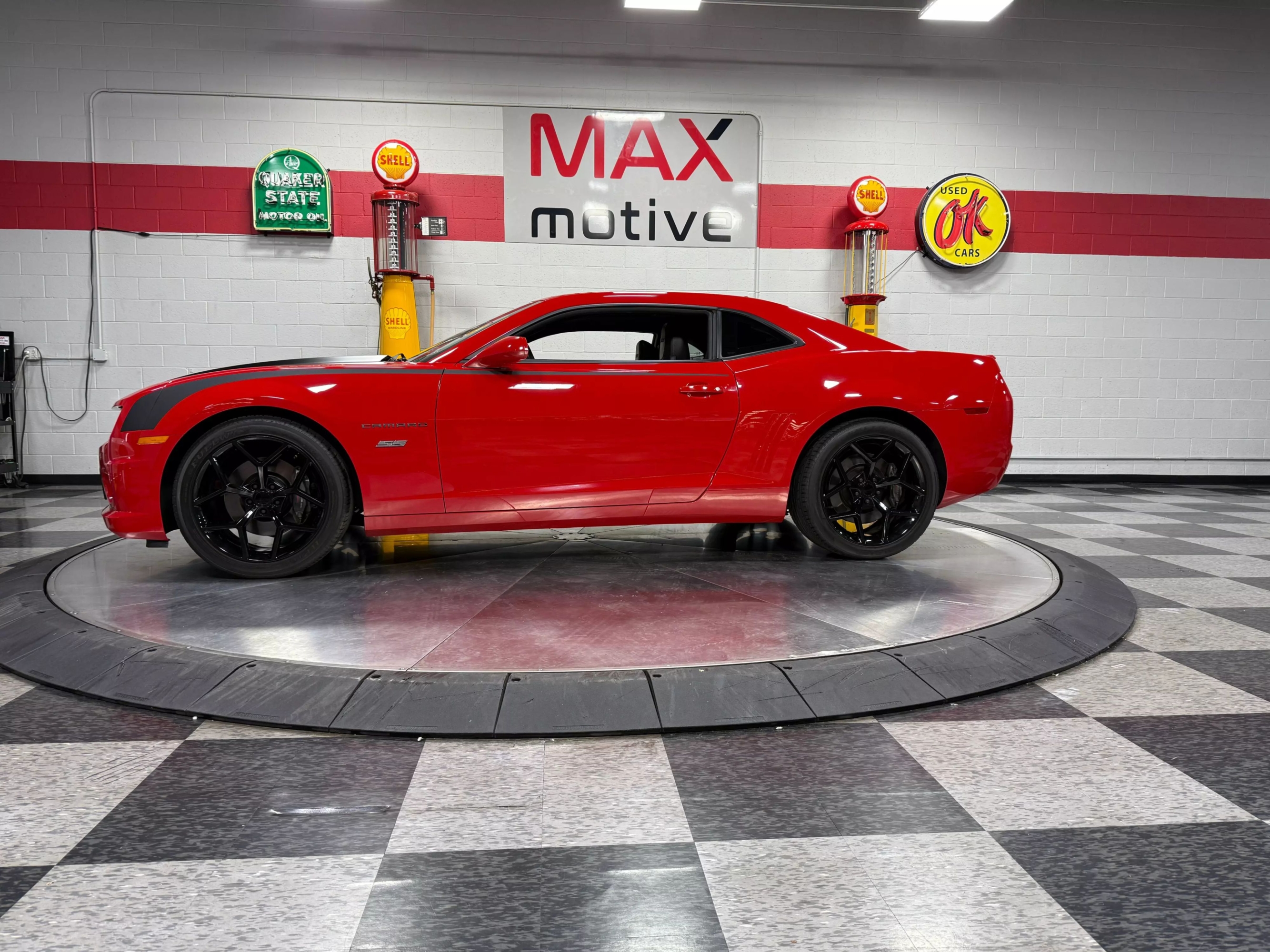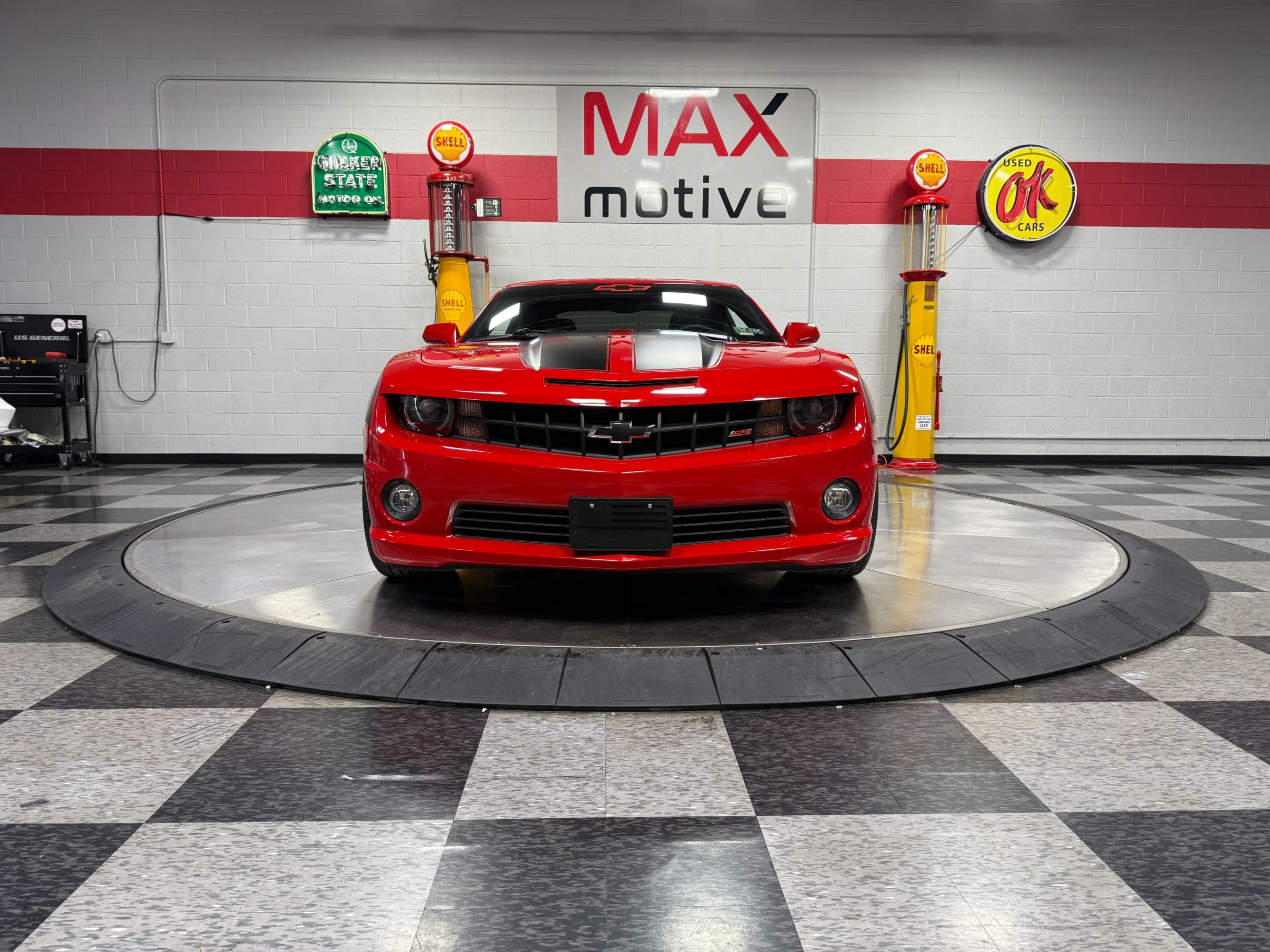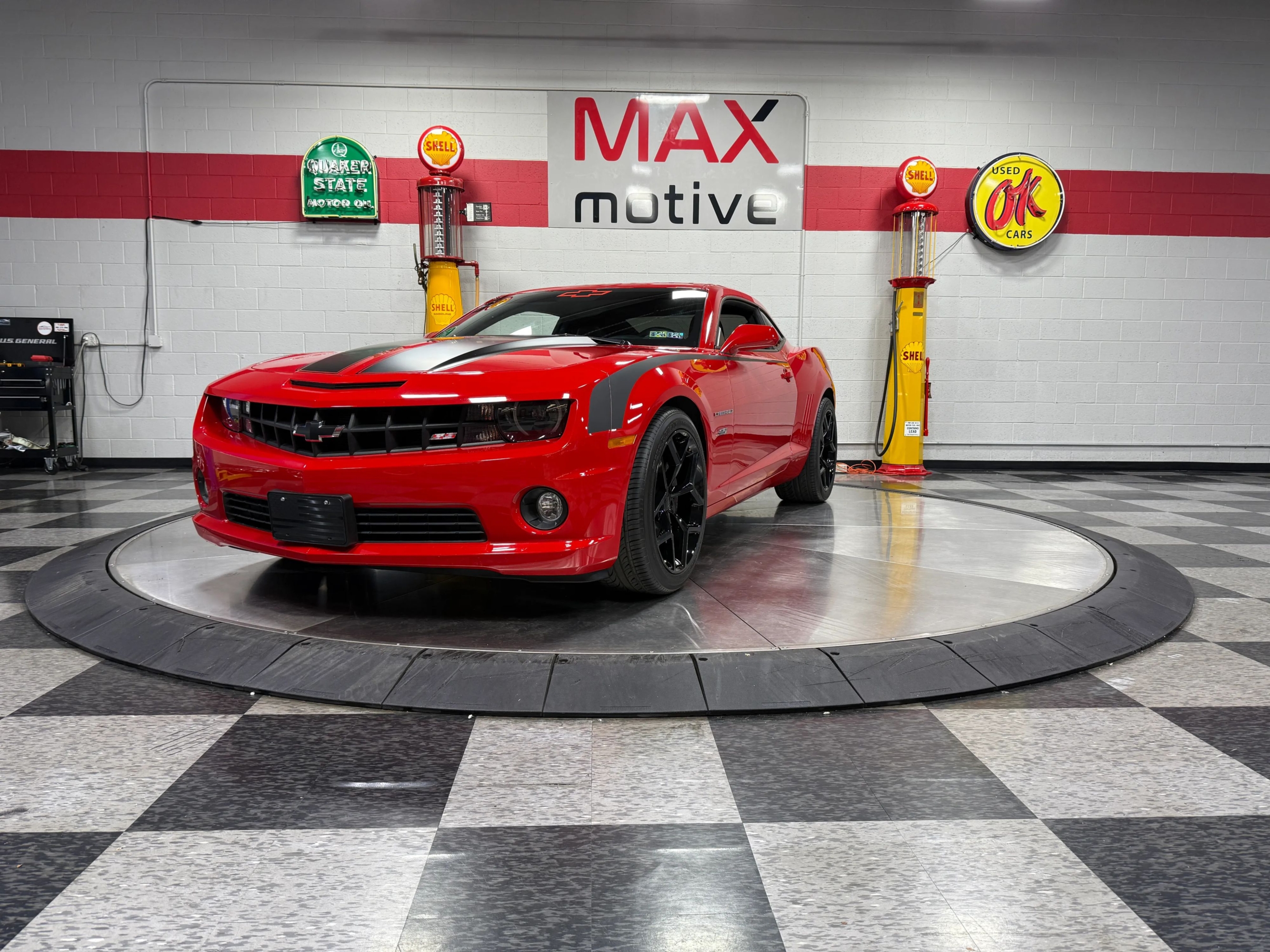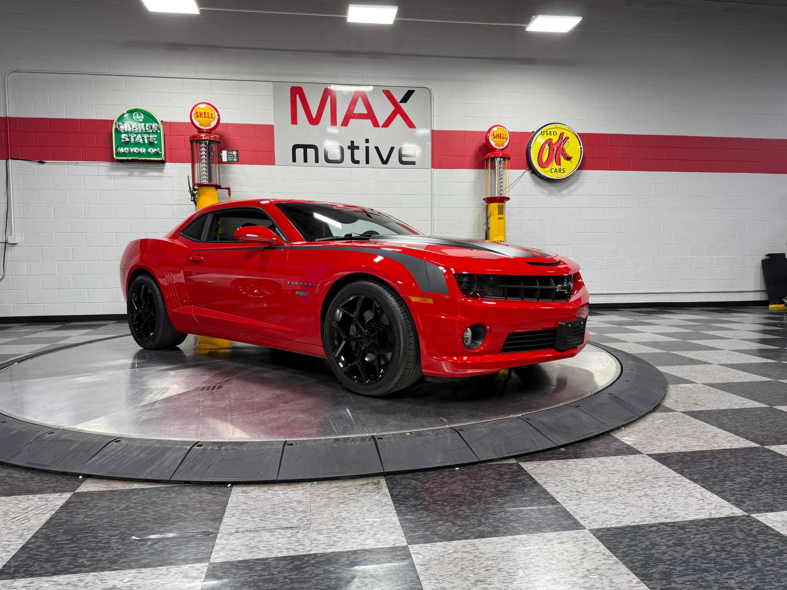 Maxmotive is proud to offer this 2010 Camaro 2SS car. This car was nicely optioned from the manufacturer in 2010. Vinyl decals nicely set off the stunning red paint on this Camaro. Factory options include leather seats, heated front seats, power sun roof, 3.45 rear differential, and cruise control. This Camaro was also treated to a nice handful of performance upgrades as well. Texas speed cam, aftermarket pushrods and valve springs, and a rear muffler delete really open this Camaro up. Dynotuned with receipts from Hutter Racing as well. Check out the engine sound, chop chop awesome! With the dyno tune, this Camaro is running efficiently and check engine light free. Black aftermarket 20 wheel and tires, with very low mileage on the tires adorn the Brembo brakes. Front tire size is 275/40/20, and the rear tires are 315/35/20. Please check more pictures at www.maxmotive.com