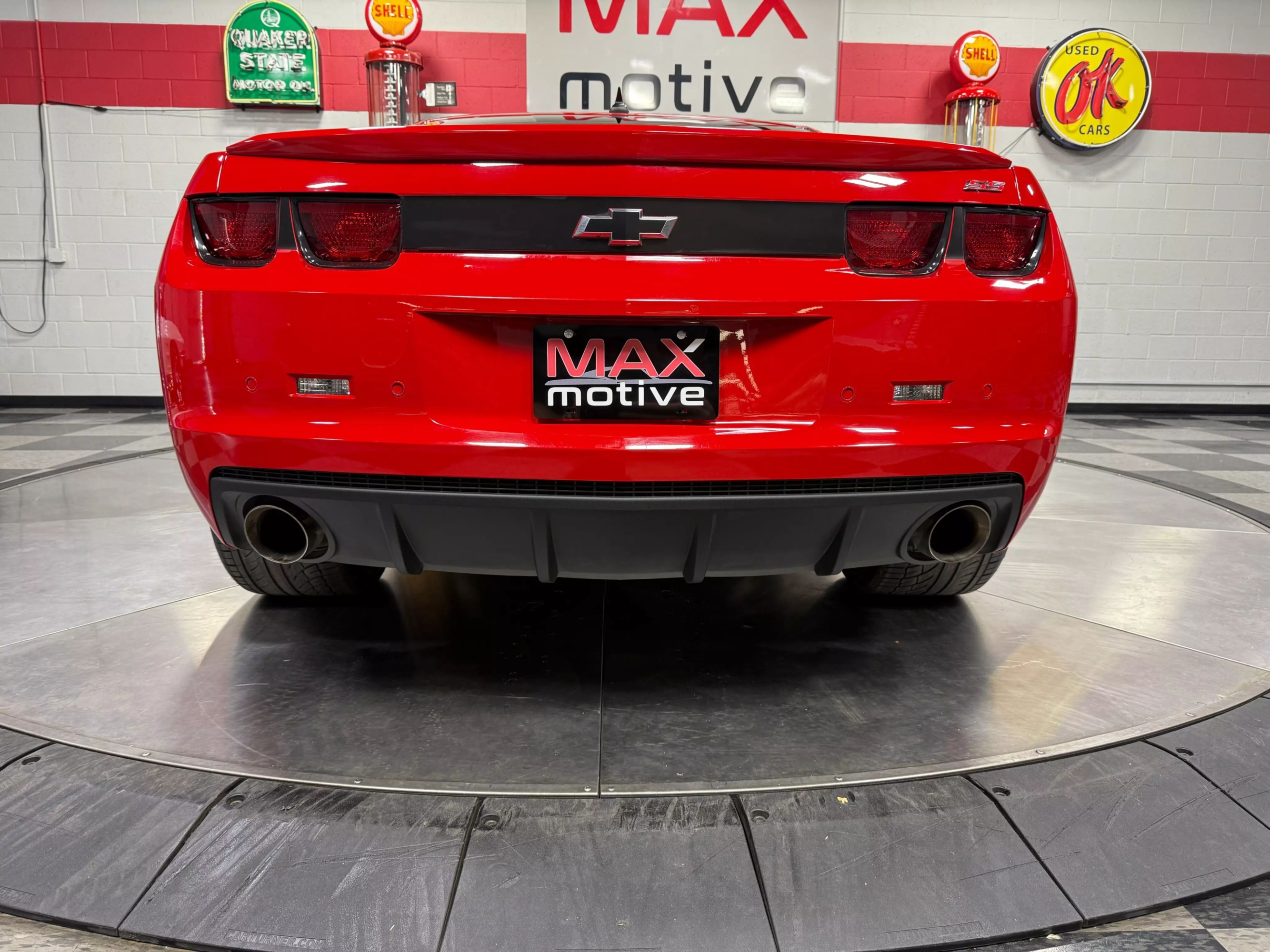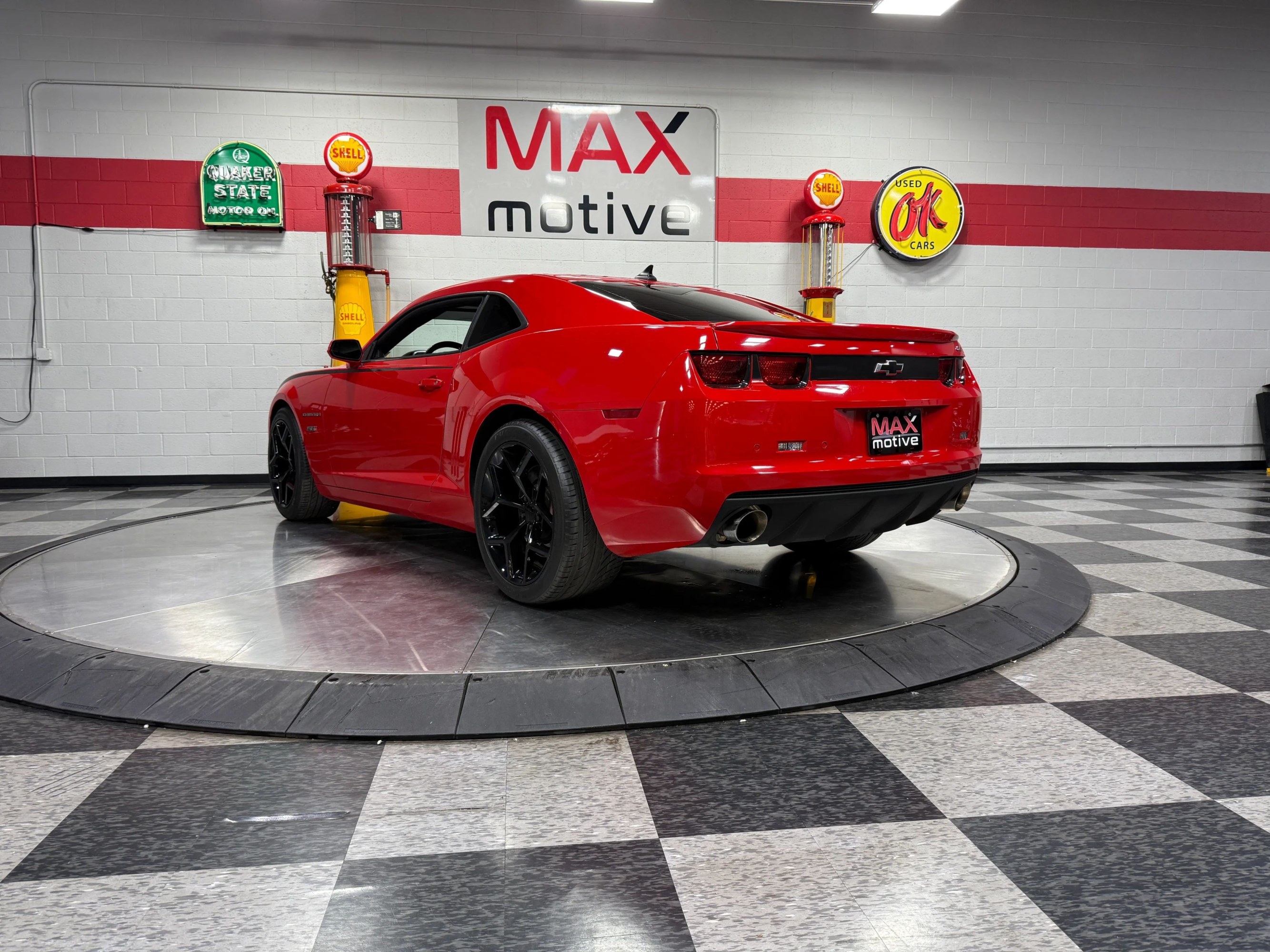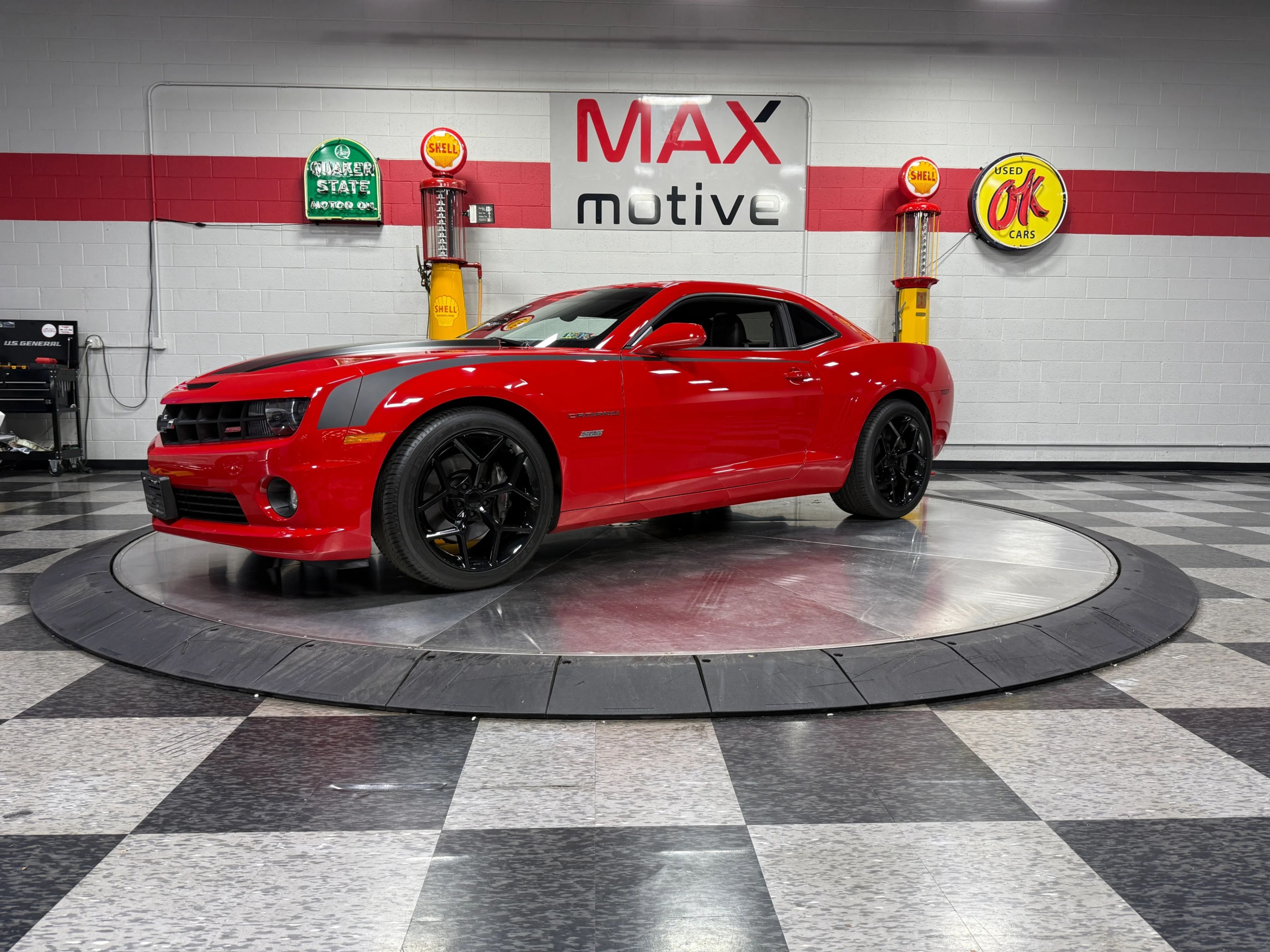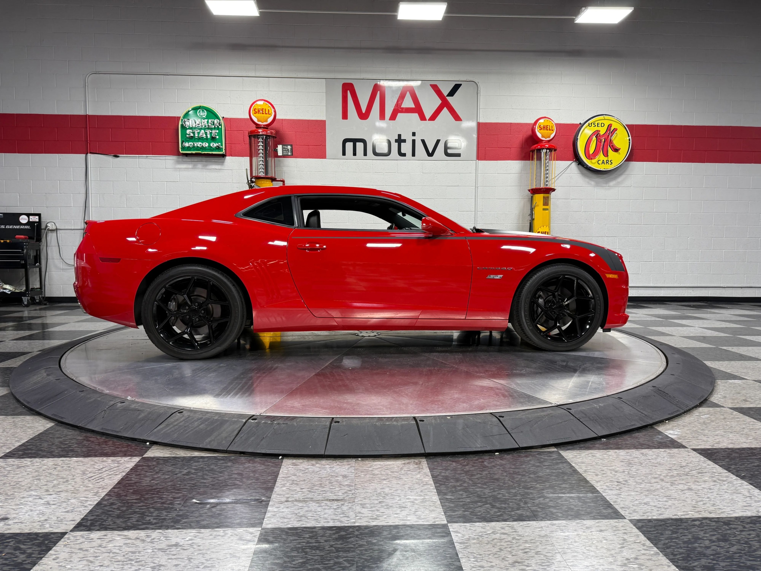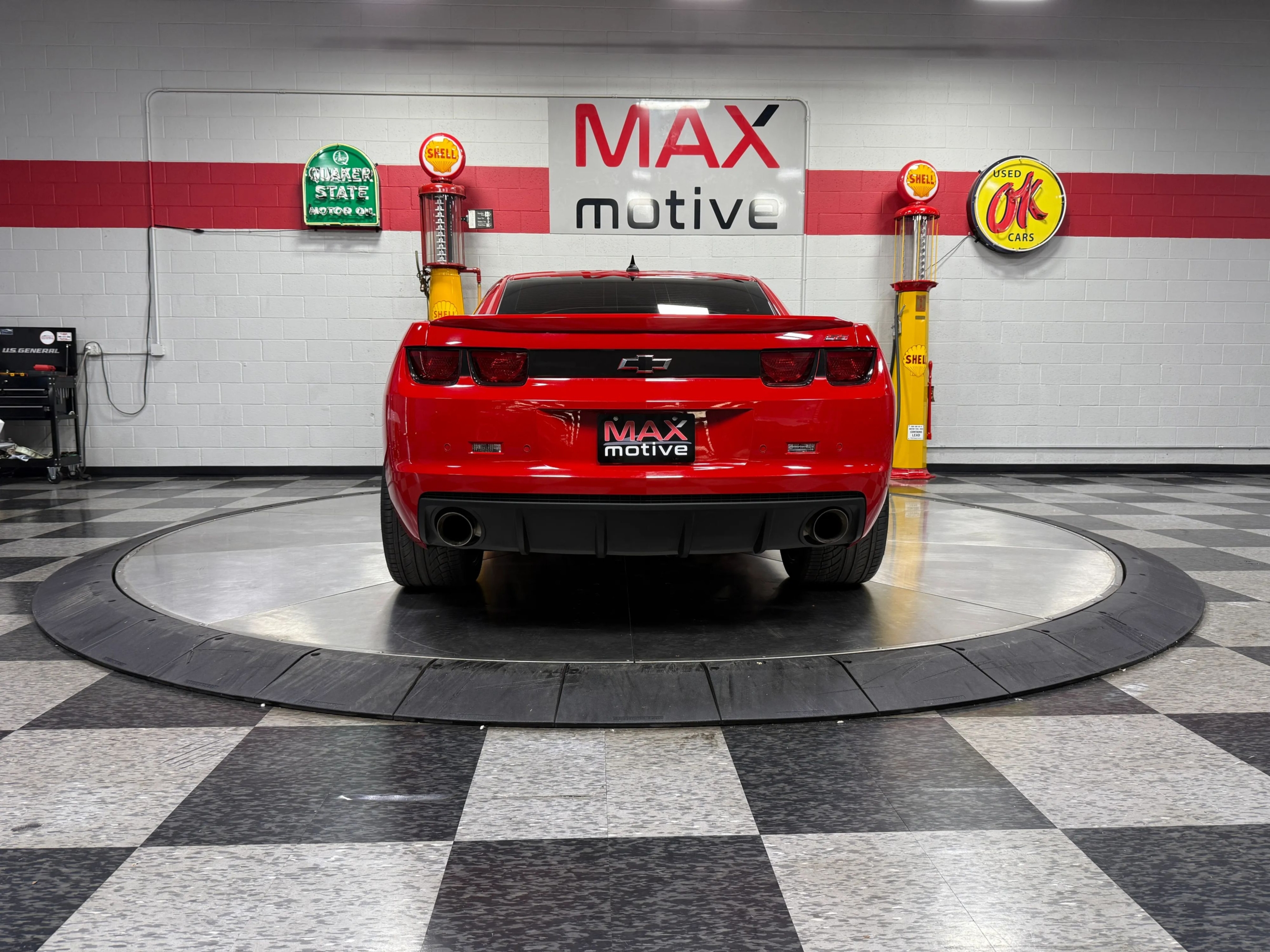 Maxmotive is proud to offer this 2010 Camaro 2SS car. This car was nicely optioned from the manufacturer in 2010. Vinyl decals nicely set off the stunning red paint on this Camaro. Factory options include leather seats, heated front seats, power sun roof, 3.45 rear differential, and cruise control. This Camaro was also treated to a nice handful of performance upgrades as well. Texas speed cam, aftermarket pushrods and valve springs, and a rear muffler delete really open this Camaro up. Dynotuned with receipts from Hutter Racing as well. Check out the engine sound, chop chop awesome! With the dyno tune, this Camaro is running efficiently and check engine light free. Black aftermarket 20 wheel and tires, with very low mileage on the tires adorn the Brembo brakes. Front tire size is 275/40/20, and the rear tires are 315/35/20. Please check more pictures at www.maxmotive.com