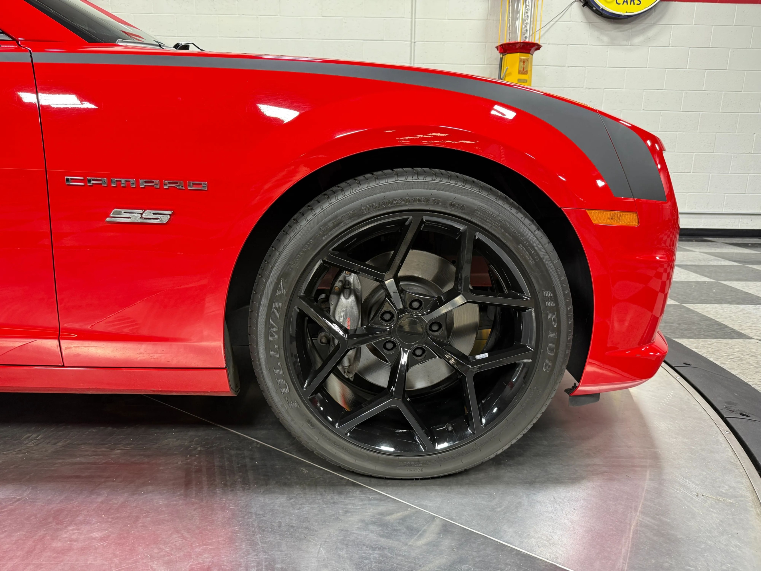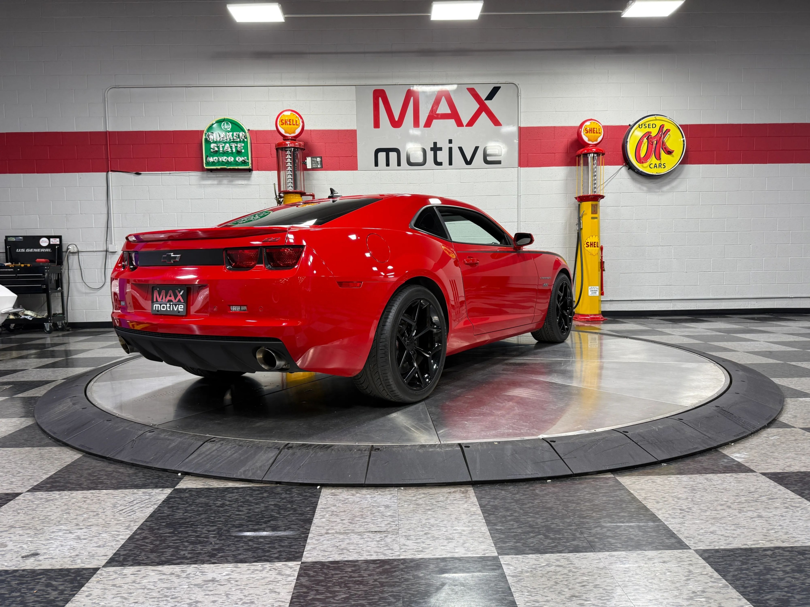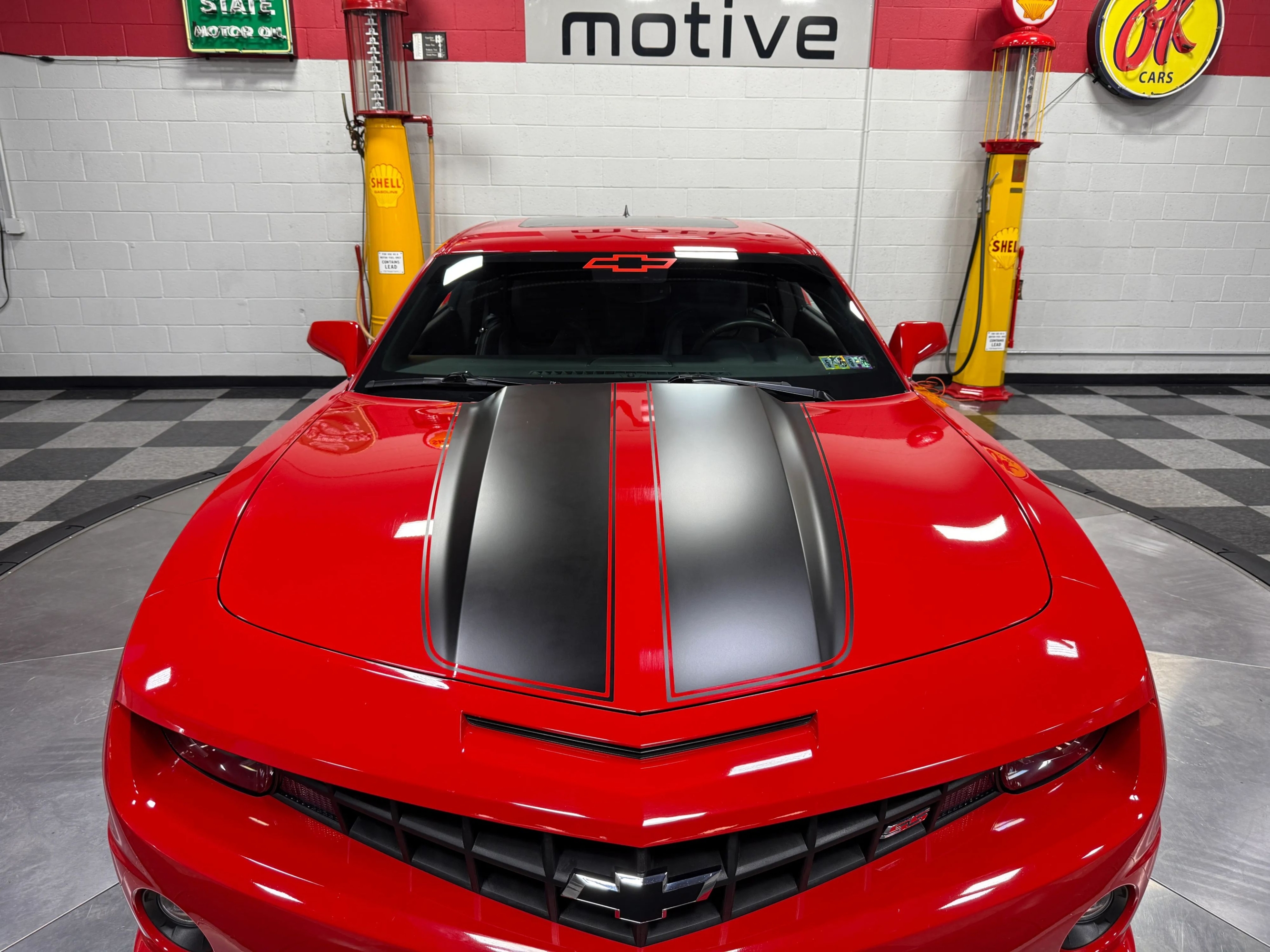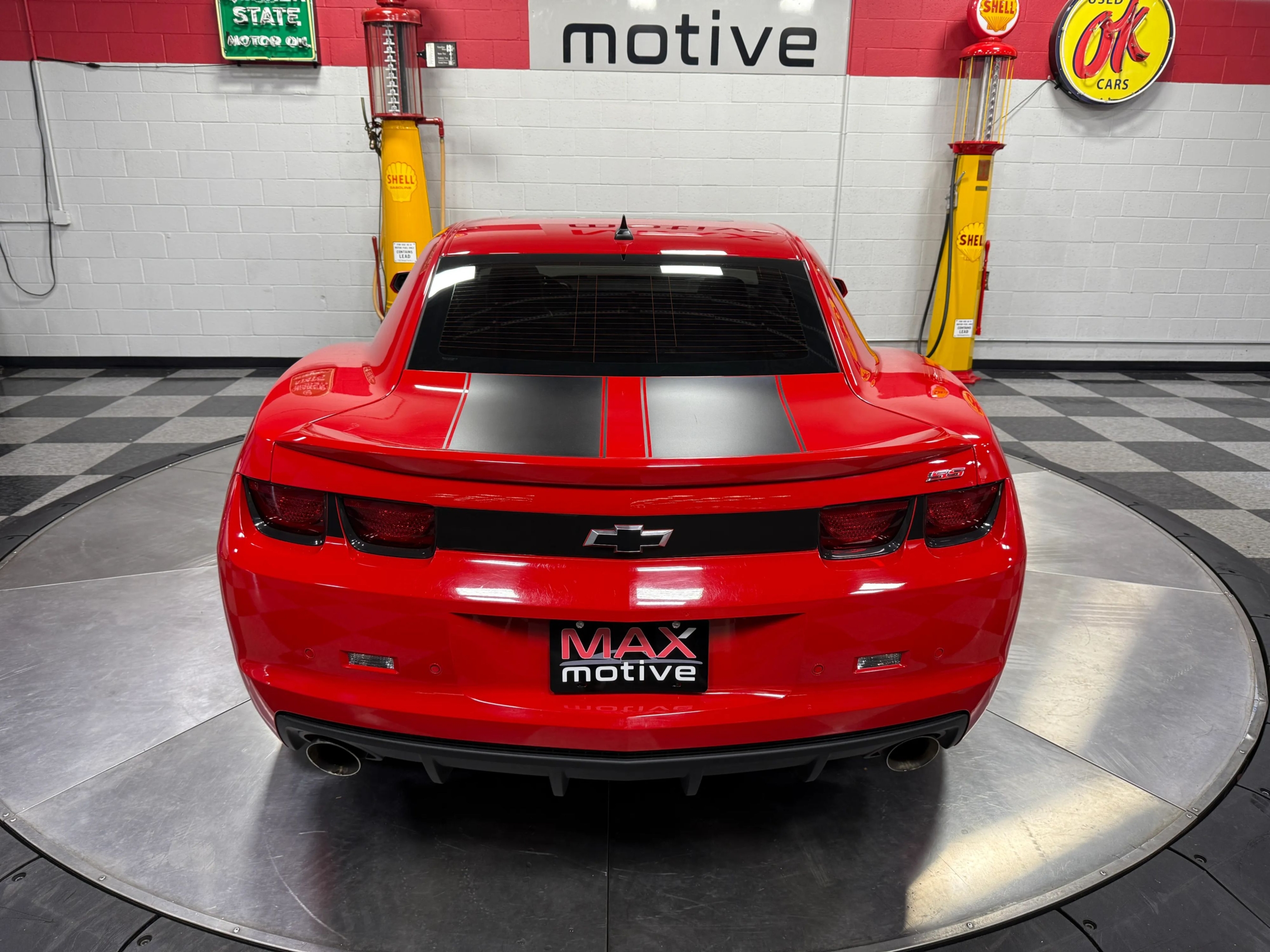 Maxmotive is proud to offer this 2010 Camaro 2SS car. This car was nicely optioned from the manufacturer in 2010. Vinyl decals nicely set off the stunning red paint on this Camaro. Factory options include leather seats, heated front seats, power sun roof, 3.45 rear differential, and cruise control. This Camaro was also treated to a nice handful of performance upgrades as well. Texas speed cam, aftermarket pushrods and valve springs, and a rear muffler delete really open this Camaro up. Dynotuned with receipts from Hutter Racing as well. Check out the engine sound, chop chop awesome! With the dyno tune, this Camaro is running efficiently and check engine light free. Black aftermarket 20 wheel and tires, with very low mileage on the tires adorn the Brembo brakes. Front tire size is 275/40/20, and the rear tires are 315/35/20. Please check more pictures at www.maxmotive.com