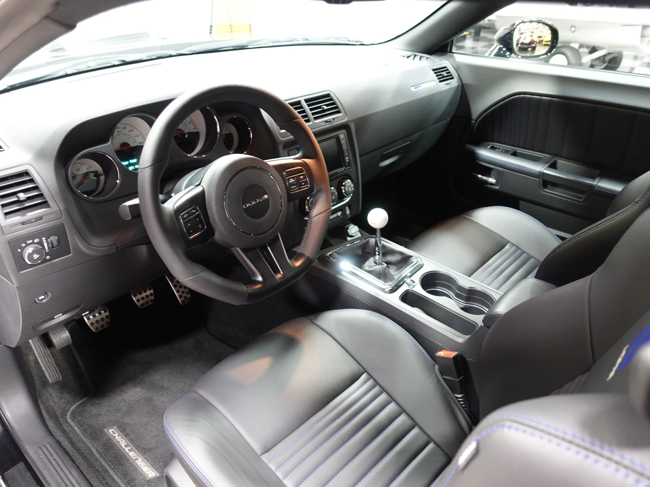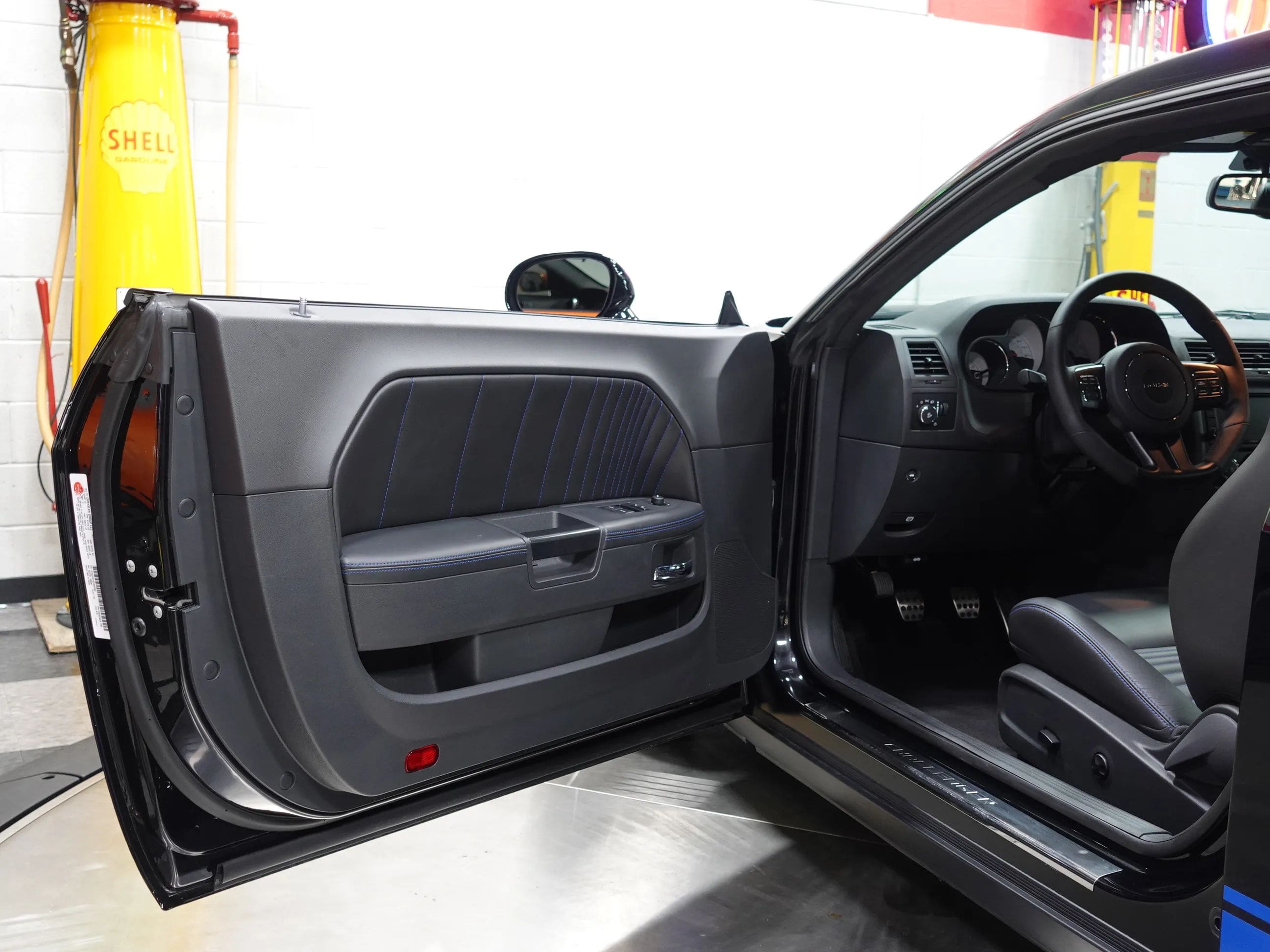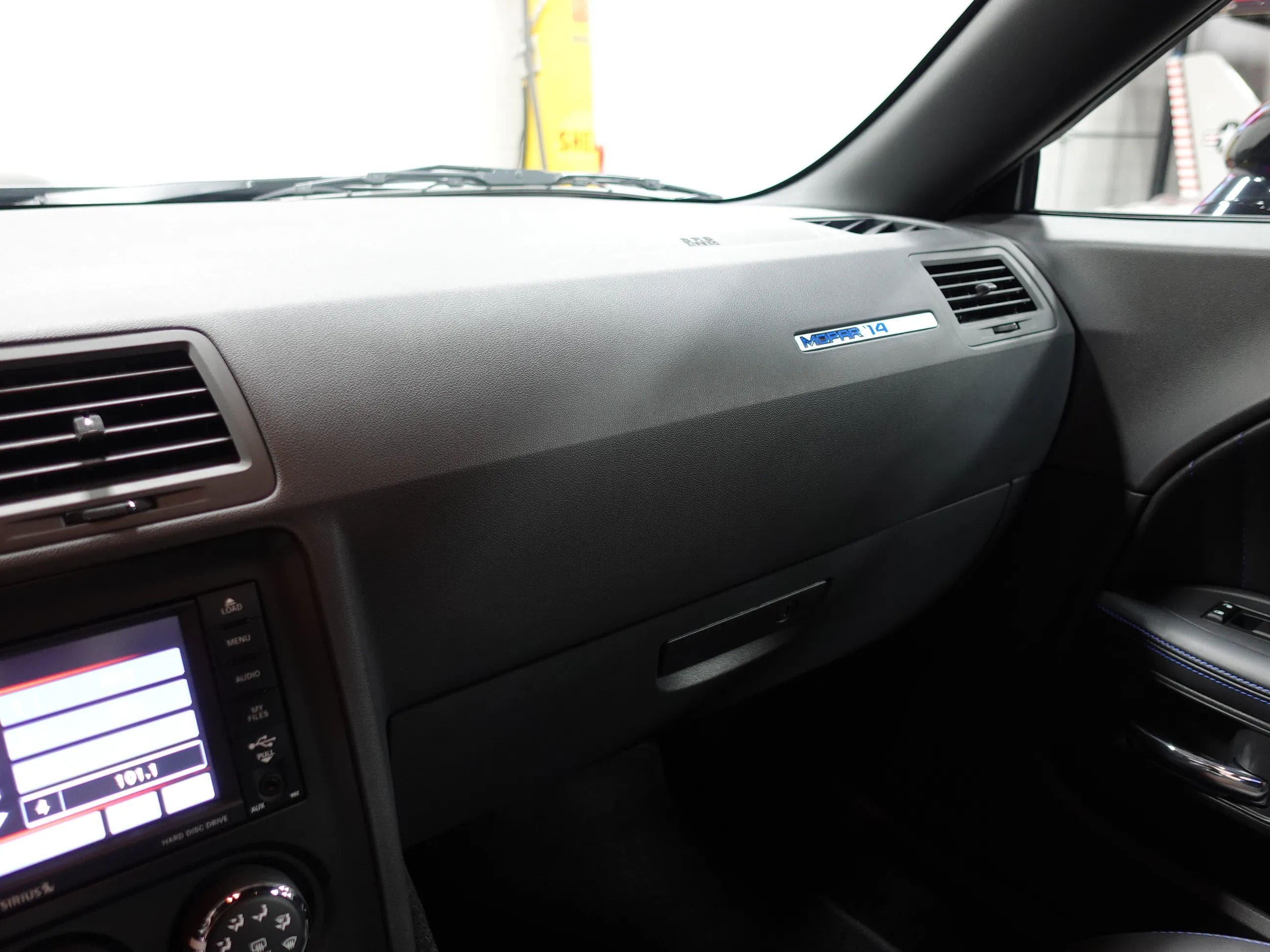The Mopar 14 is distinguished by a black vapor grille surround with vintage script Challenger badge, Mopar Blue rocker panel stripes, a matte black rear spoiler with gloss black Mopar Design badge, Mopar Performance fender badges, and gloss black 20×8 5-spoke wheels. The inviting interior offers premium heated 6-way power seats with Mopar Blue accent stitching and embroidered Mopar logo and the Mopar interior bezel kit. This is a comfortable car as well, featuring Automatic Climate Control, all power accessories, touchscreen media center, and the astounding 900 watt, 19-speaker Harman/Kardon GreenEdge Technology audio system with 2 trunk mounted subwoofers. An interior appearance group provides door sill guards and luxury floor mats with embroidered logos. It comes with the original Owners Package including the Owners Information DVD. One of the most limited of all limited editions with just 100 units produced, this one is extra special as car number 14 in the Mopar 14 Limited Edition series. Please be sure to see the detailed photos at www.maxmotive.com.