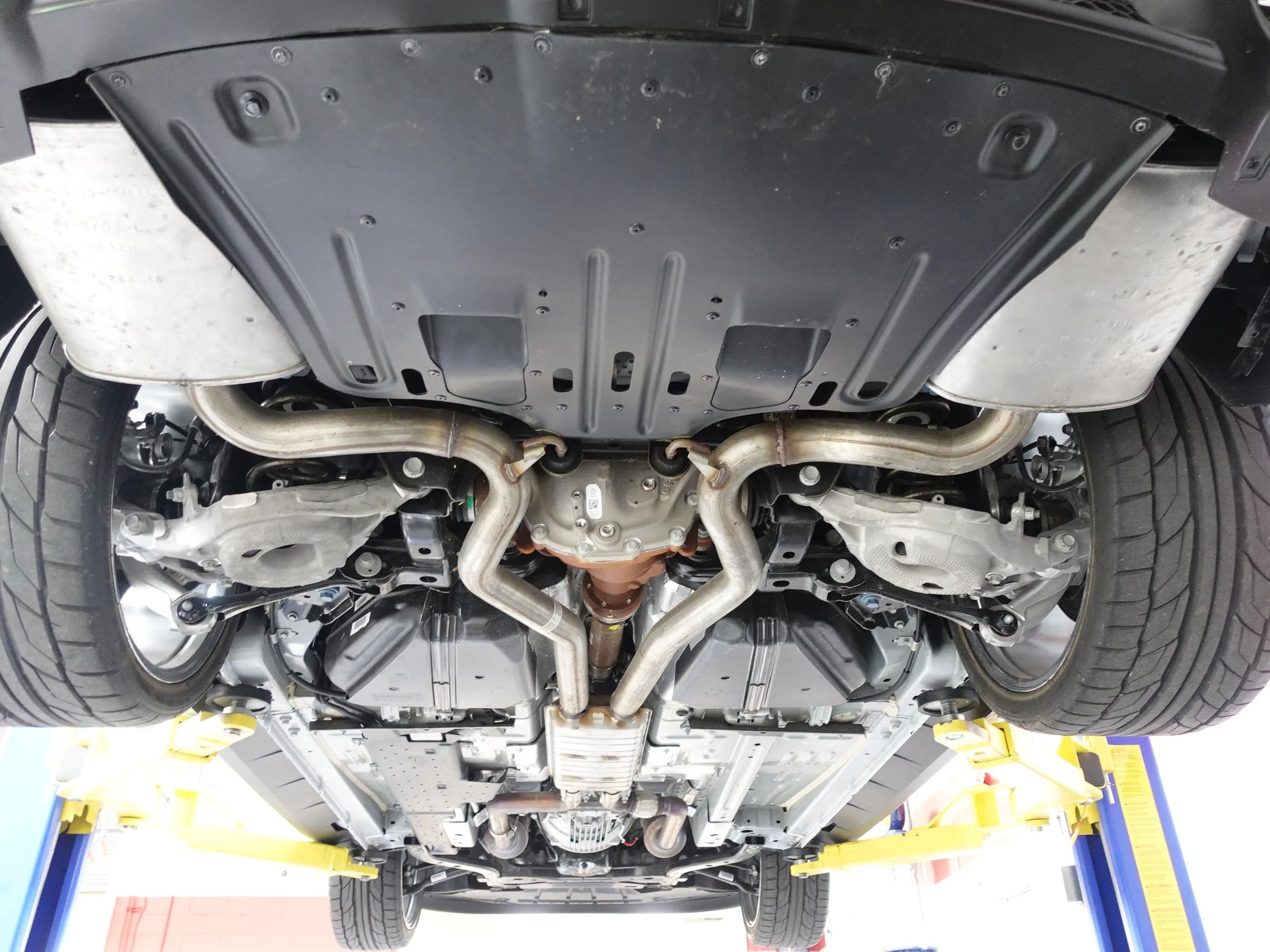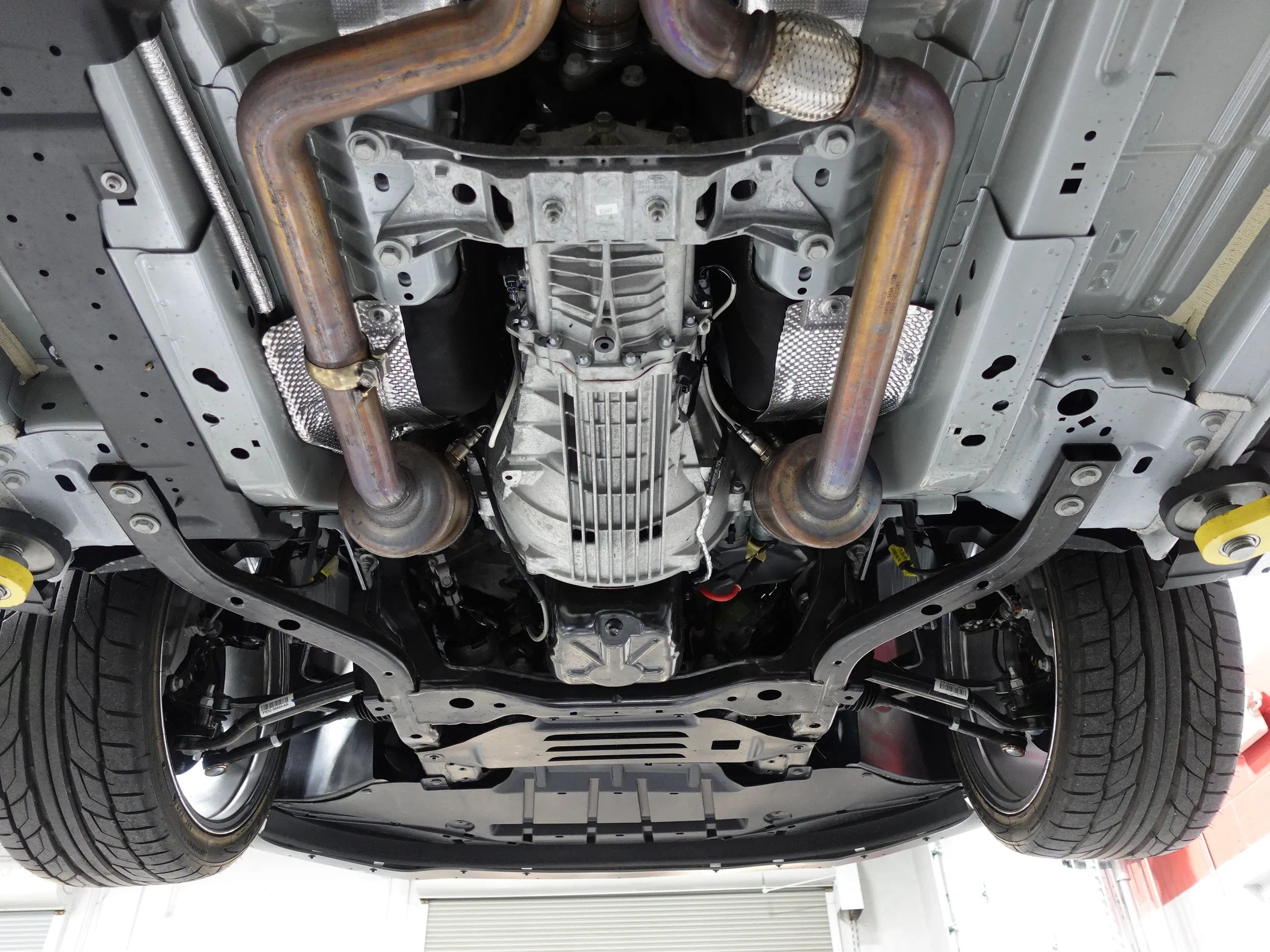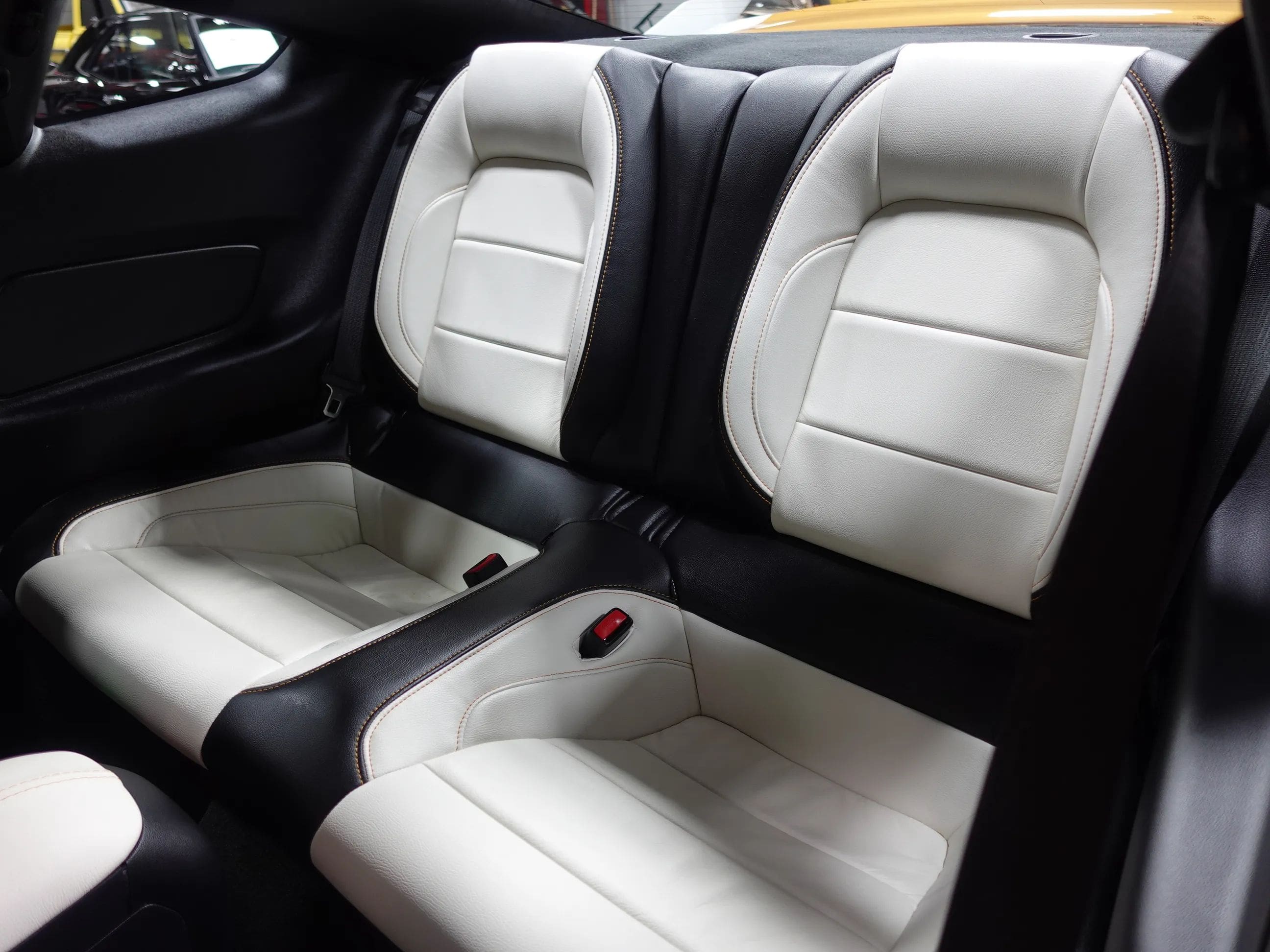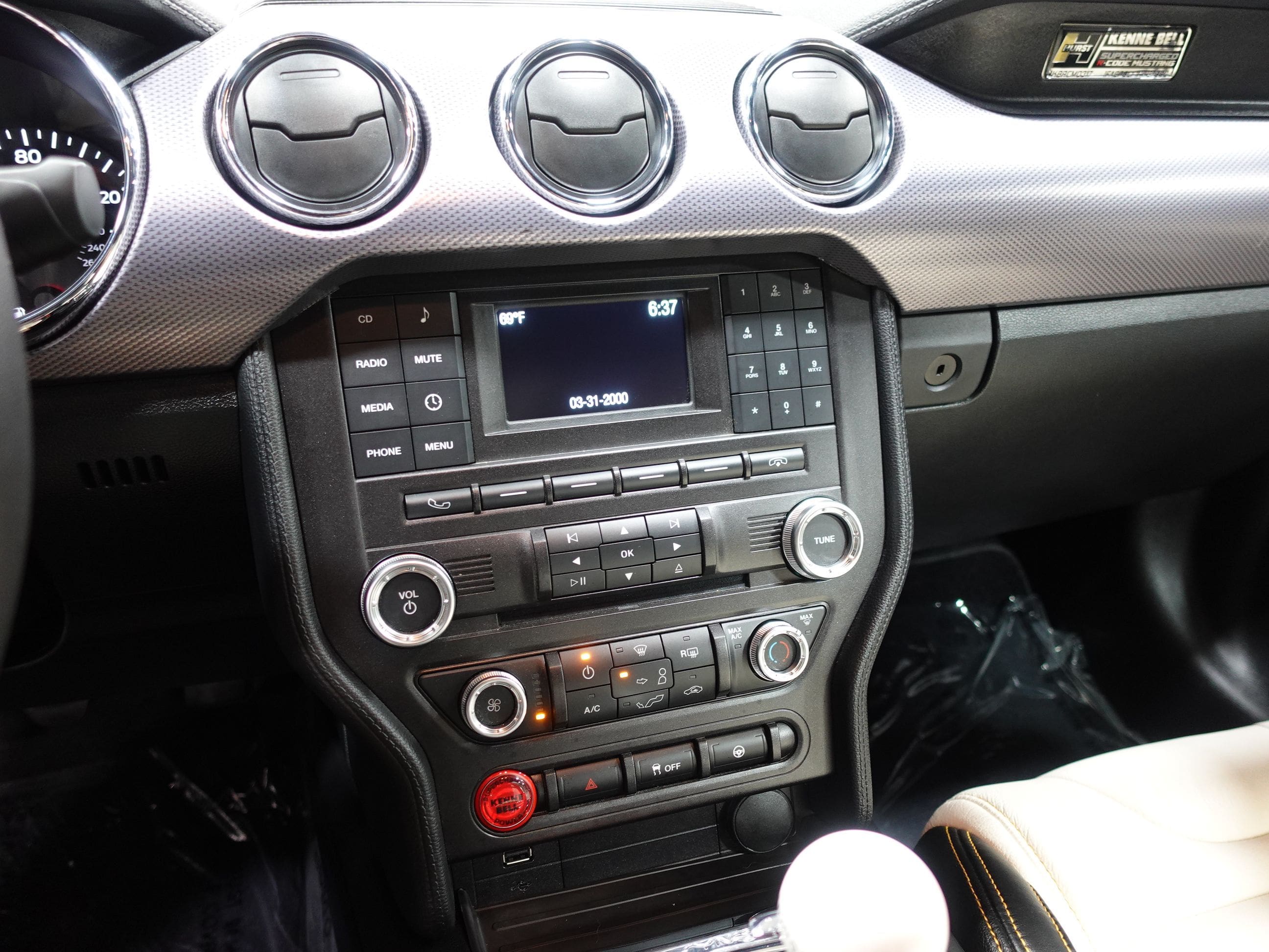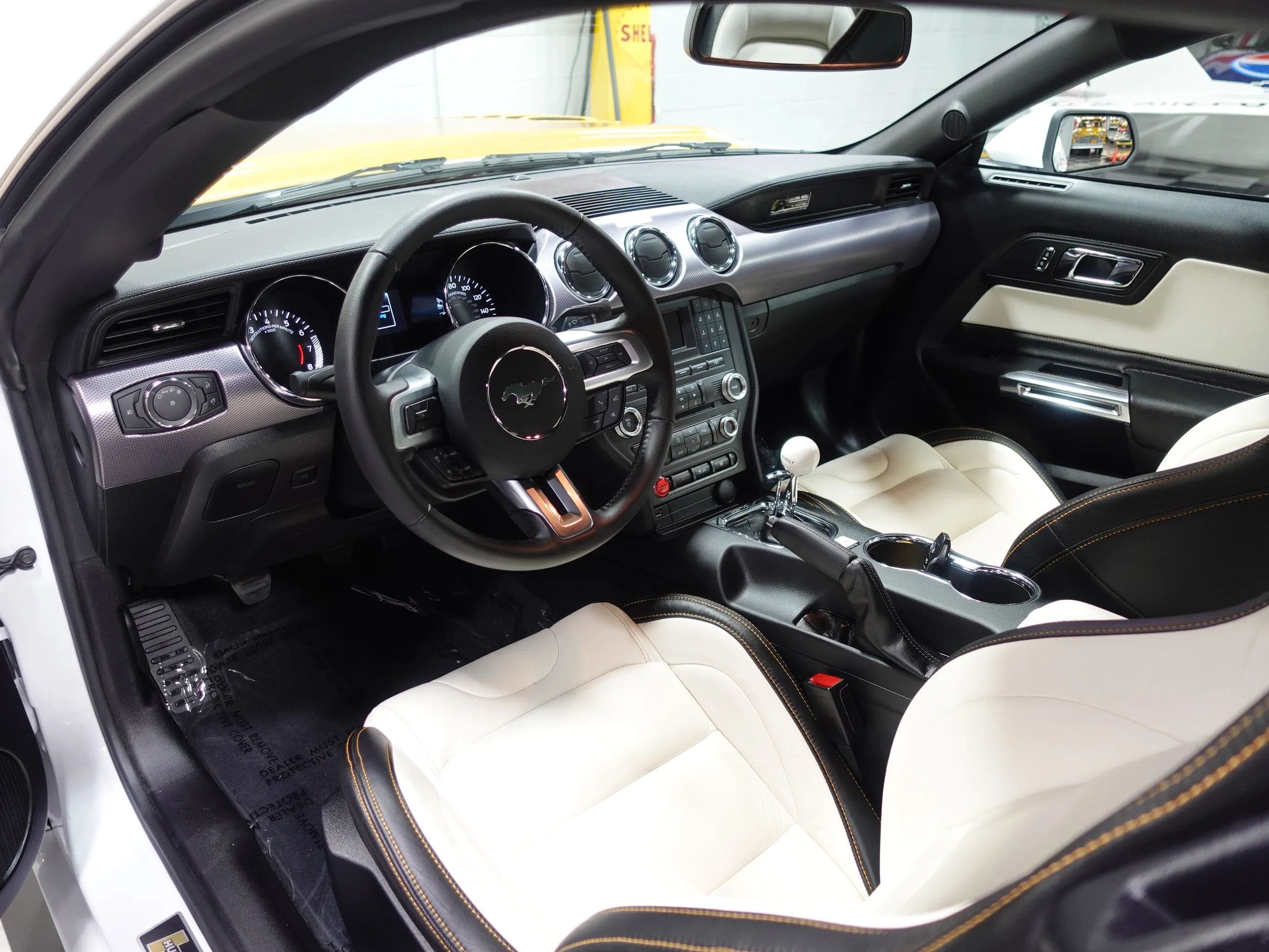 Naturally, there has to be a Hurst shifter, so in classic style a Hurst Competition Plus unit complete with a reverse lock-out and trademark white ball is installed. Hurst components by Flowmaster help the engine breathe with a 3-inch stainless cat-back dual exhaust system with crossover pipe and dual quad 4-inch stainless double wall tips finished with the Hurst logo. Aesthetically, the car is simply stunning with its Oxford White and Hurst Gold color scheme. The gold paint has just the right amount of metallic sparkle to it. Custom Hurst badging and logos are found throughout the car including a serialized dash plaque with the cars unique serial number.