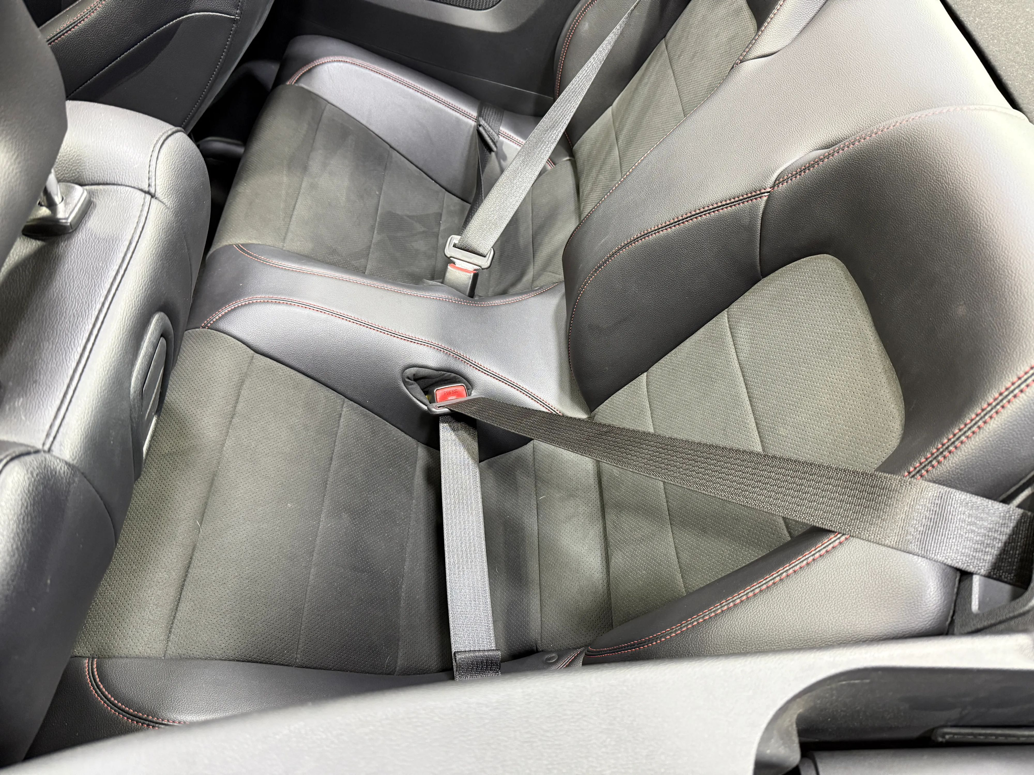 Suede inserts, Red stitching