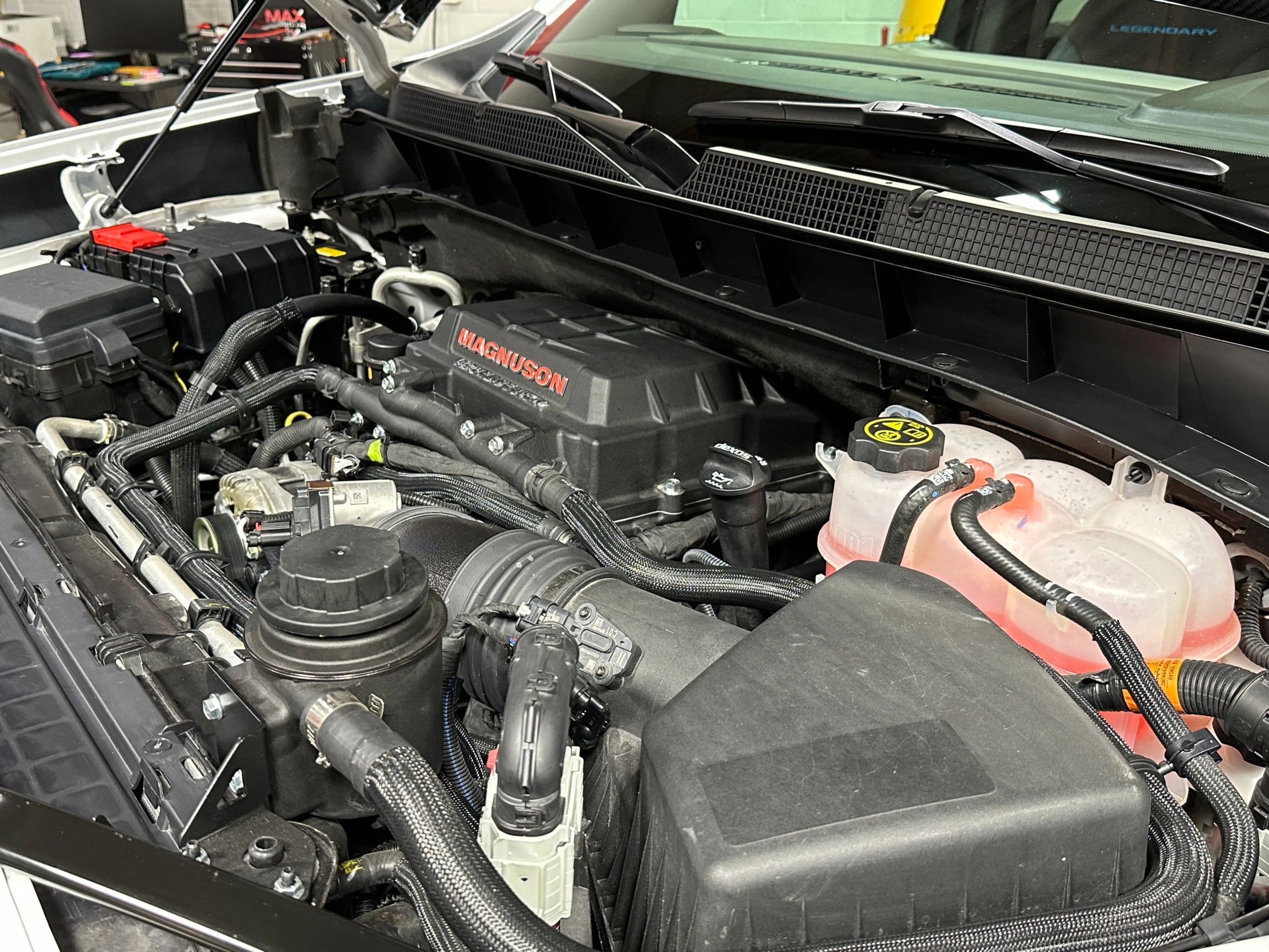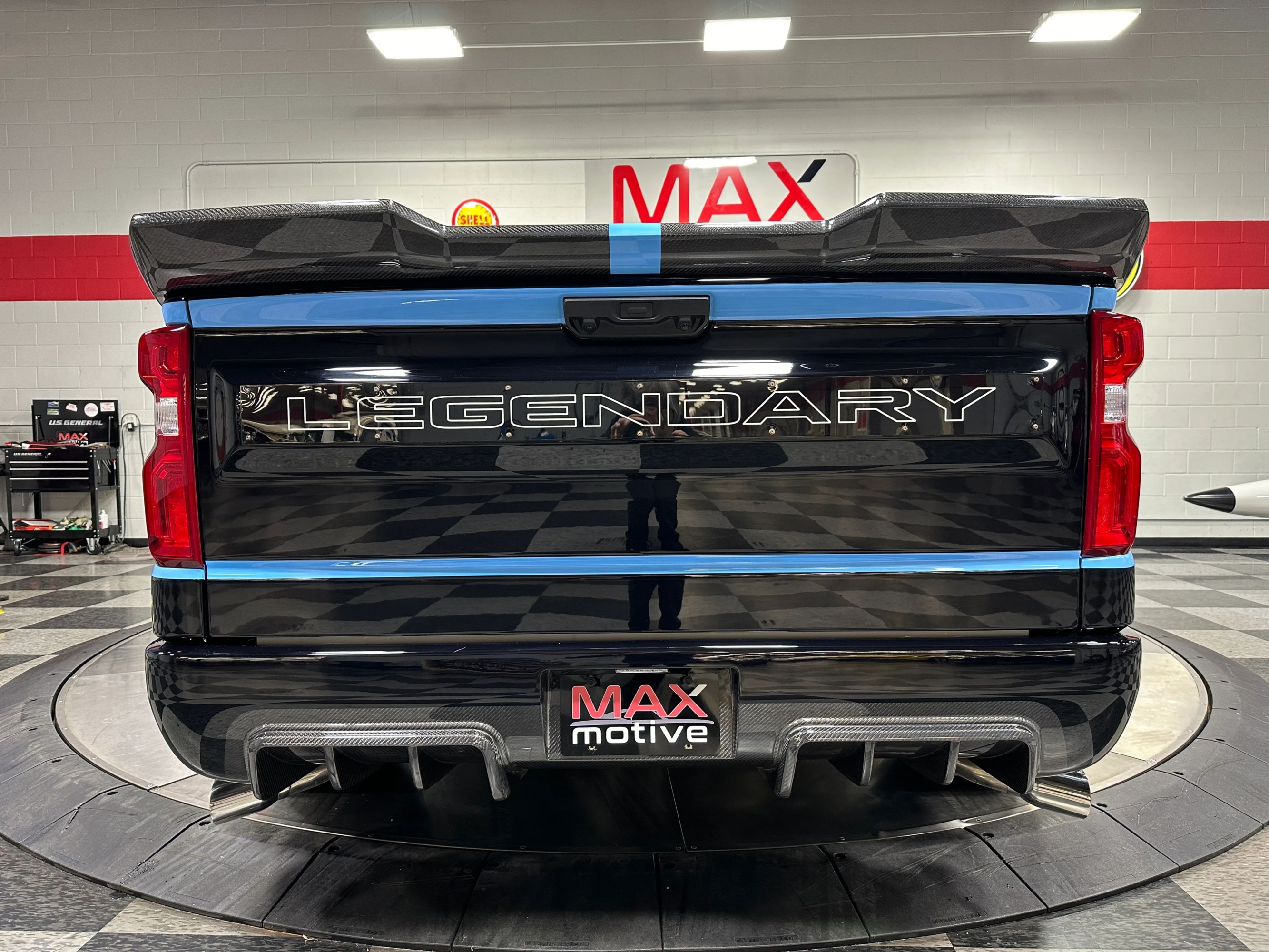 Here is #001, the first 2023 Chevrolet Silverado 1500 Crew Cab RST 4WD Legendary Edition Custom Pickup, exclusively offered by MaxMotive. Beneath the custom carbon fiber hood is a 6.2L Lingenfelter Performance Engineering masterpiece. Induction is handled by a Magnuson TVS 2560 supercharger. Lingenfelter added their GT 35 cam and Dual Valve Spring Kit. The highly refined combination is capable of a robust 707 horsepower. Power is transmitted through a 10-speed automatic to an electronically controlled four-wheel drive system.
