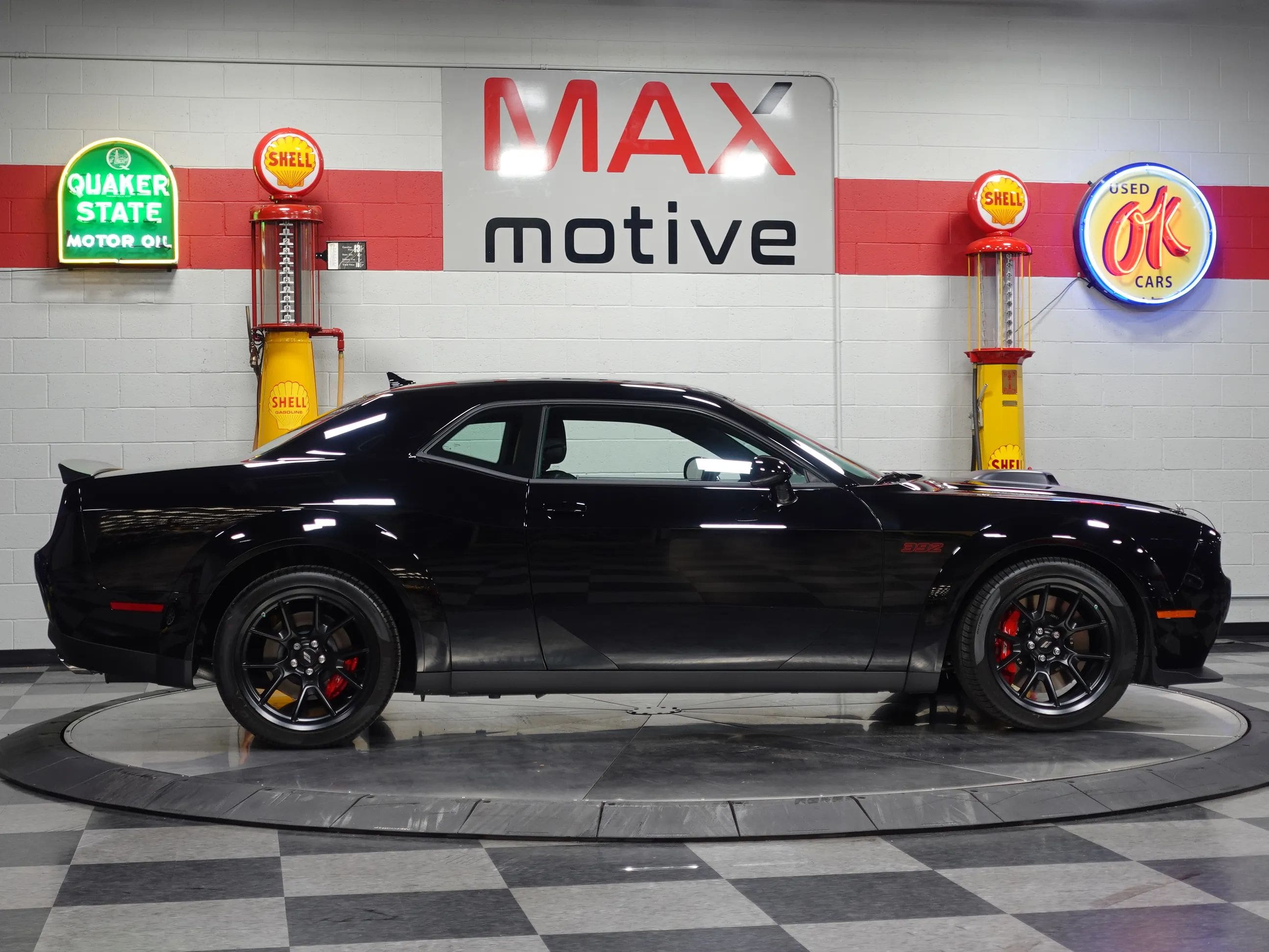 The first of the long-anticipated Last Call Editions, this 2023 Dodge Challenger Shakedown R/T Scat Pack Widebody is now available from the MaxMotive Pittsburgh Showroom. Its long name denotes its long list of exciting features, trim enhancements, and performance hardware. Only 500 of these were built and were allocated only to the countrys top dealership. The 392 SRT Hemi V8 engine generates a stout 475 horsepower and sends it through a 6-speed TREMEC manual transmission. Already powerful acceleration is enhanced with such technology as Launch Control, Launch Assist, Performance Shift Indicator, and a Line Lock. The SRT group also contributed the SRT Configurable Drive Modes and Performance Pages. The Widebody package allows the performance and appearance benefits of large 305/35ZR20 Pirelli ultra-performance tires at all four corners. Unique Shakedown striping with red accents augment the rich Pitch Black exterior paint. Meantime, luxurious appointments coddle you in comfort such as the beautiful Carbon/Suede interior package, heated and ventilated front seats, heated steering wheel, and a power tilt/telescope column. The custom Shakedown callouts and ID serve to emphasize that this 2023 Dodge Challenger Shakedown R/T Scat Pack Widebody truly is a special, well-equipped automobile. Please see the detailed photos and videos at www.maxmotive.com.