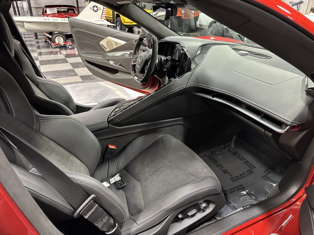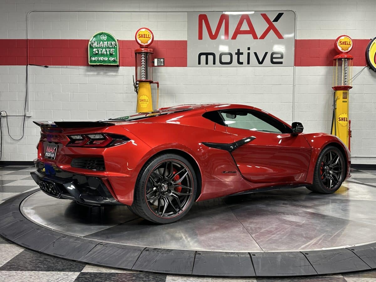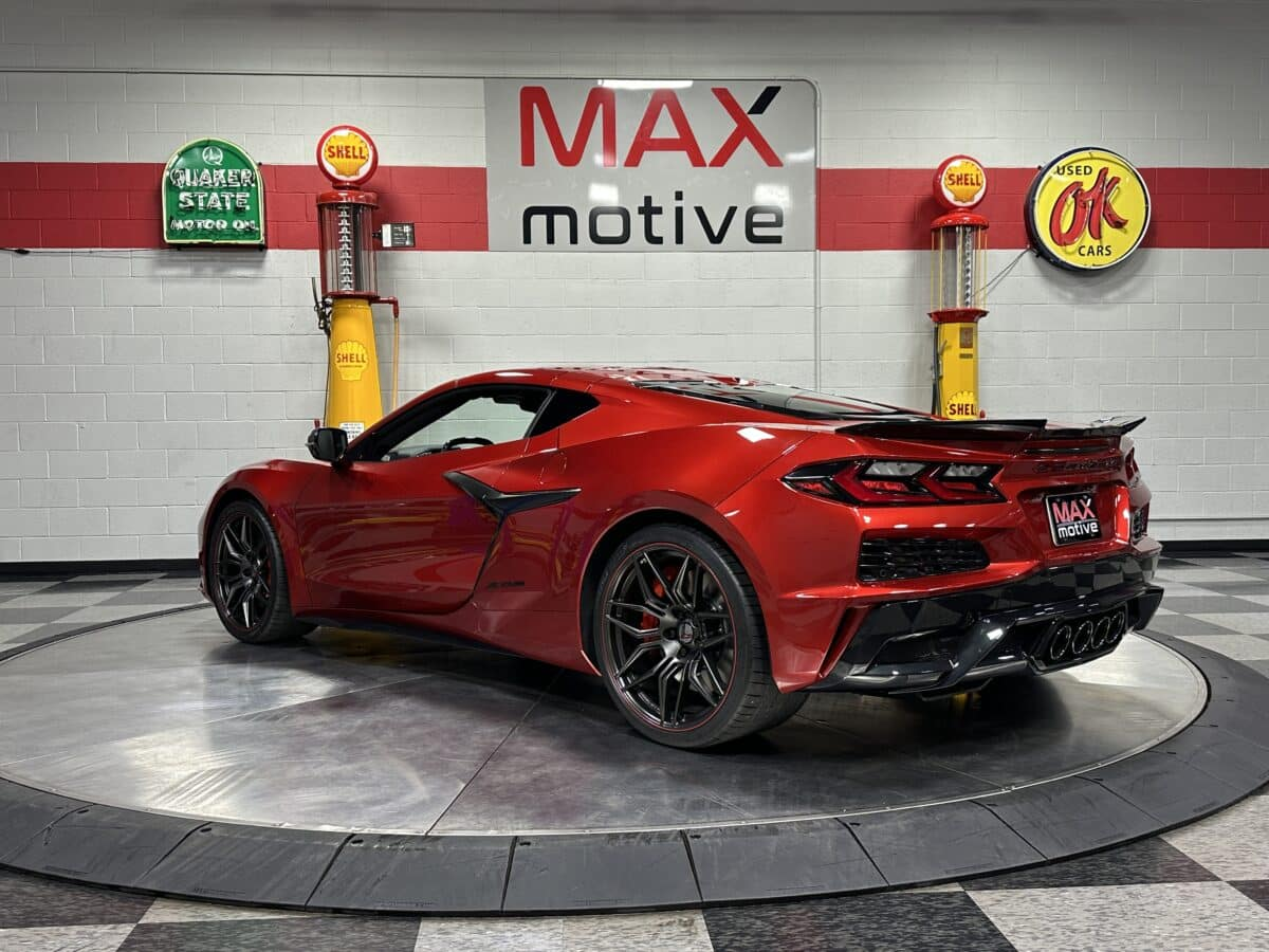 MaxMotive proudly presents America’s Sports Car taken to the Max, the 2025 Chevrolet Corvette Z06 Coupe 3LZ. This amazing automobile combines performance, luxury, and technology to create a truly world-class entry in the two-seat sports car field. The 5.5L flat-plane DOHC V8 is the most powerful naturally aspirated engine in a production vehicle, producing 670 horsepower. The factory technician’s signature appears right on top. The 8-speed dual clutch automatic transmission offers manual shifting and programmable driving modes. Inside, the carbon fiber trimmed interior features the Chevrolet Infotainment 3 Premium System with Google capability, touchscreen, Bluetooth, wireless Android Auto and wireless Apple Carplay capability through a Bose Performance Series 14 speaker audio system. Comfort and convenience abounds with dual zone air conditioning, heated and ventilated sueded seats, heated carbon fiber and sueded steering wheel, and remote start. The car’s appearance is enhanced with several options such as the Spider Graphite Forged Aluminum wheels, bright red painted brake calipers, black exhaust tips, and Carbon Flash Metallic painted outside mirrors to go along with the Red Mist Metallic Tintcoat exterior paint. The factory spec extreme performance tires are Michelin Pilot Sport 4S Zero Pressure in 275/30ZR20 and massive 345/25ZR21 staggered sizes. This 2025 Chevrolet Corvette Z06 is built inside and out to deliver precision on demand. Please see the photos, videos, and details at maxmotive.com.